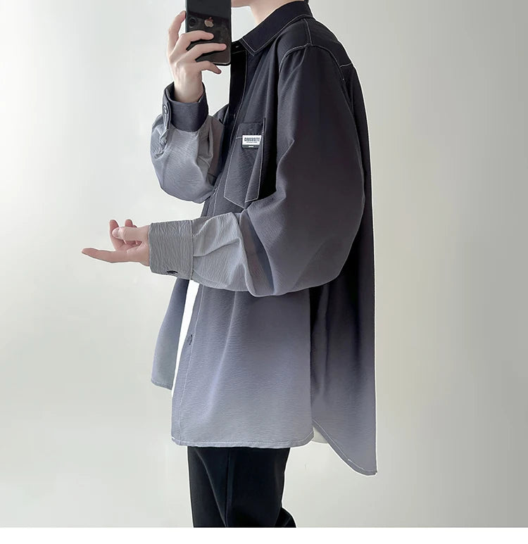 Men's shirt Gradient Plicated Long Sleeve Shirts Loose Korean Shirt Fashion Casual Oversize Shirt Coat High Quality Clothing