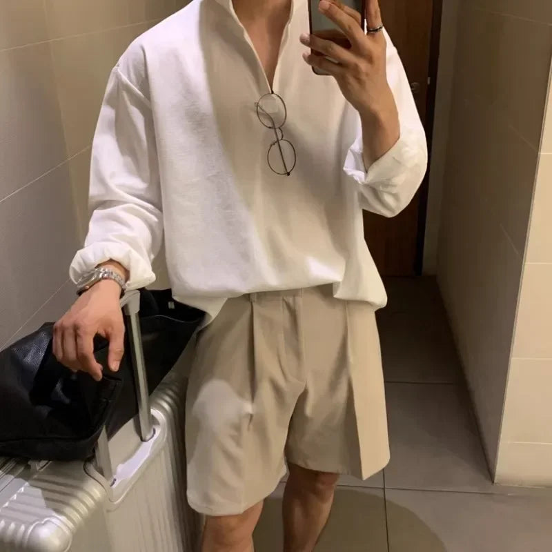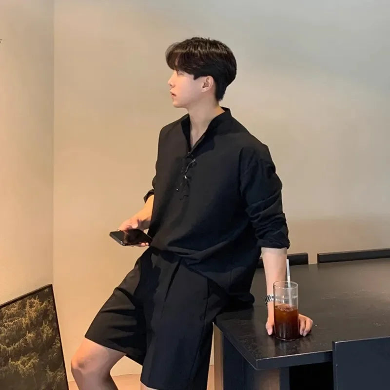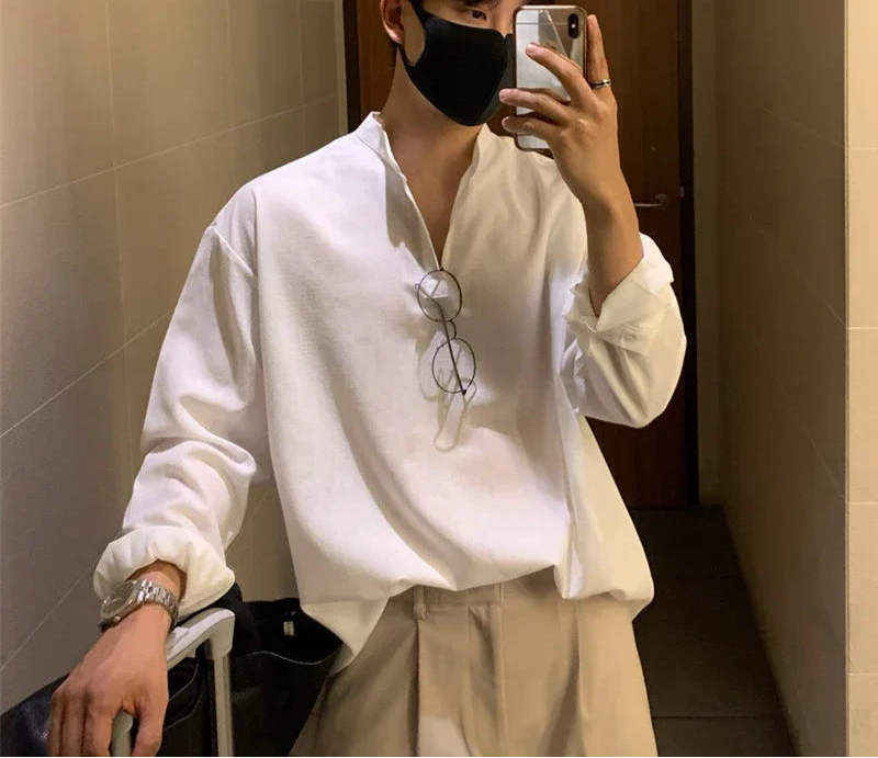 Oversized Korean-style Shirt Hanging Sense Shirt. Youth Long-sleeved Shirt Casual Travel Daily Street Fashion Men Loose-fitting