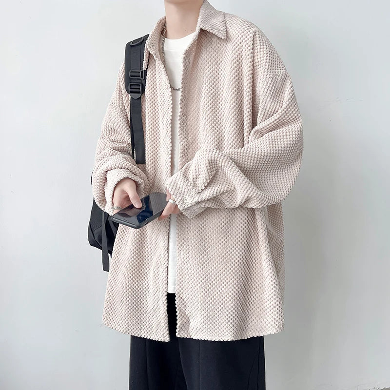 Pineapple Velvet Men's Casual Long Sleeve Button Shirt Coat Outwear Autumn Turn Down Collar Oversize Shirts Red/Black/Dark Gray