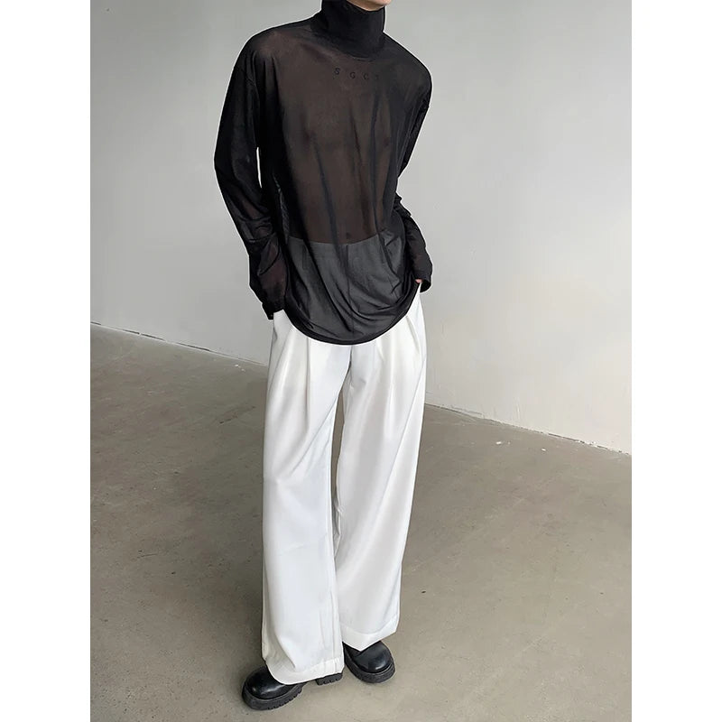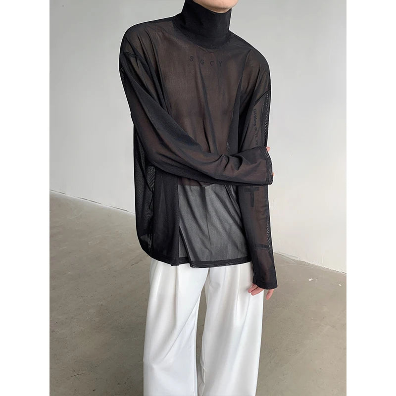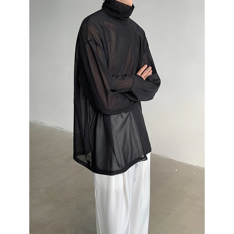 Sexy Perspective High-neck Long Sleeve T Shirt Men Women Net Yarn Bottoming Shirt Spring Summer Transparent Black Tee Shirts