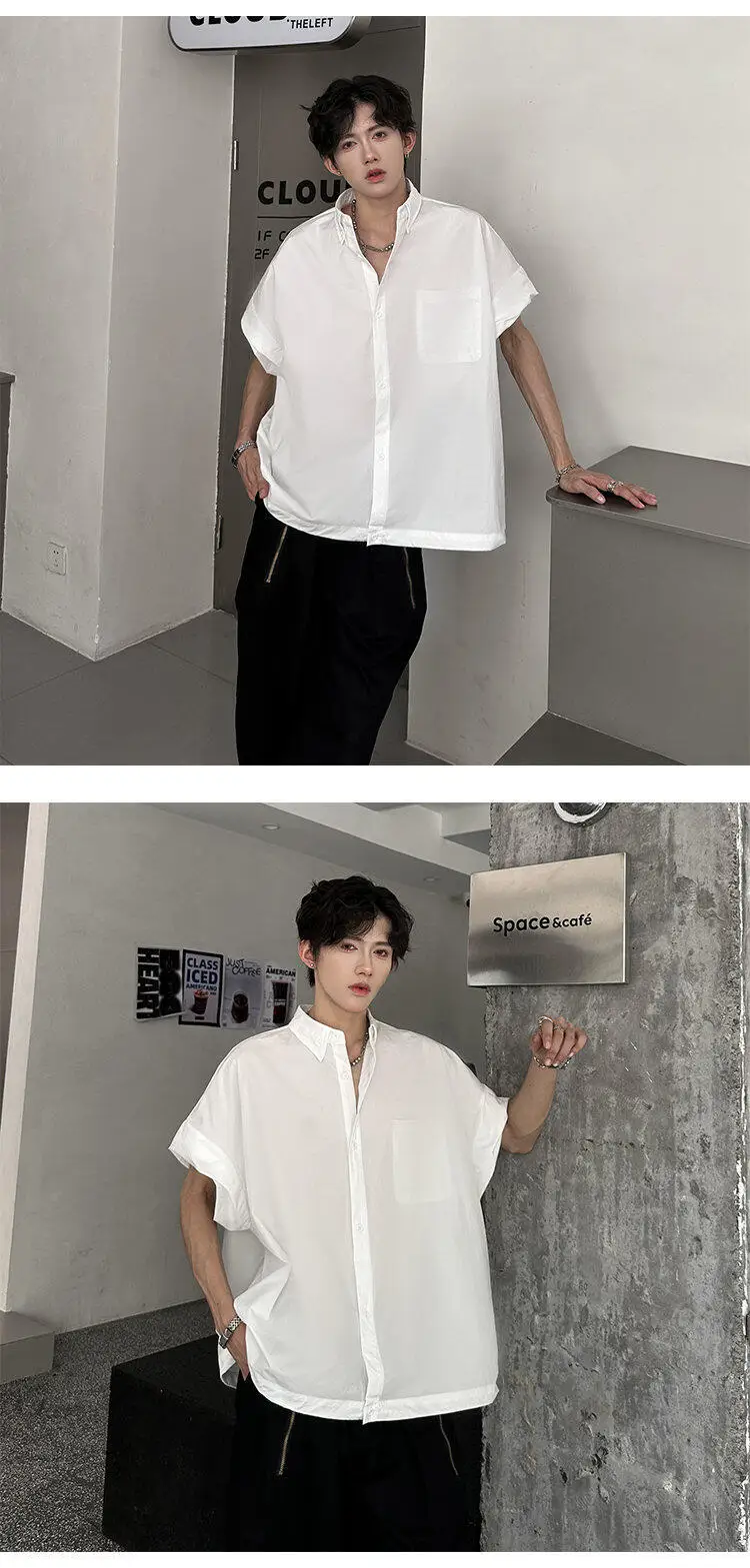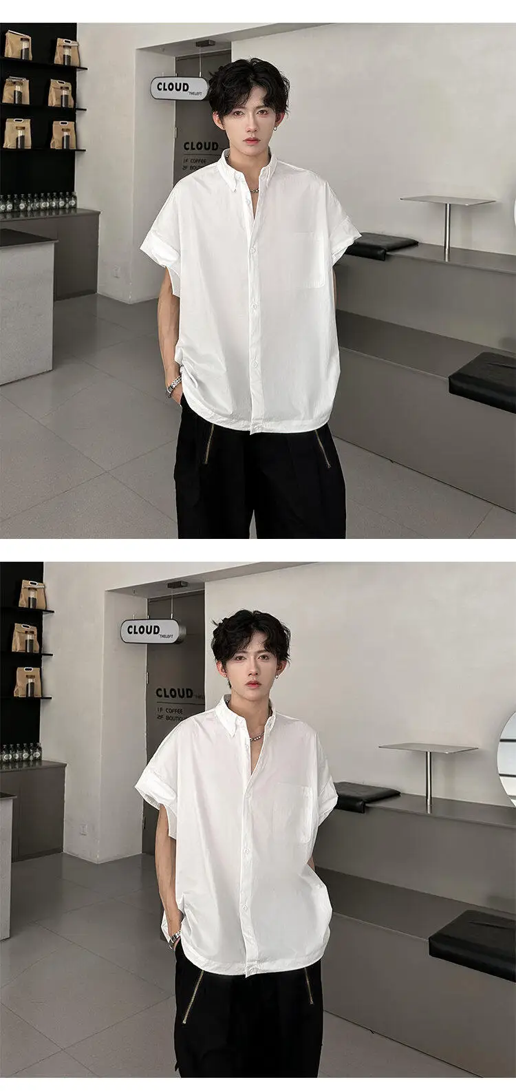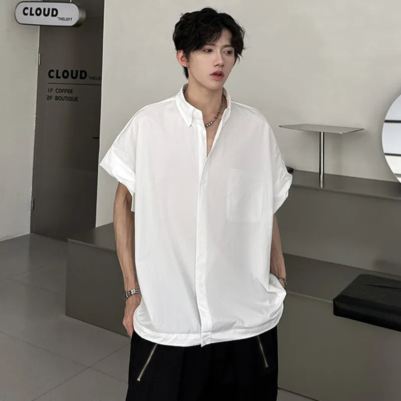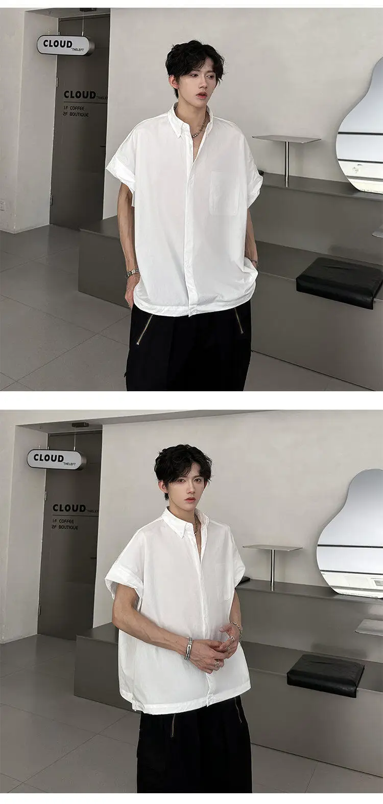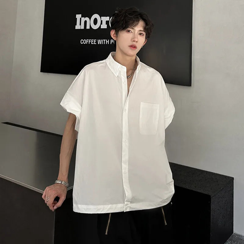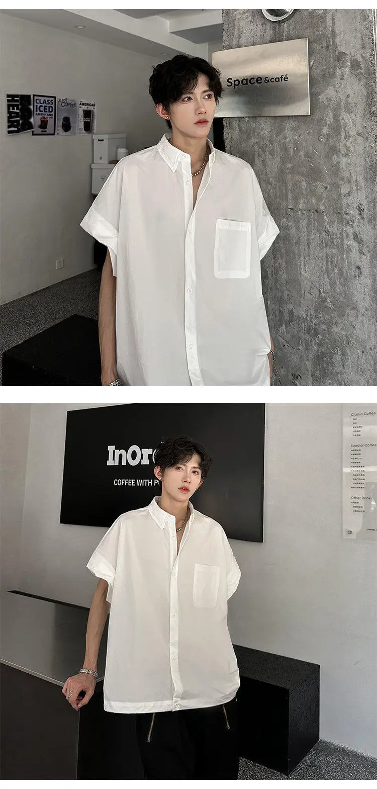 Simple Men's Shirts Turn-down Collar Pocket Solid Color Casual Tops Single Breasted Loose Male Shirt Korean Style
