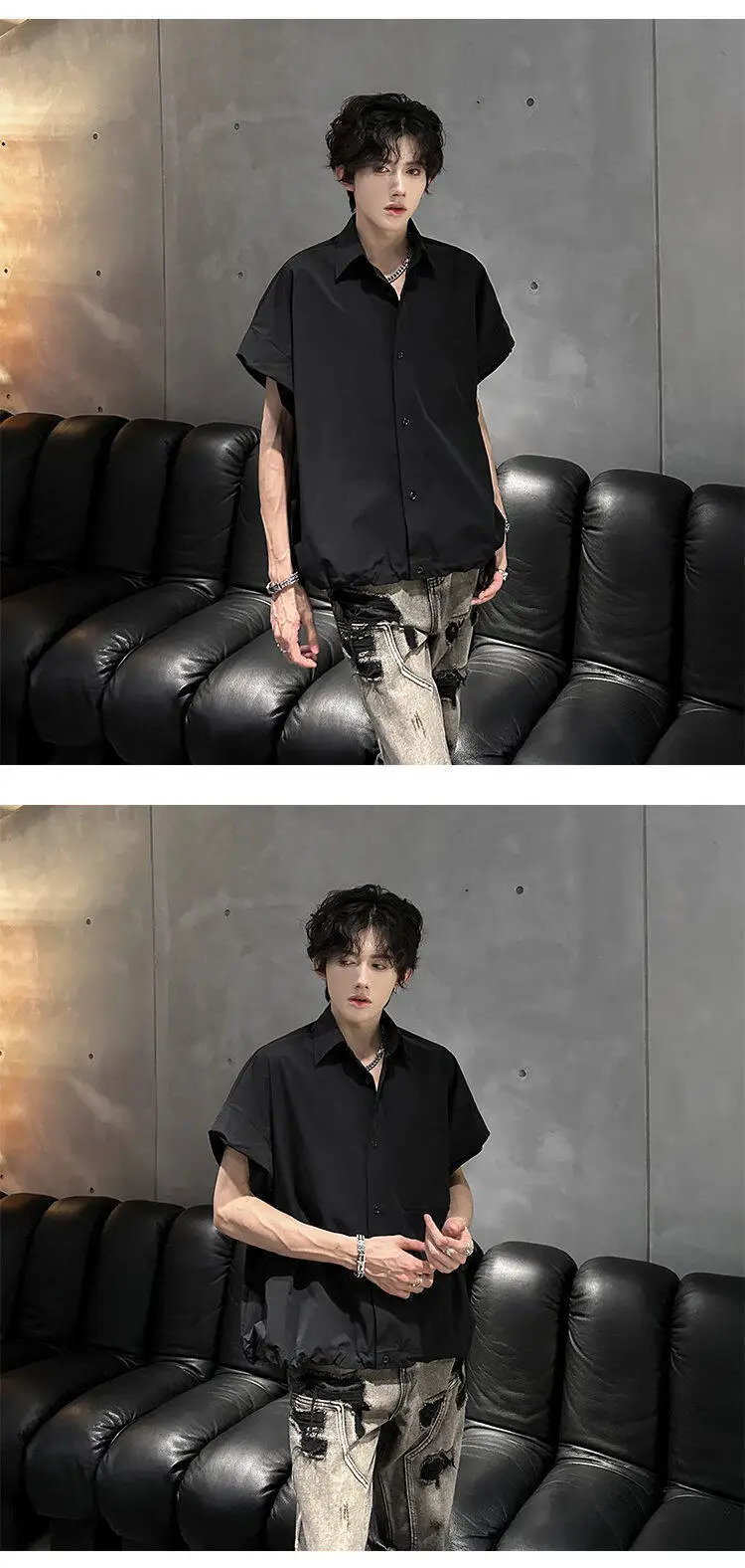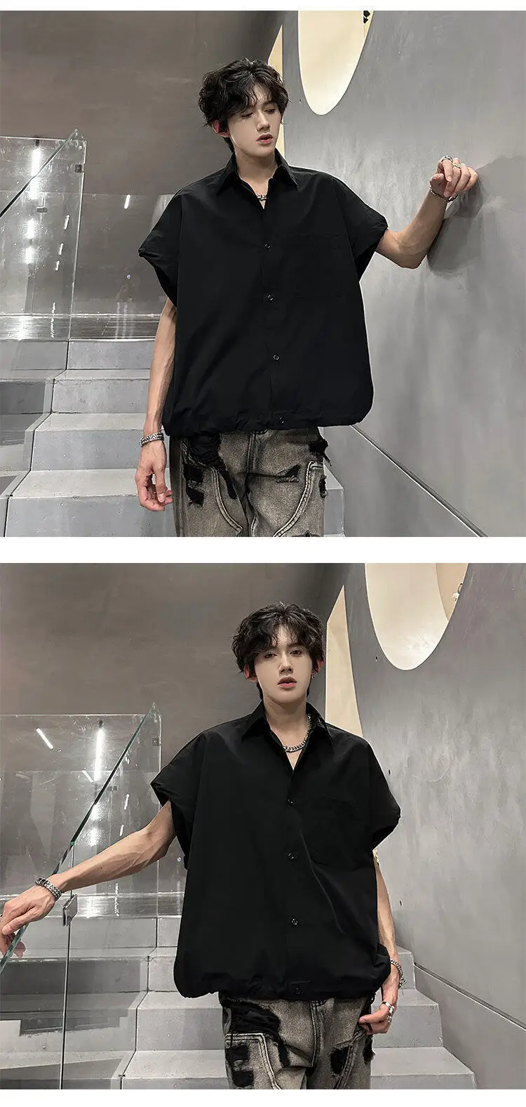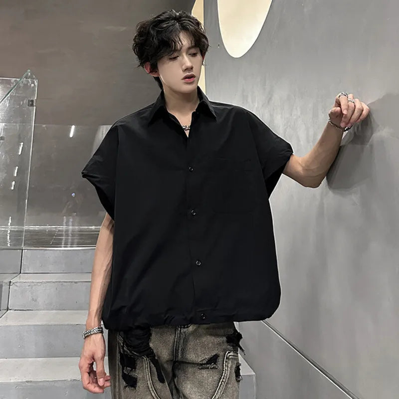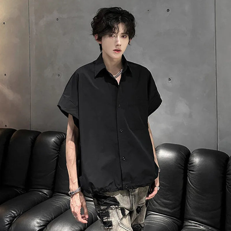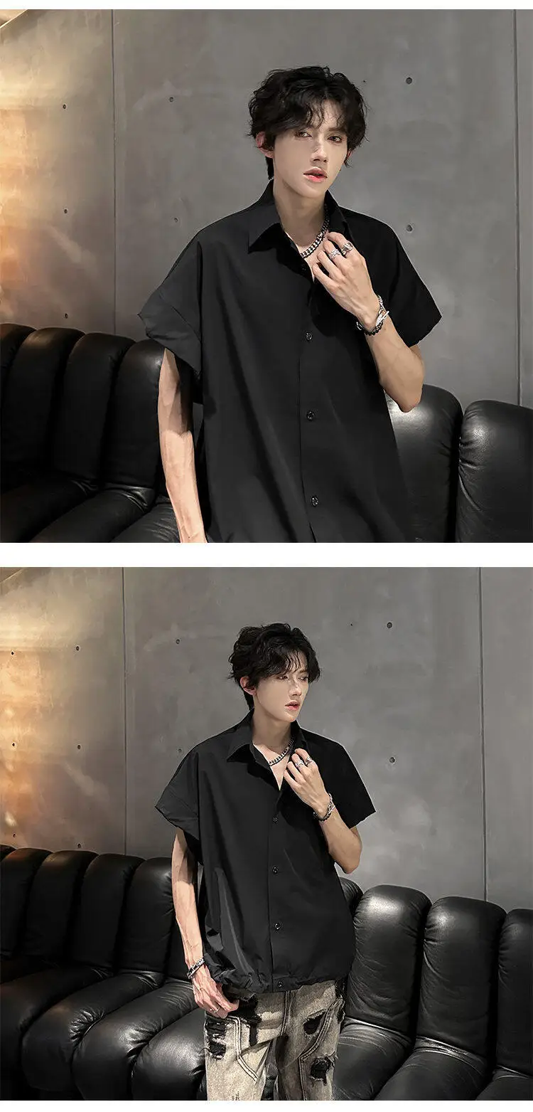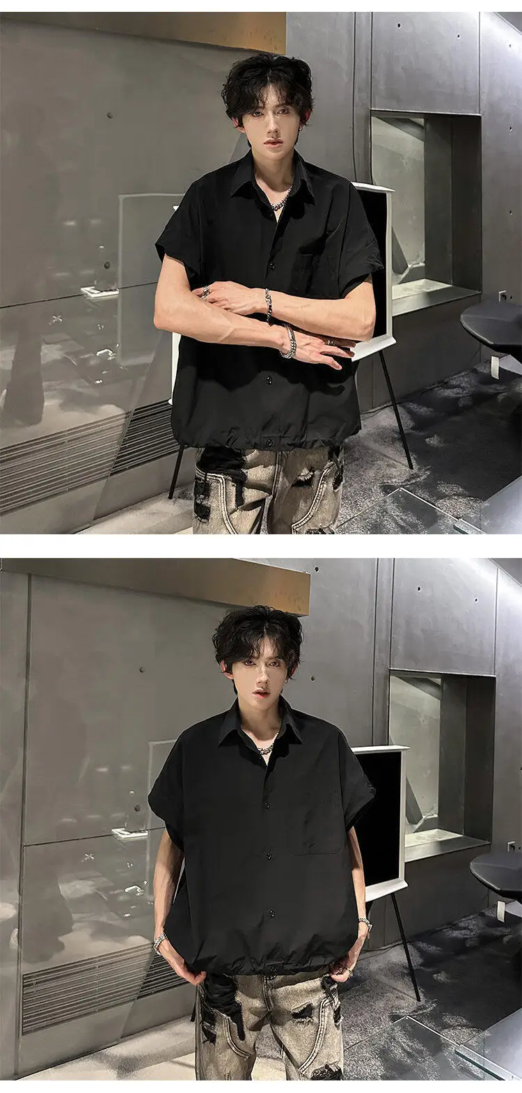 Simple Men's Shirts Turn-down Collar Pocket Solid Color Casual Tops Single Breasted Loose Male Shirt Korean Style