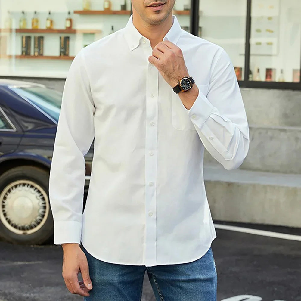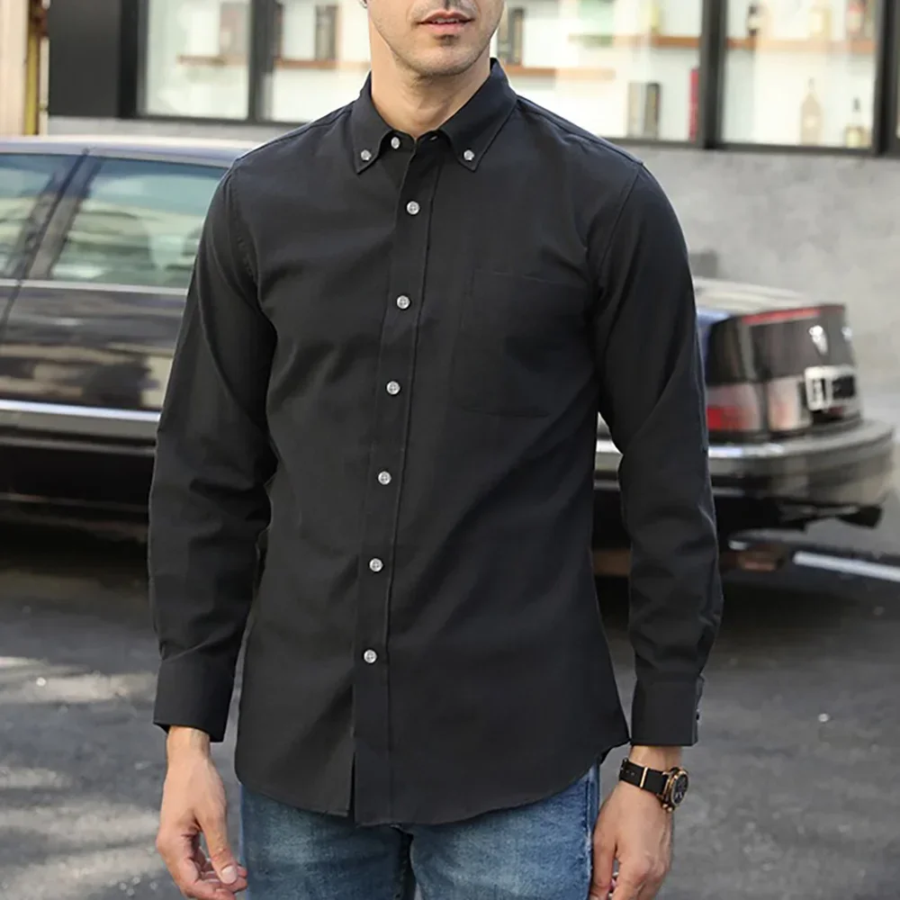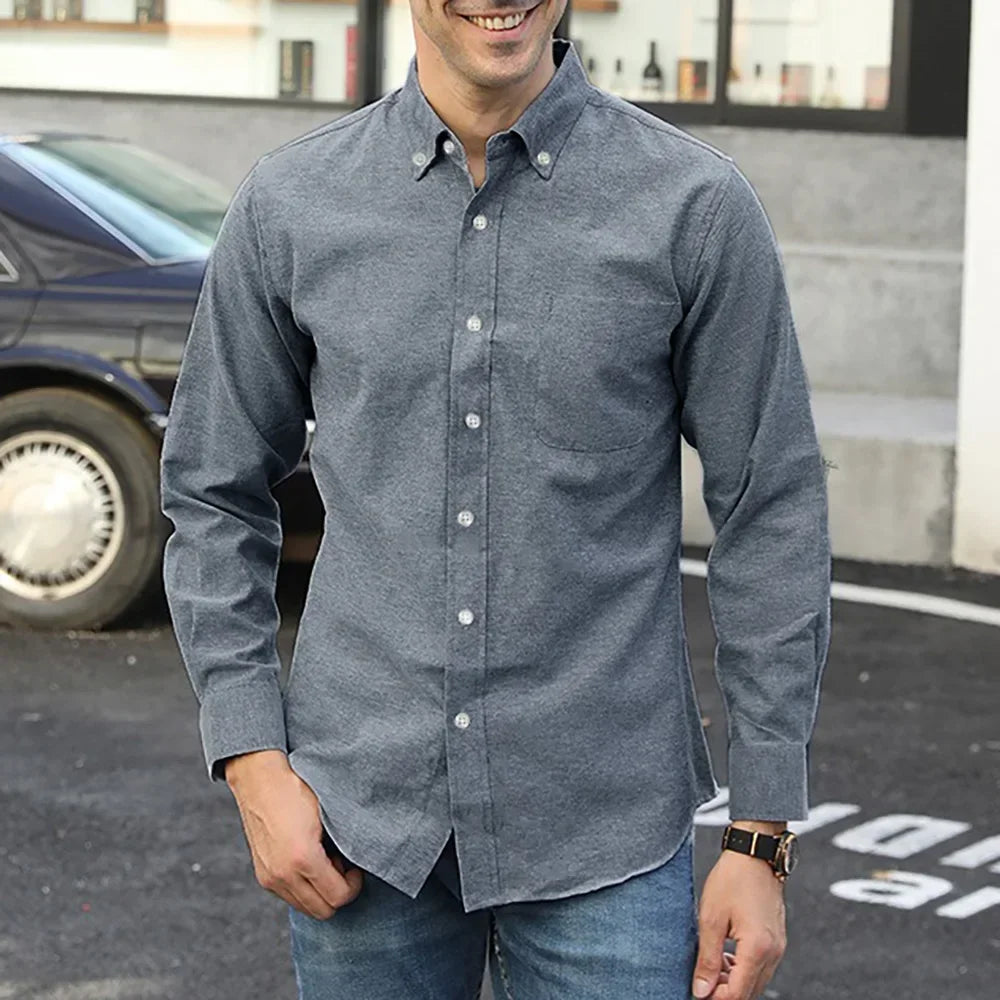 Spring Autumn Men's Casual Business Shirt Oxford Fabric Solid Color Fashion Shirts Single Breasted Simple Style Trendy Button Up