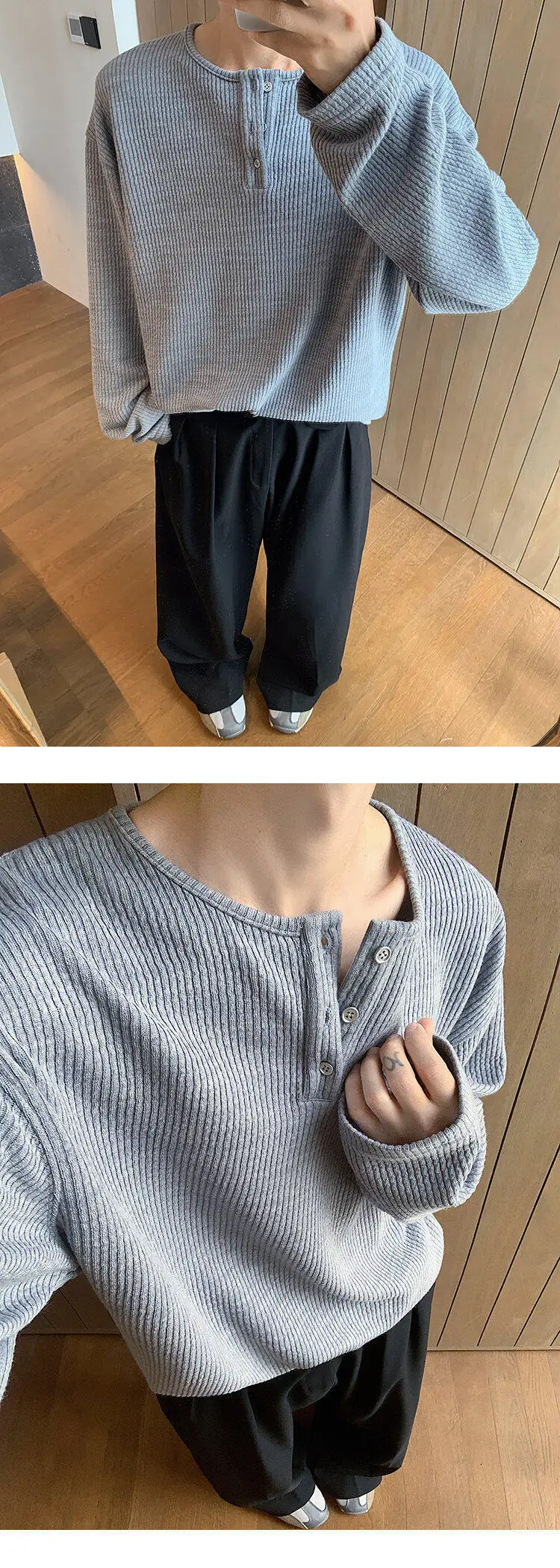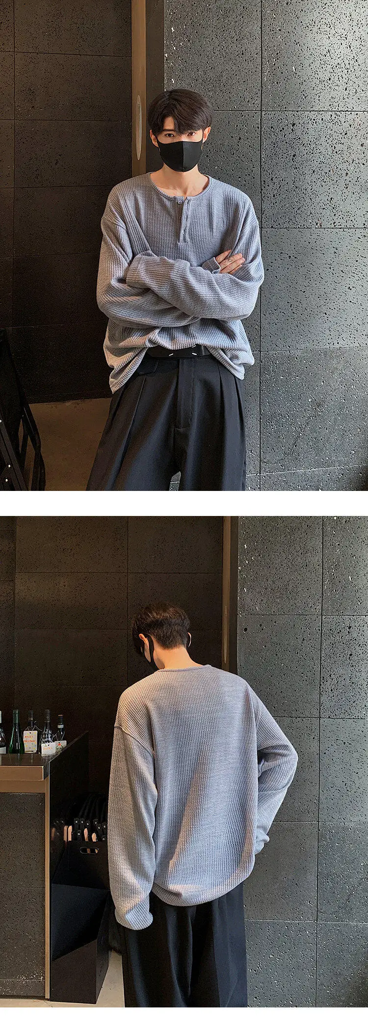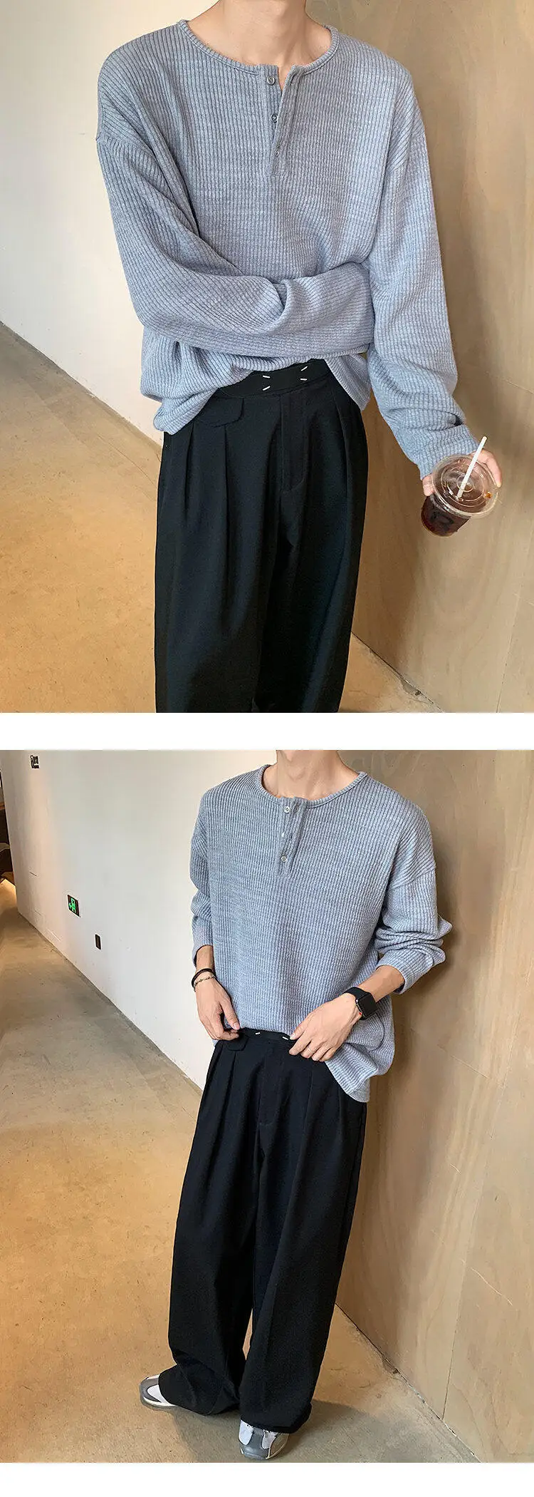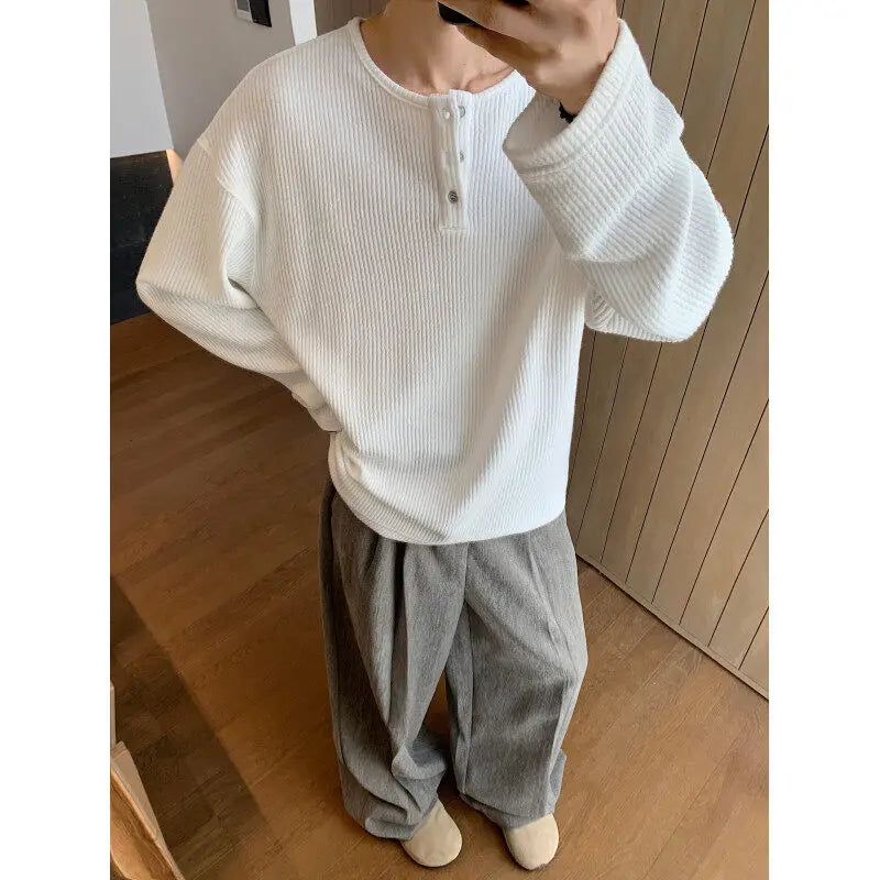 Spring Long Sleeved T-shirt Men Fashion Button White Casual T Shirt Men Streetwear Korean Loose Pleated T Shirt Mens Top M-2XL
