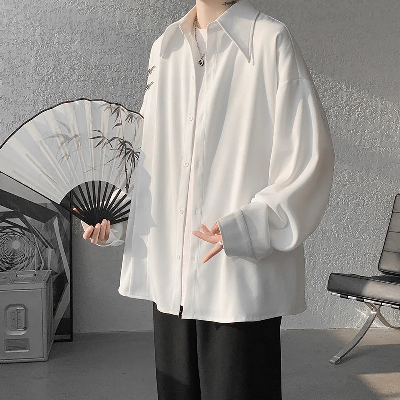 Spring Summer High Quality Solid Long Sleeve Shirts Man Casual Oversize Blouse Male Fashion Simple Clothing Plus Size 5XL-M