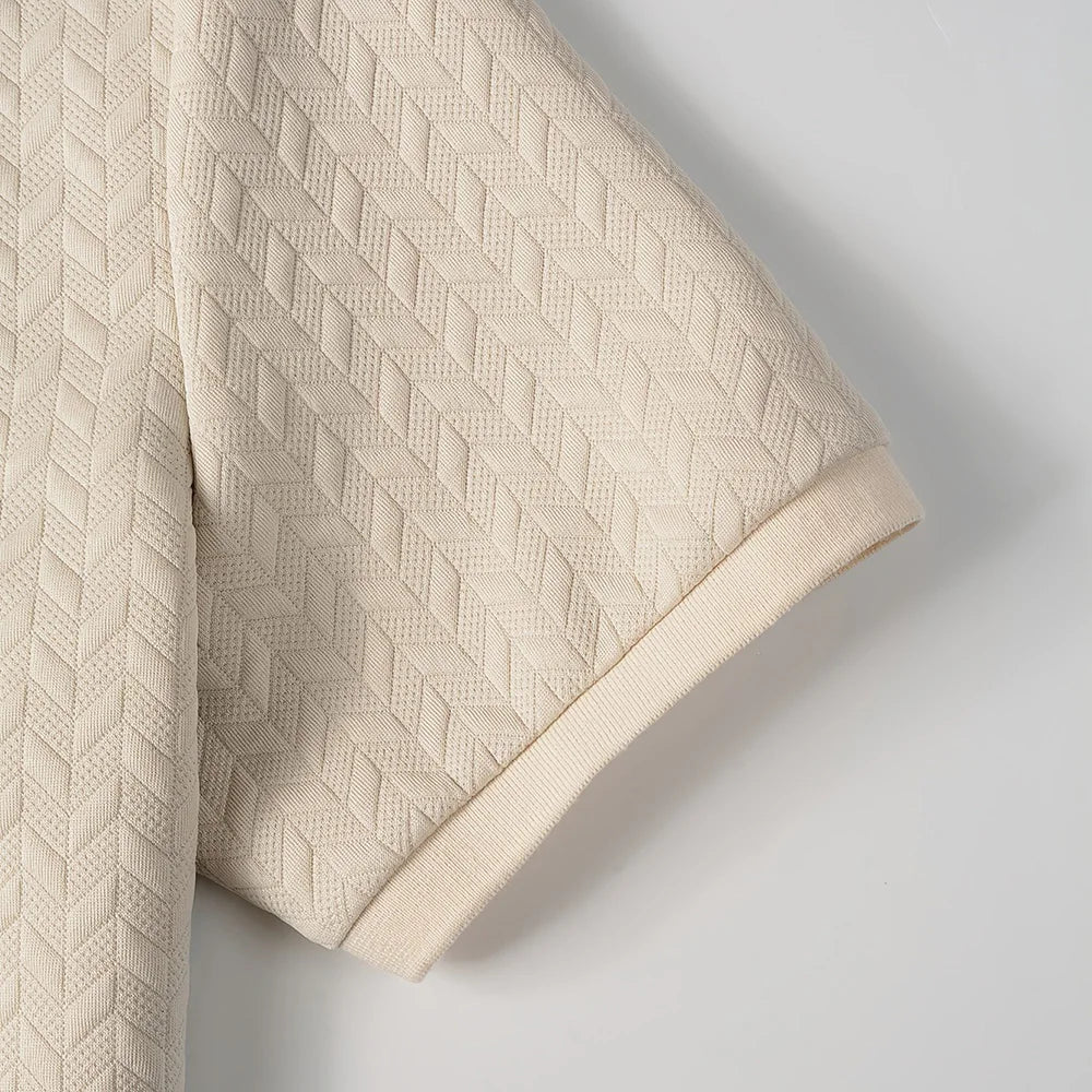 Spring Summer Mens High Quality Jacquard Polo Shirt Short Sleeve Heavyweight Casual T-shirt Turn-down Collar Fashion Button Up