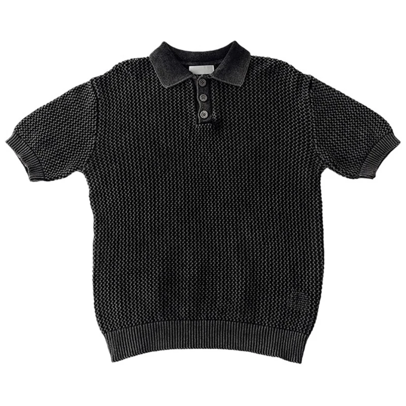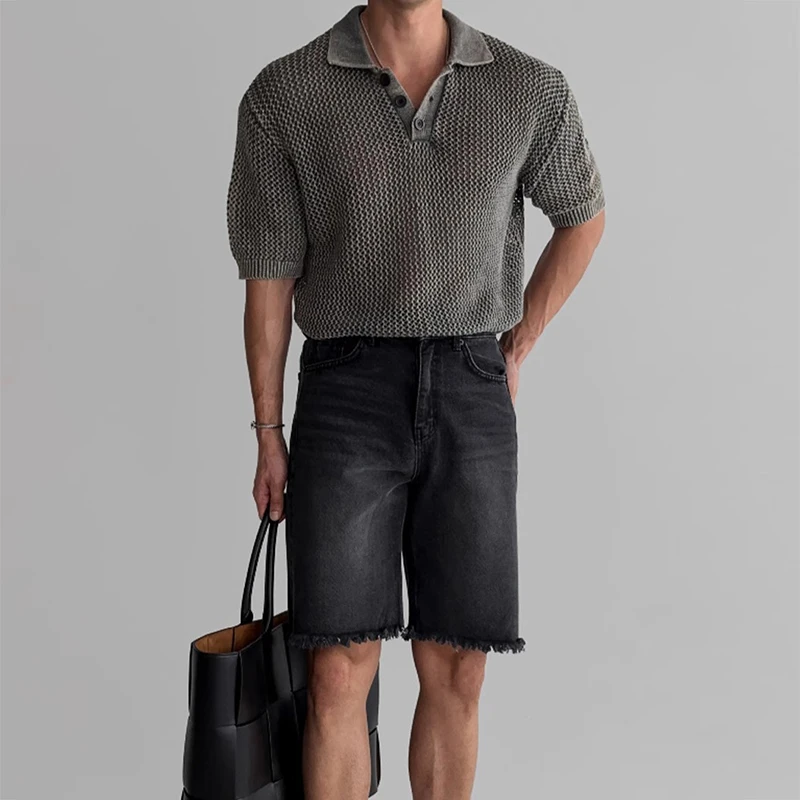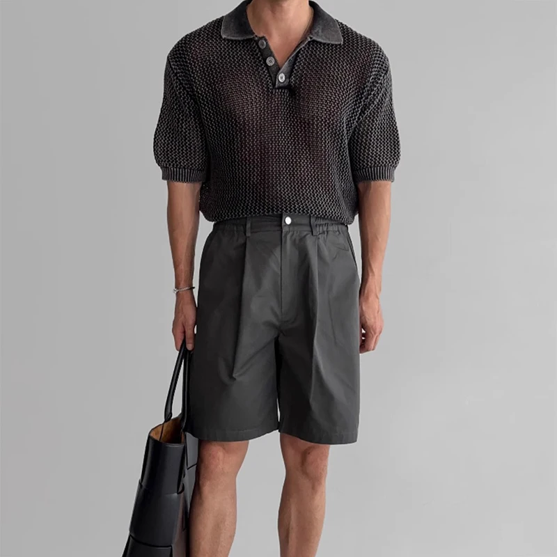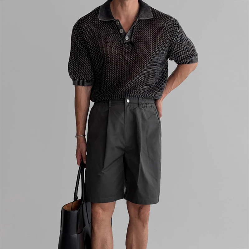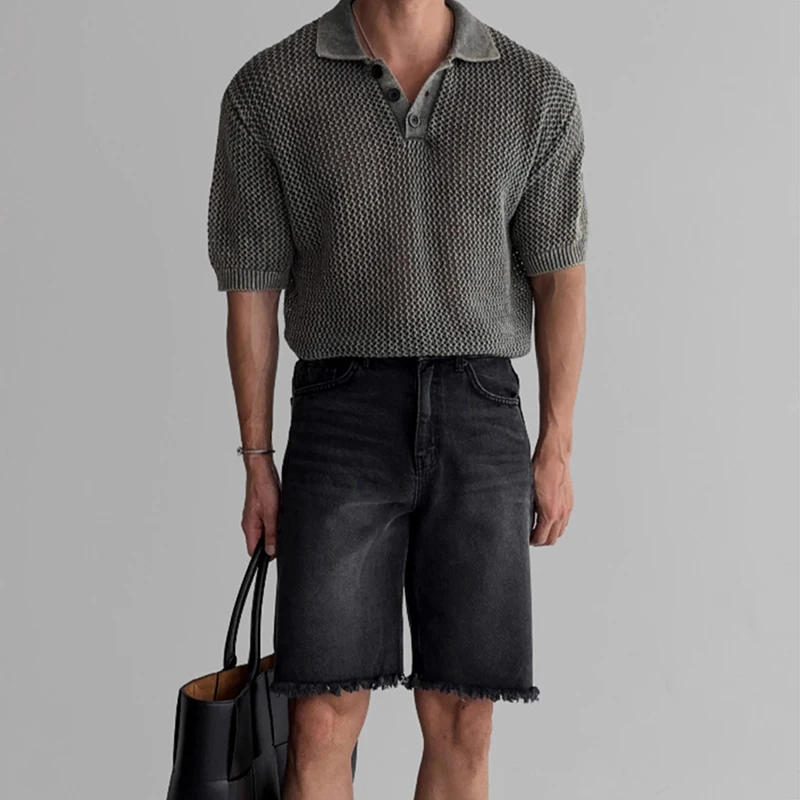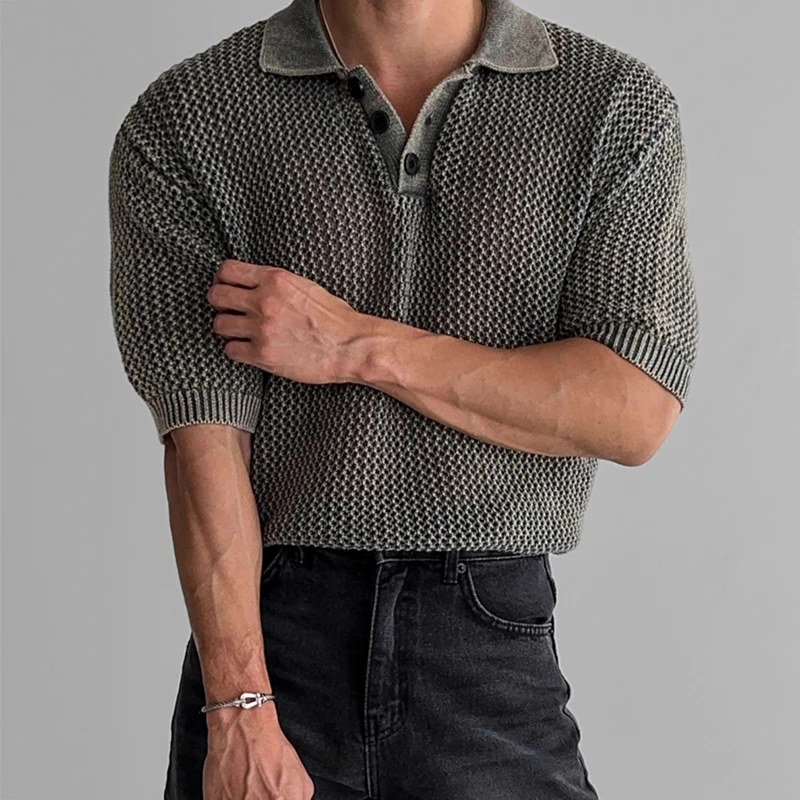 Streetwear Fashion Knit Mesh Polo Shirts For Men Summer Short Sleeve Button Hollow Out Mesh Tops Mens Stylish Short Sleeve Polos