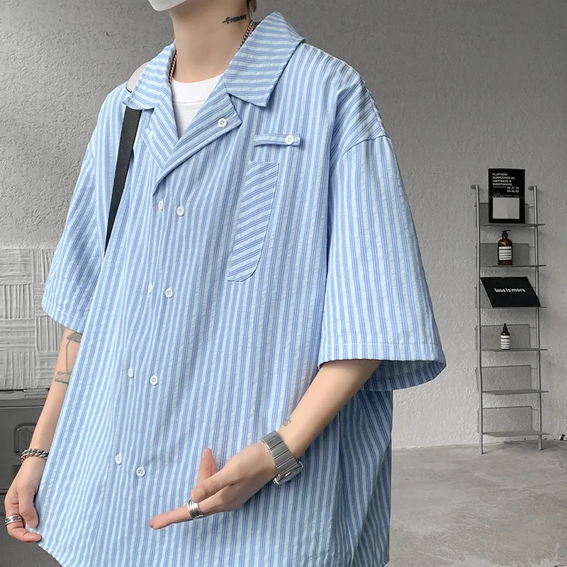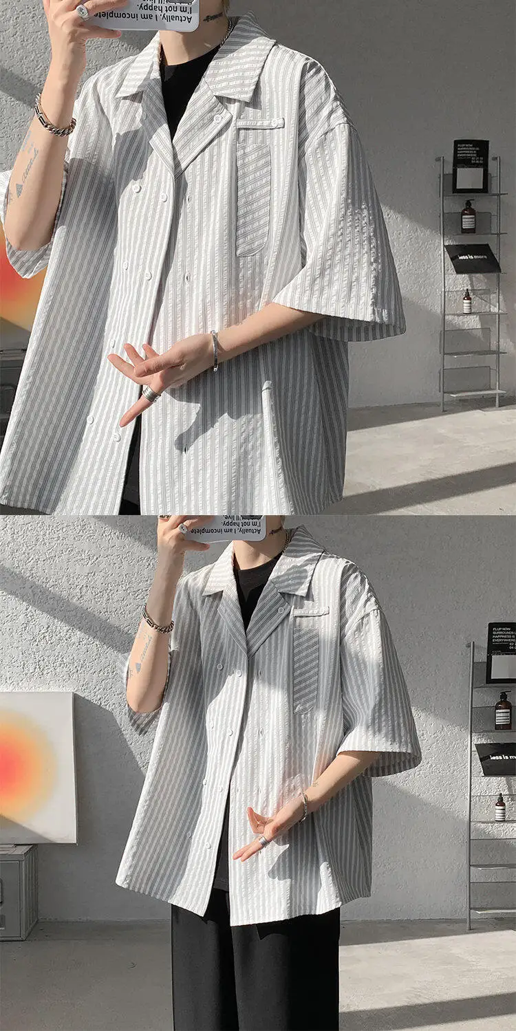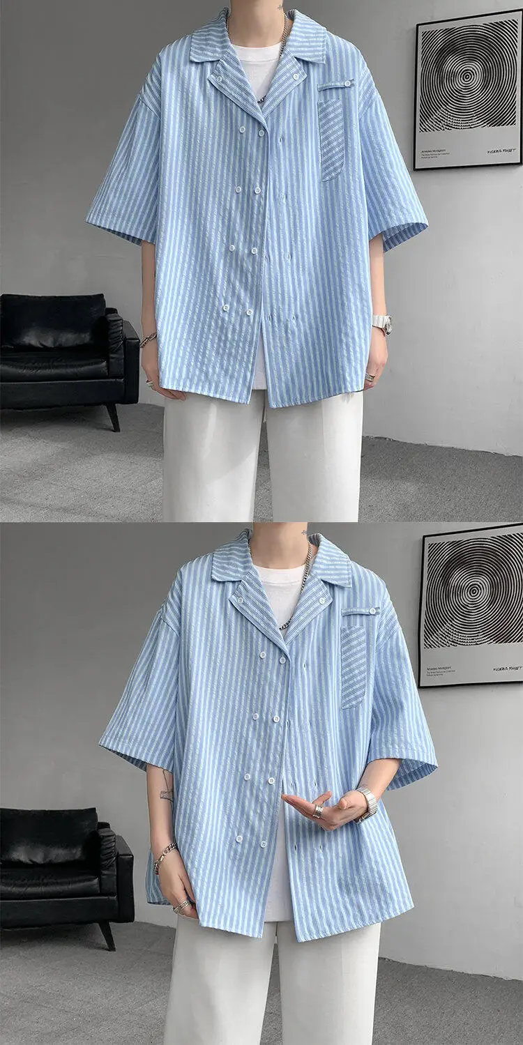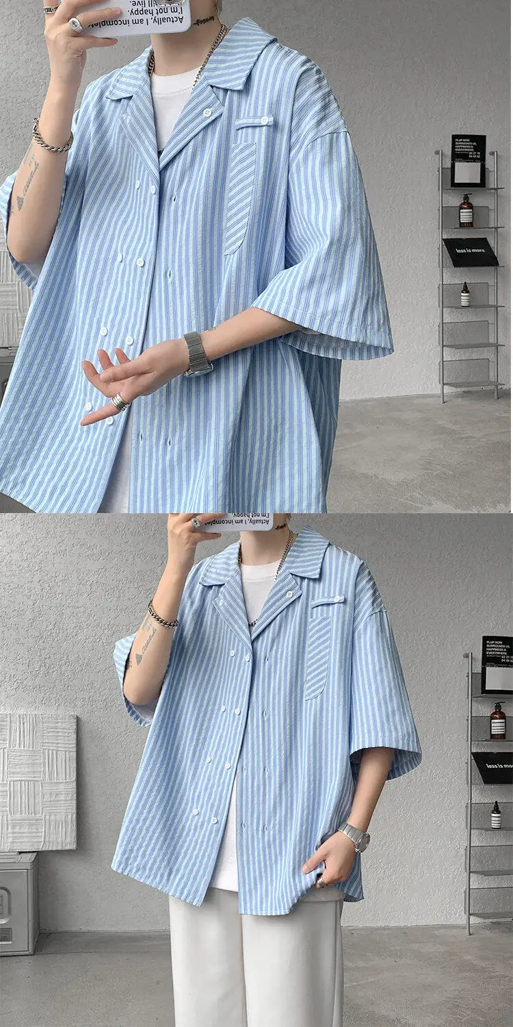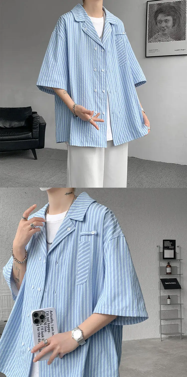 Summer Blue Short Sleeved Shirt Men Fashion Society Mens Dress Shirt Korean Loose Casual White Shirt Mens Office Formal Shirts