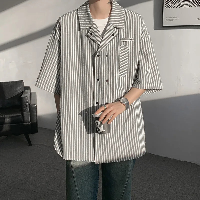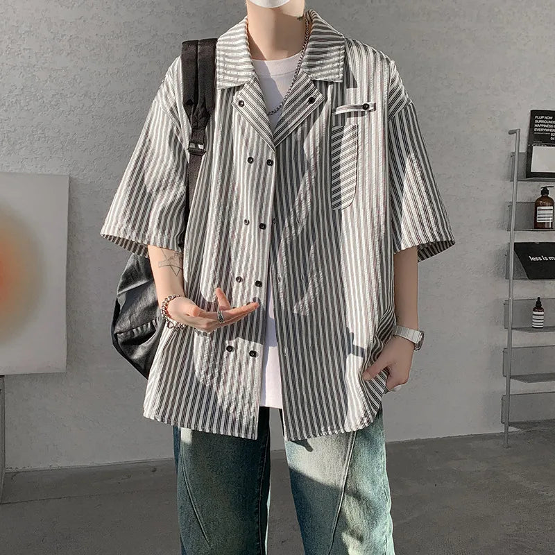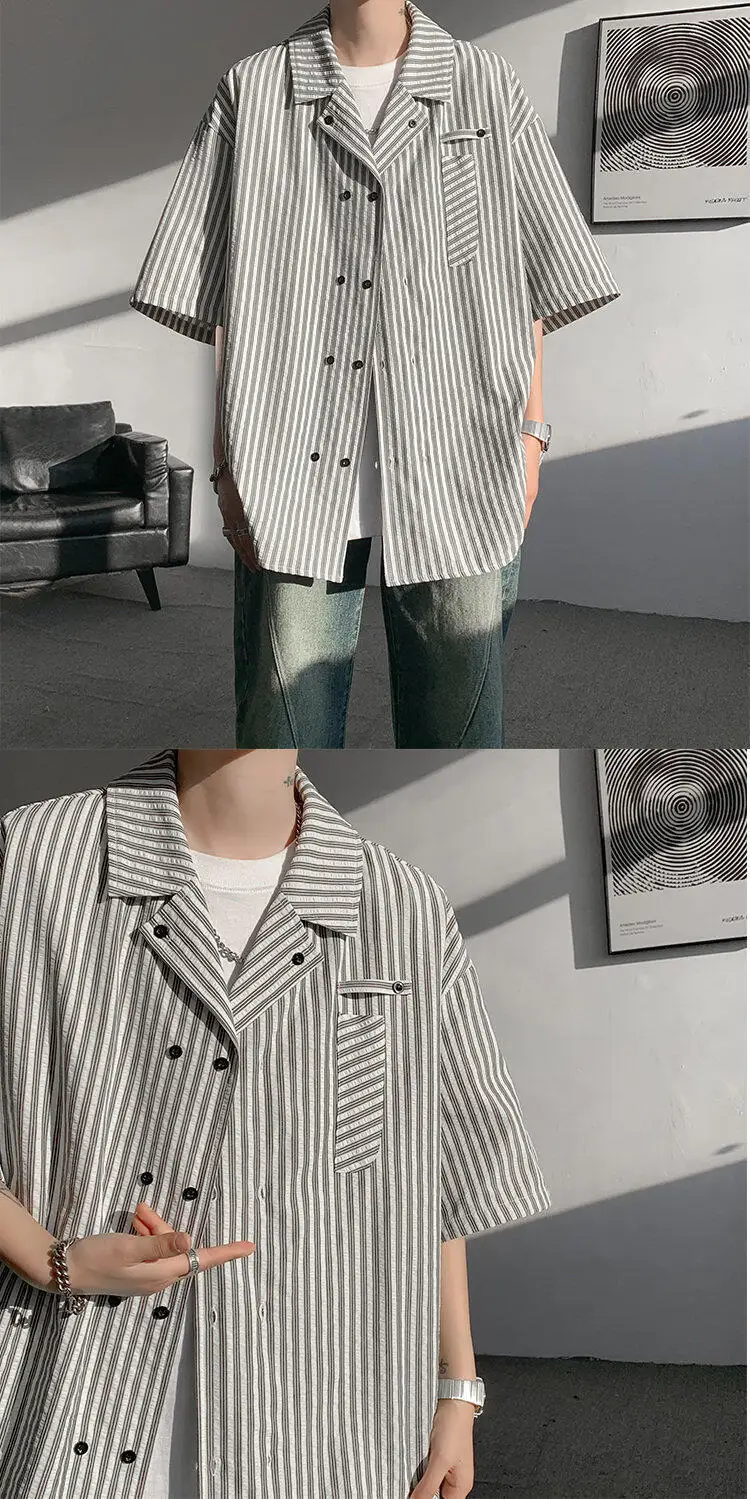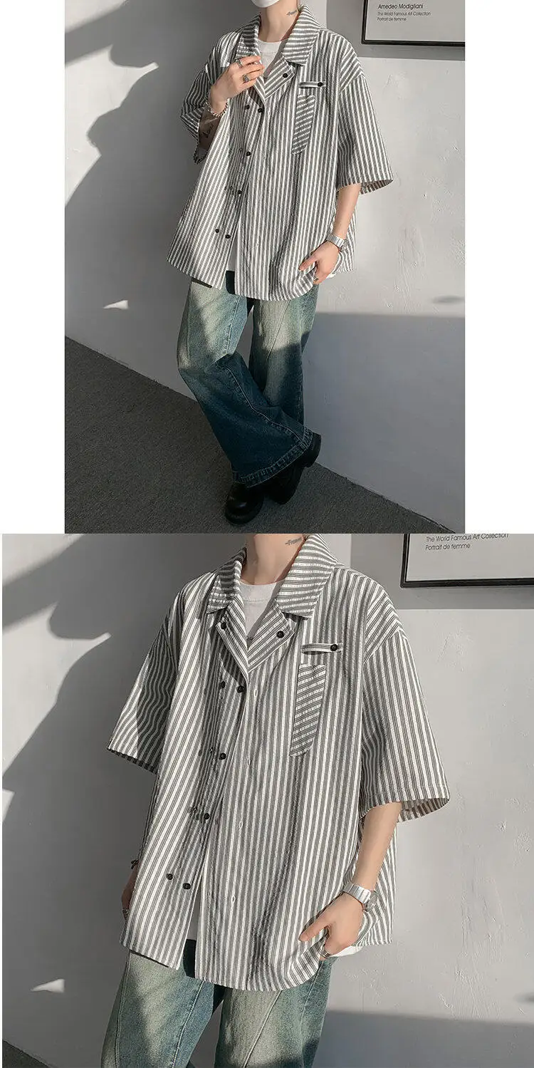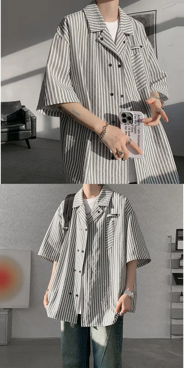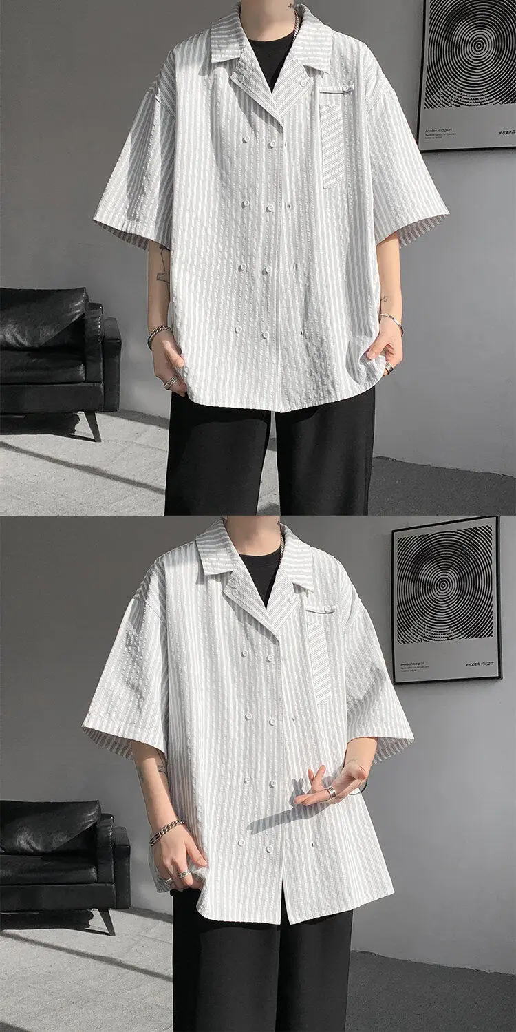 Summer Blue Short Sleeved Shirt Men Fashion Society Mens Dress Shirt Korean Loose Casual White Shirt Mens Office Formal Shirts