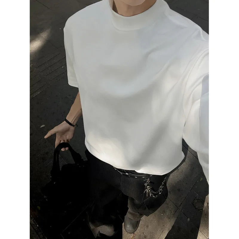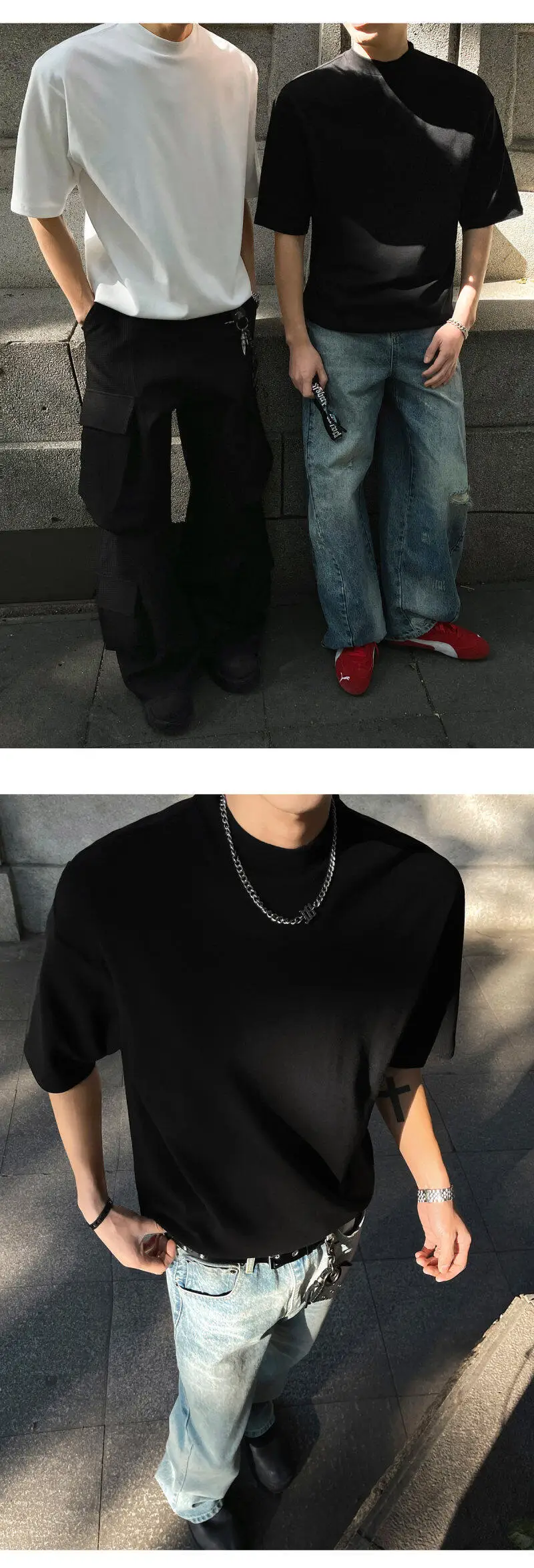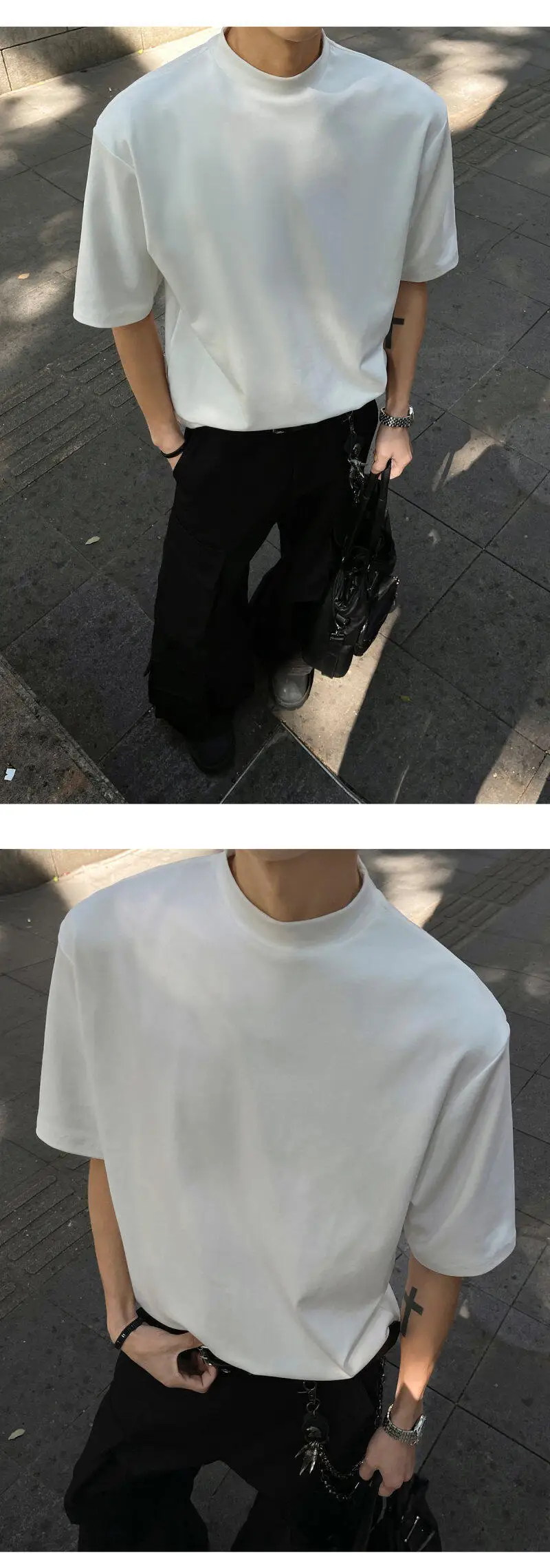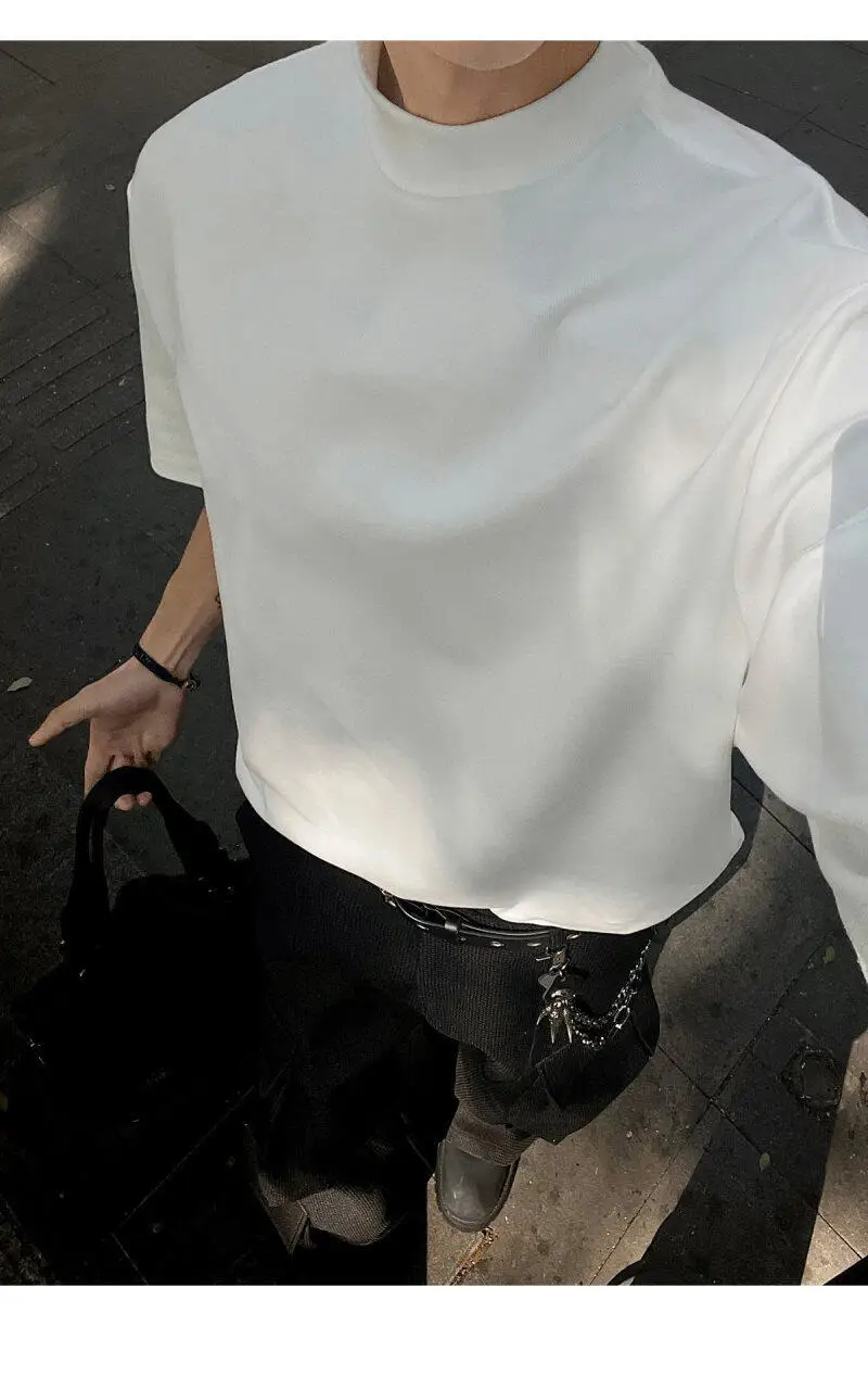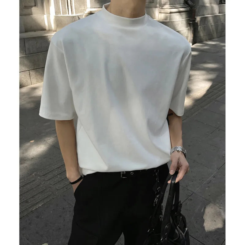 Summer Cotton Short Sleeved T-shirt Men Black White Casual T Shirt Men Korean Stand Up Collar Tshirt Mens Top Plus Size 5XL