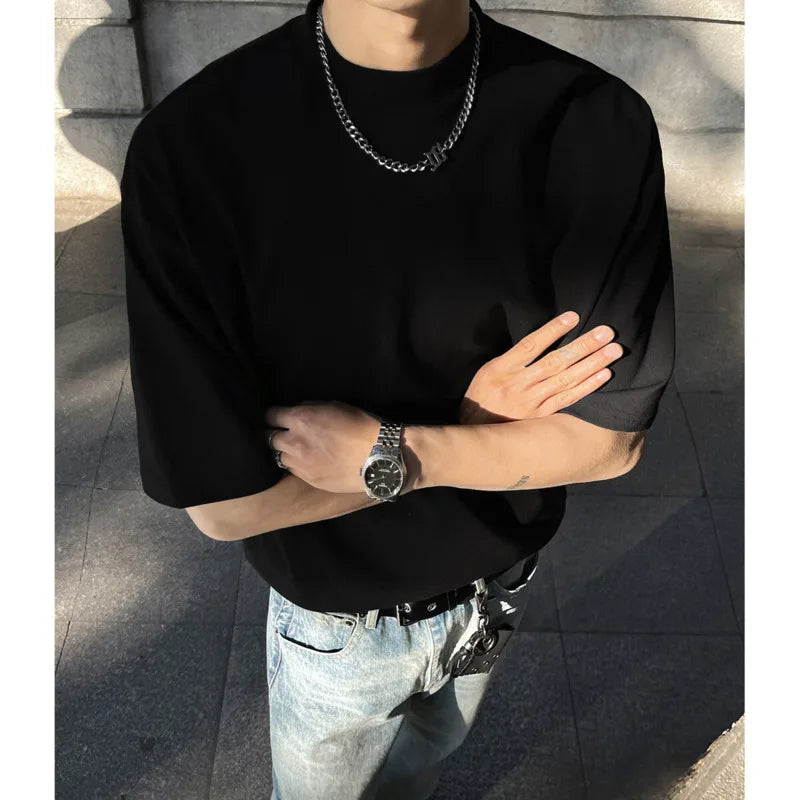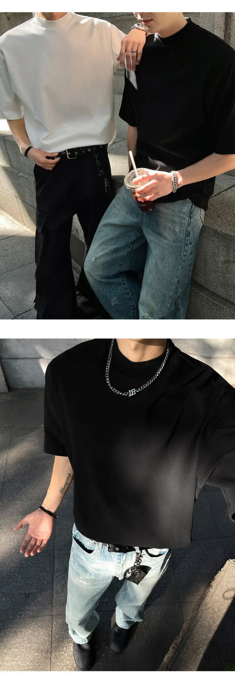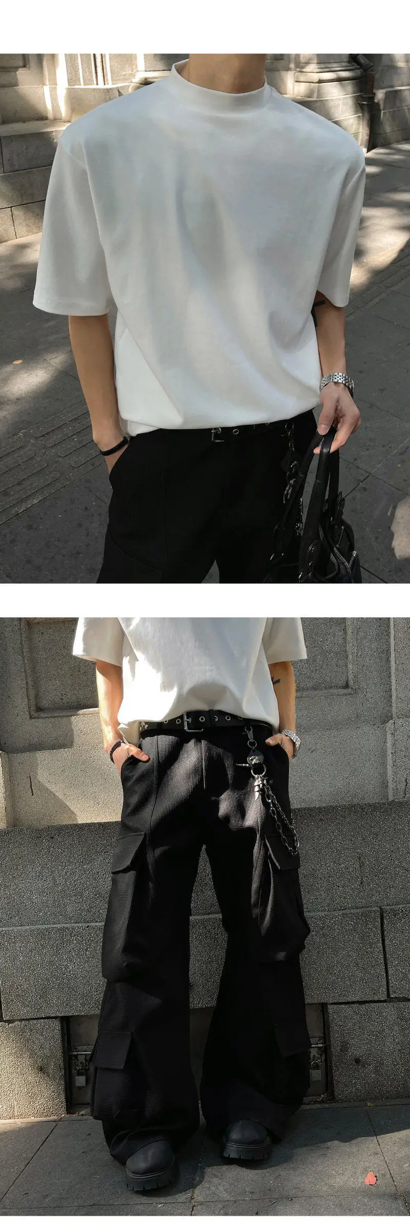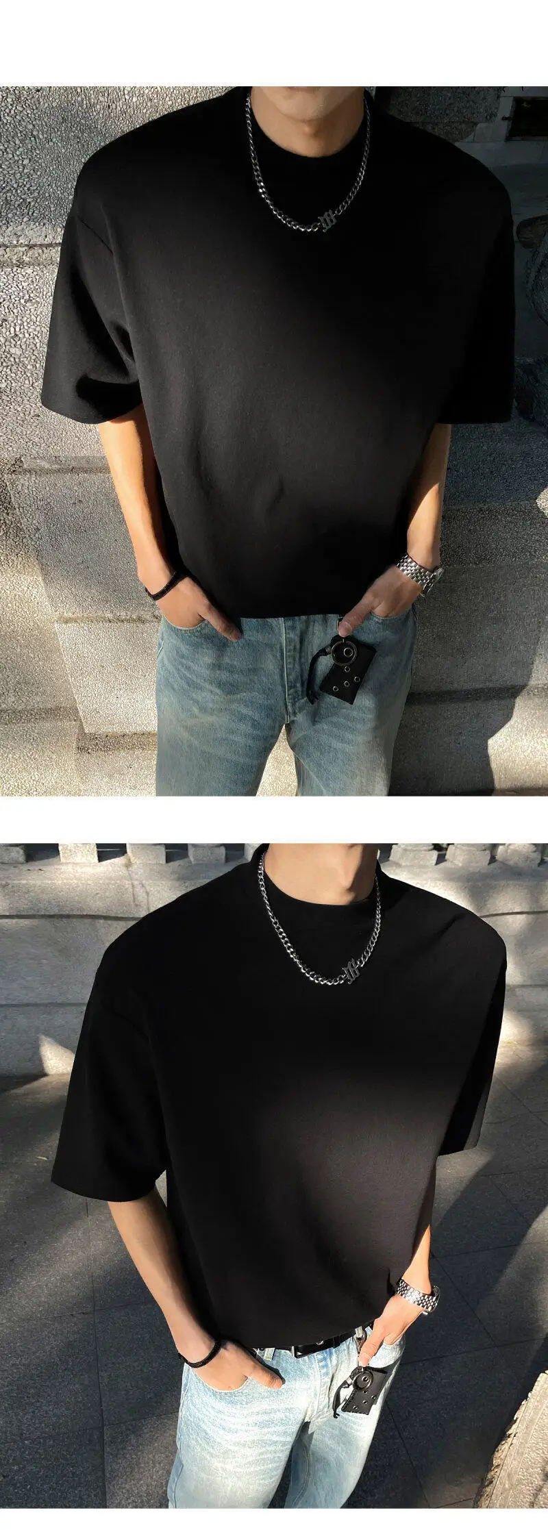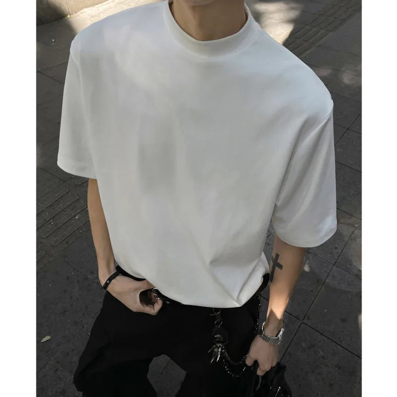 Summer Cotton Short Sleeved T-shirt Men Black White Casual T Shirt Men Korean Stand Up Collar Tshirt Mens Top Plus Size 5XL