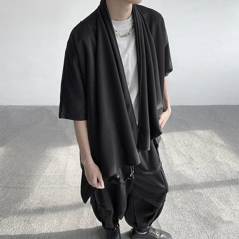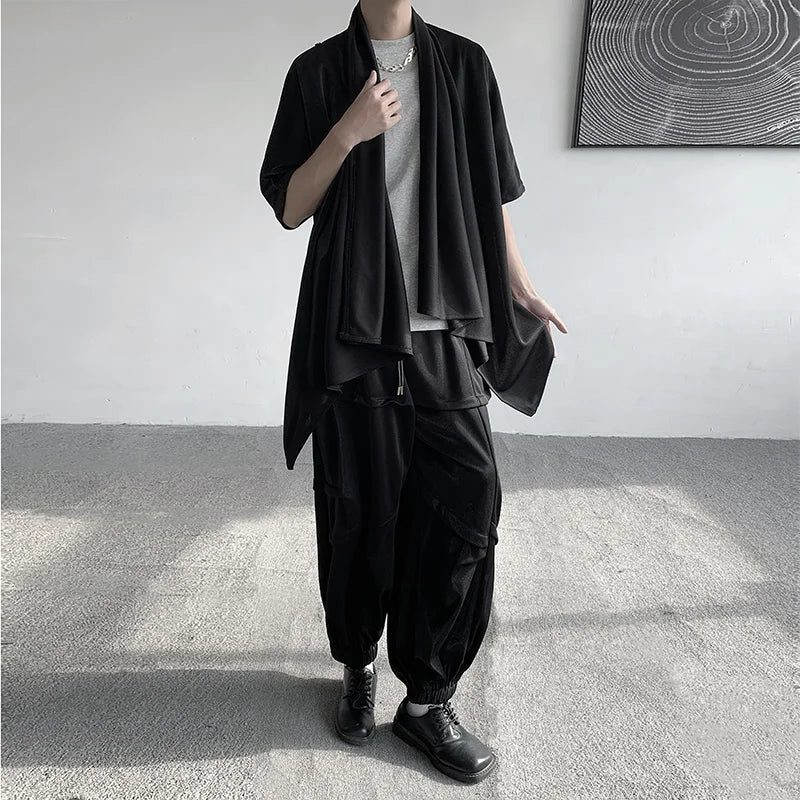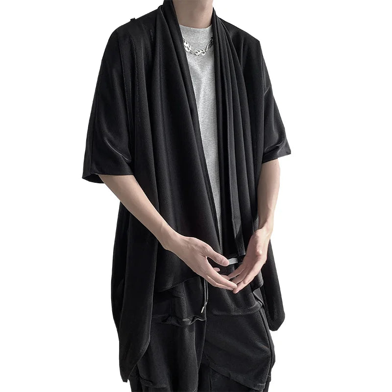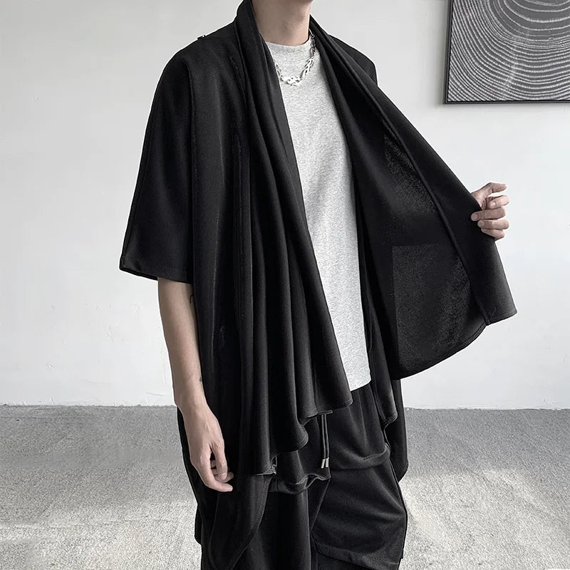 Summer Japanese Darkness shirt Man Cardigan Harajuku Woman Black Coat Cloak Beach Shirt Obi Streetwear Loose Thin Outer