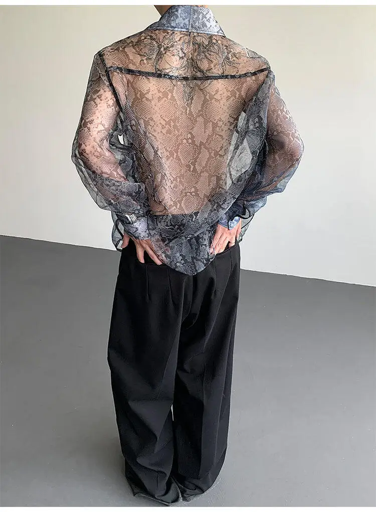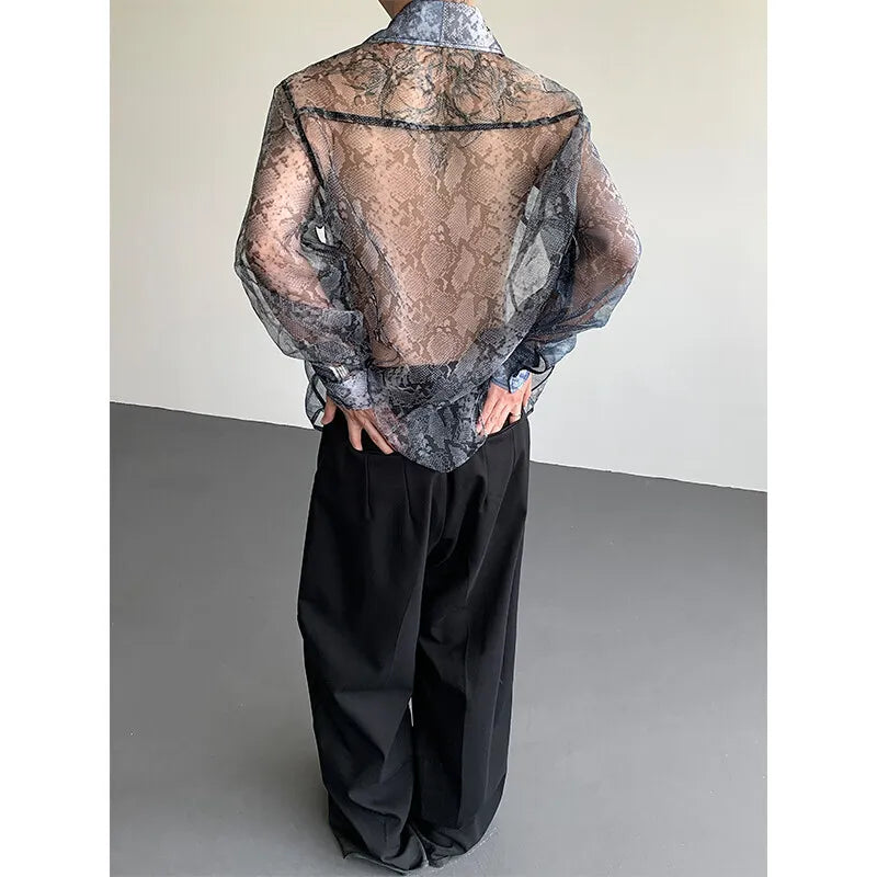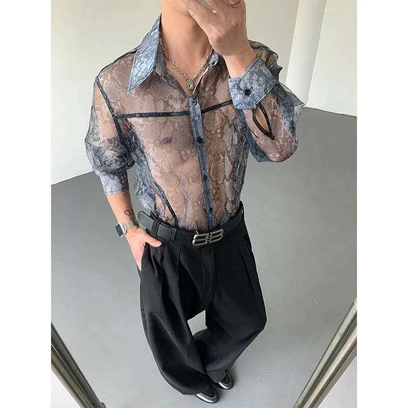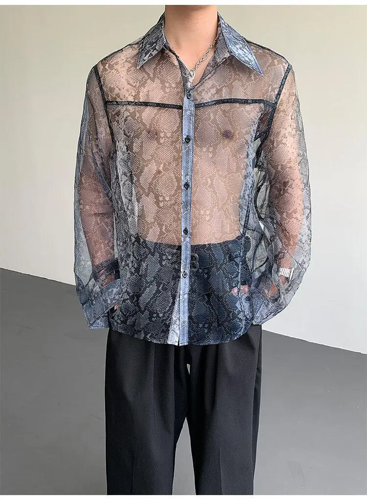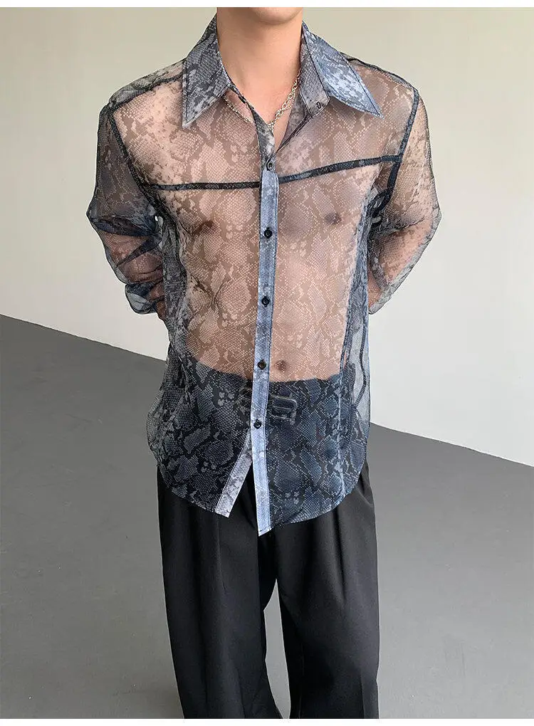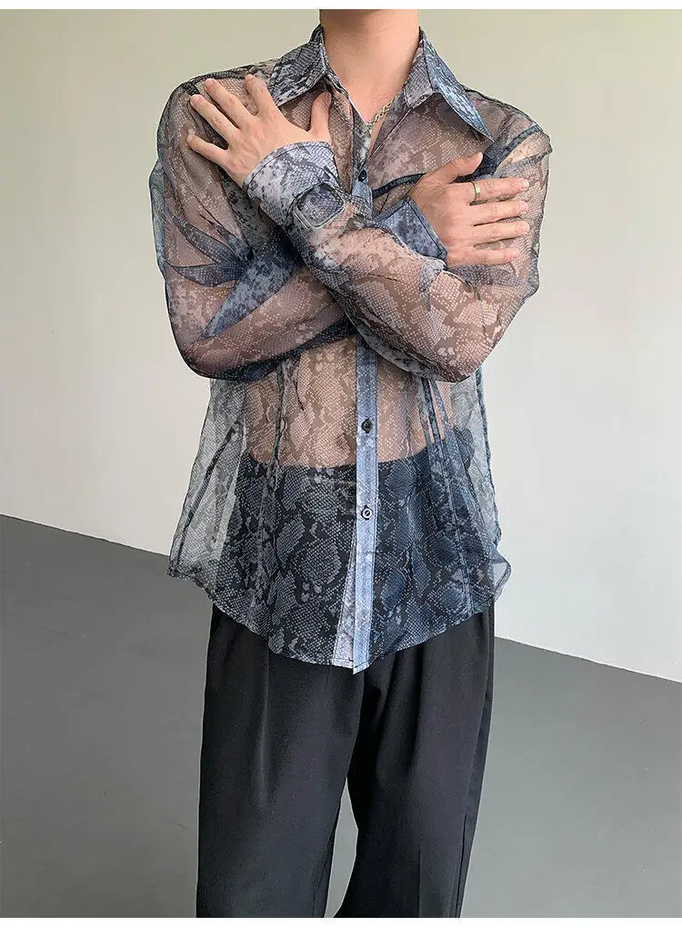Summer Long Sleeved Shirt Men Fashion Society Mens Dress Shirt Korean Loose Thin Casual Shirt Mens Transparent Shirts M-2XL