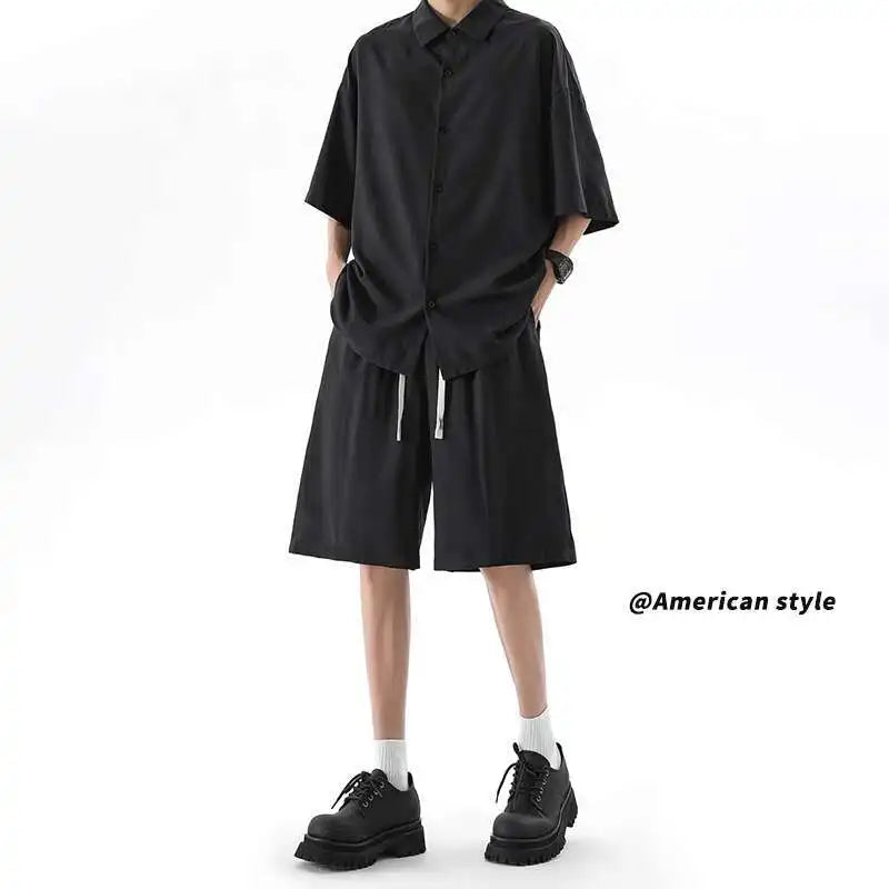 Summer Shirt Set Men Fashion White Shirts Shorts Two-piece Set Men Korean Loose Ice Silk Set Mens Formal Sets Large Size 5XL