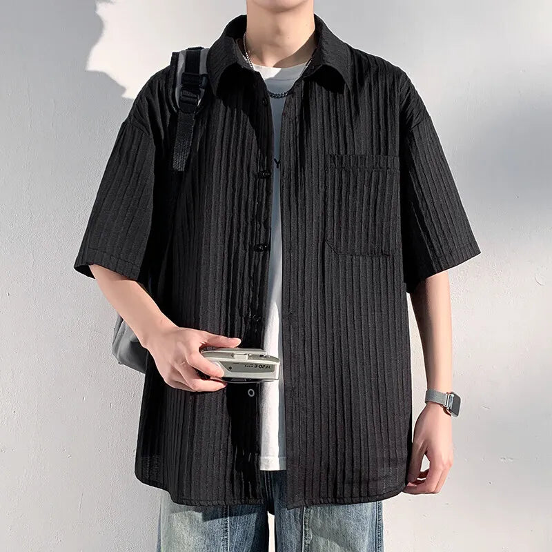 Summer Short Sleeved Shirt Men Black White Casual Shirts Men Streetwear Loose Pleated Shirts Man Fashion Shirt Large Size 5XL