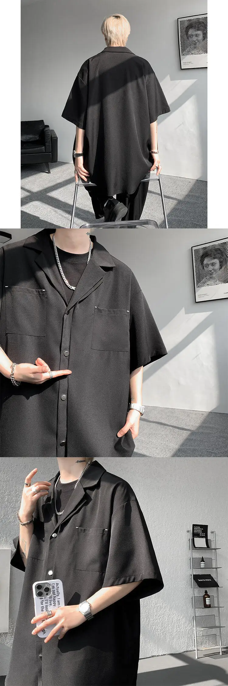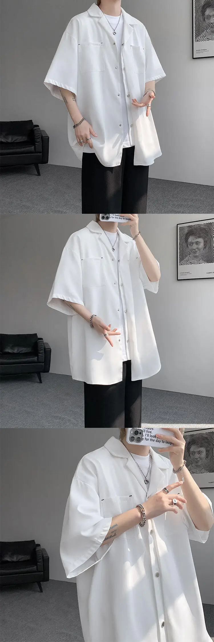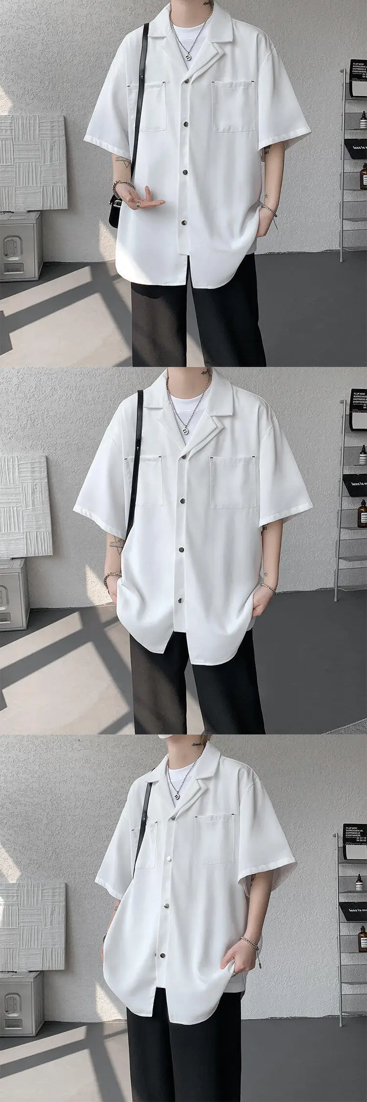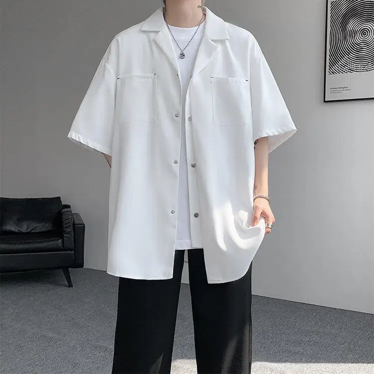 Summer Short Sleeved Shirt Men Fashion Social Mens Black Dress Shirt Korean Loose Casual White Shirt Mens Office Formal Shirts