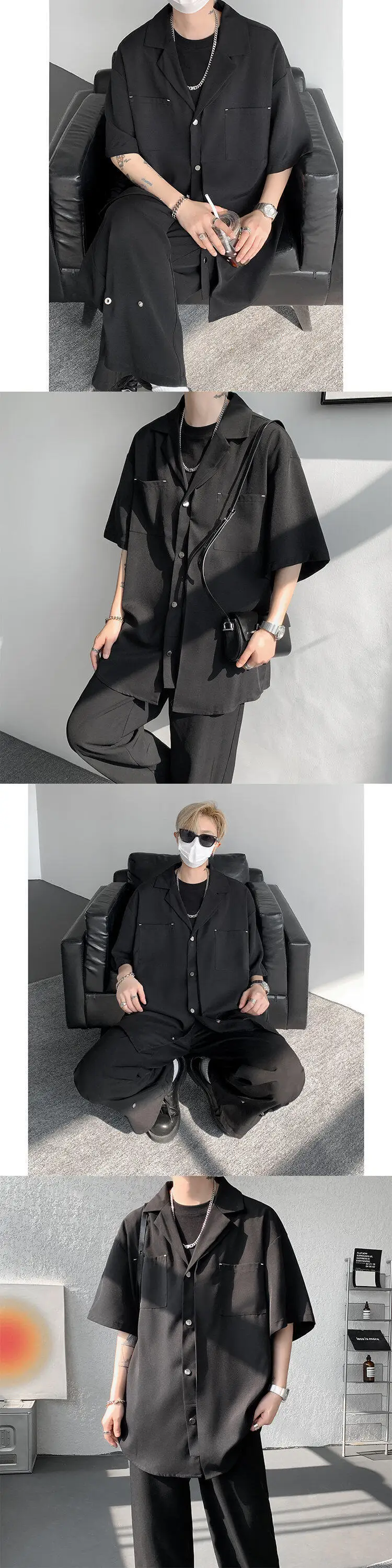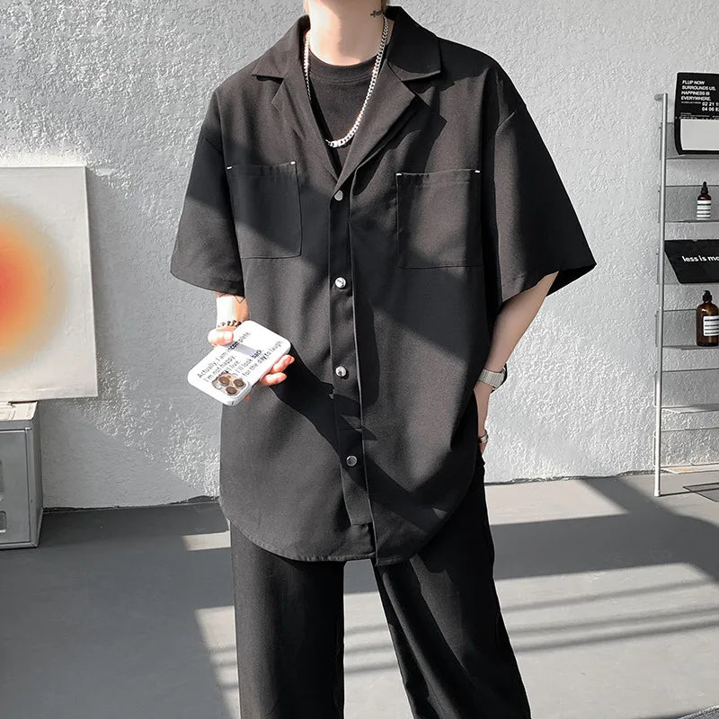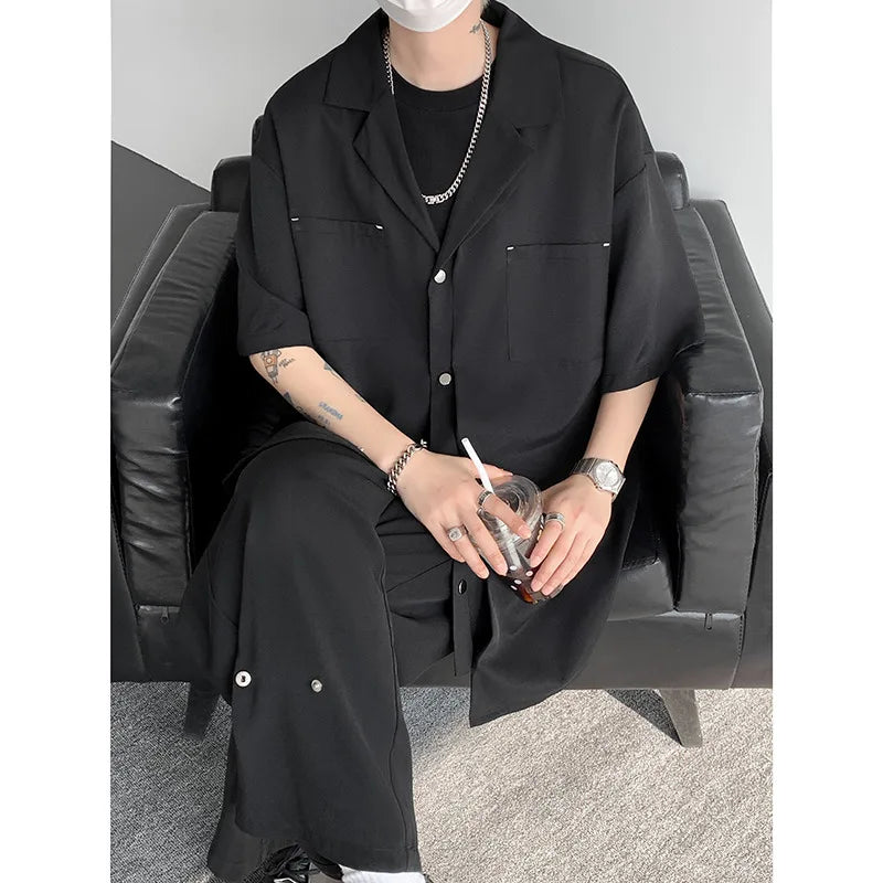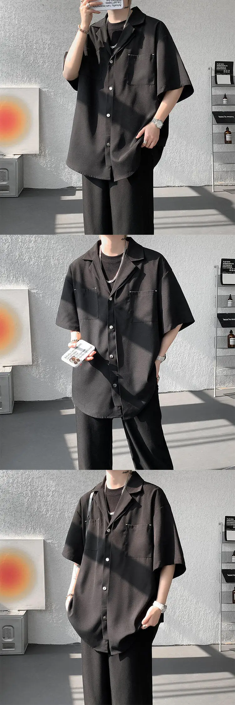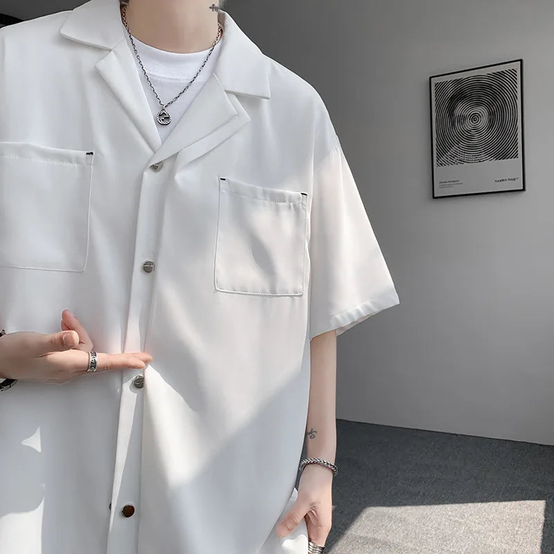 Summer Short Sleeved Shirt Men Fashion Social Mens Black Dress Shirt Korean Loose Casual White Shirt Mens Office Formal Shirts