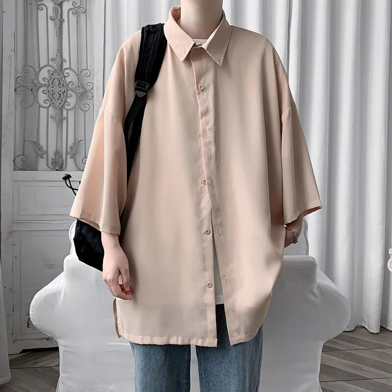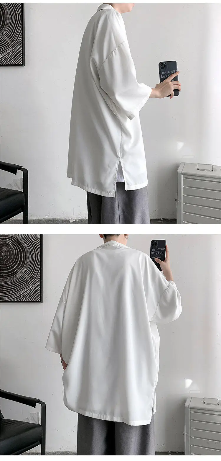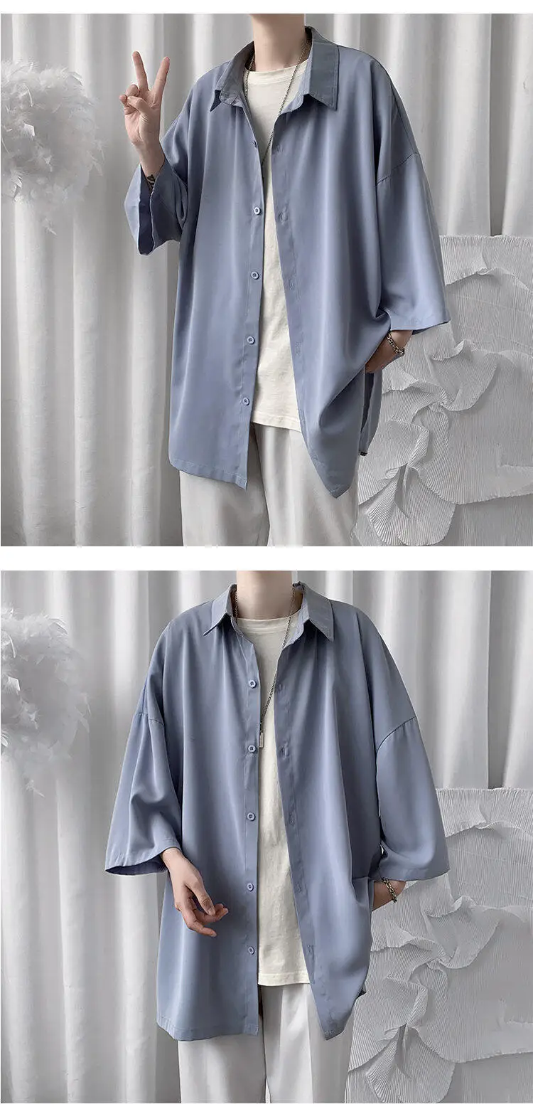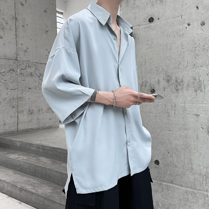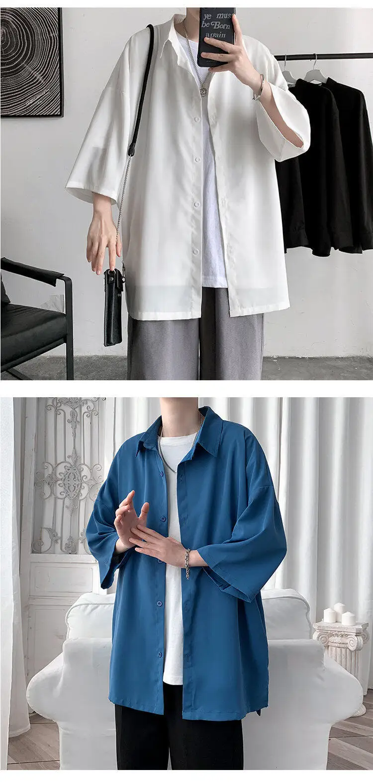 Summer Short Sleeved Shirt Men Fashion Society Mens Black Dress Shirt Korean Loose Ice Silk Shirts Mens Oversized White Shirt