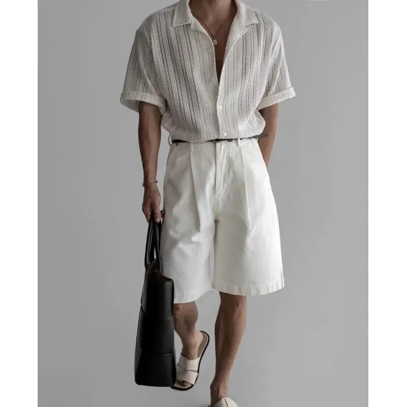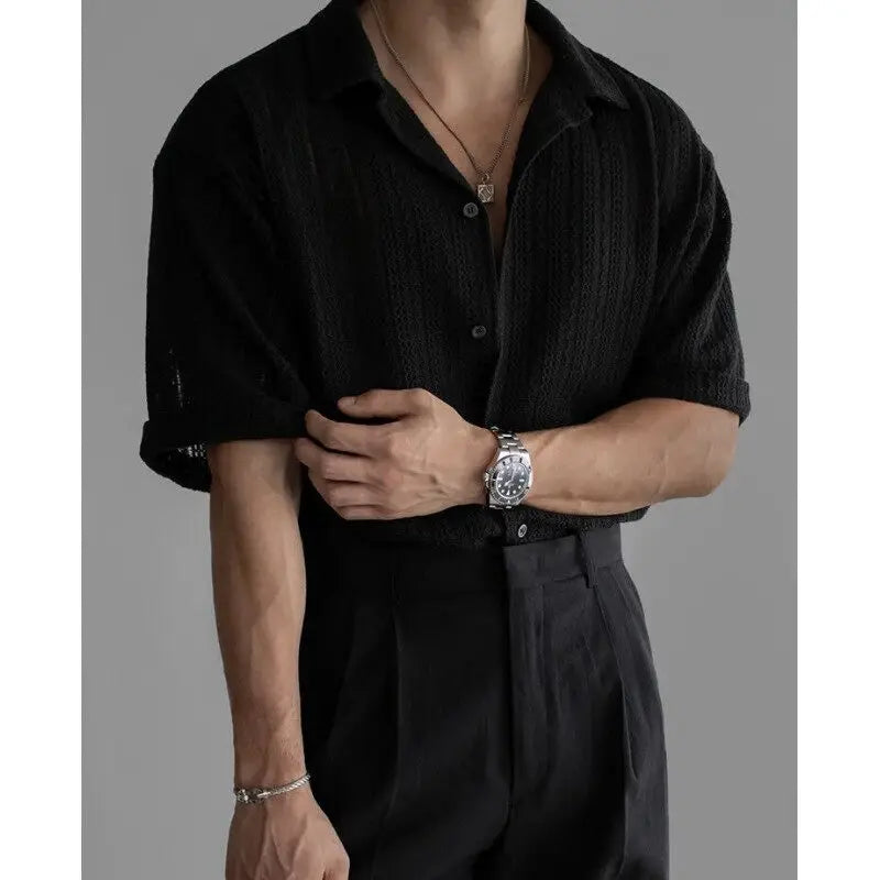 Summer Short Sleeved Shirt Men Oversized Black White Casual Shirt Men Streetwear Korean Loose Hollow Shirt Mens Hawaiian Shirts