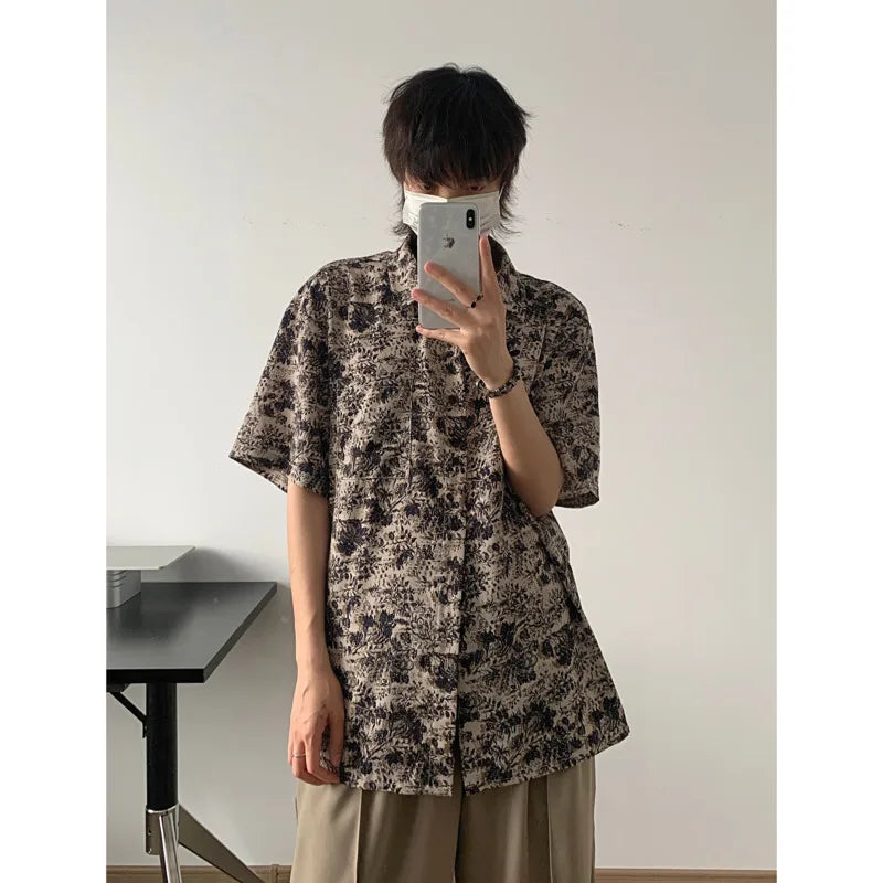Summer Short Sleeved Shirt Men Oversized Retro Printed Shirt Men Streetwear Korean Loose Casual Shirt Mens Hawaiian Shirts