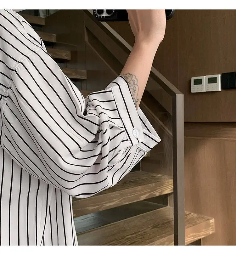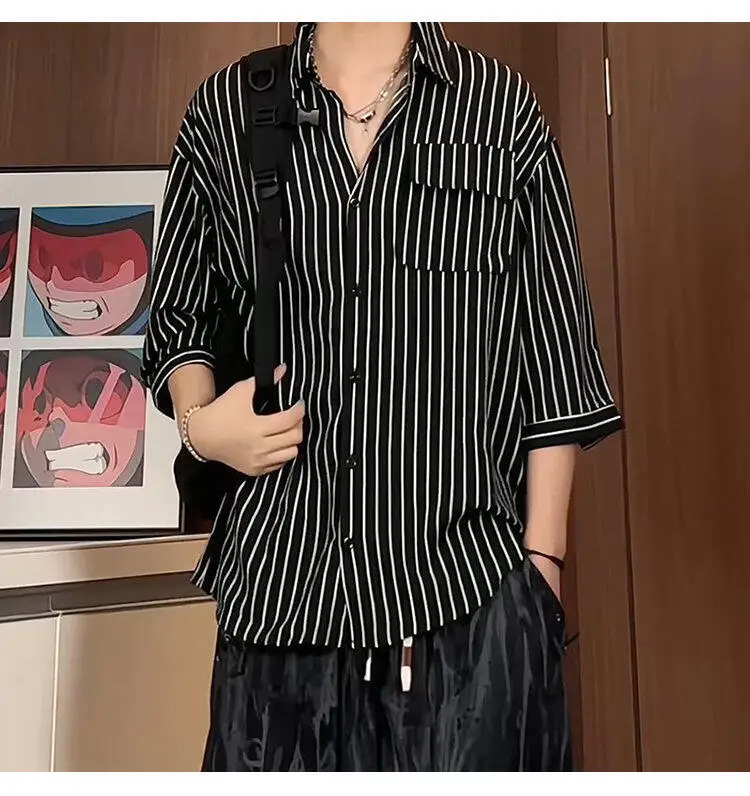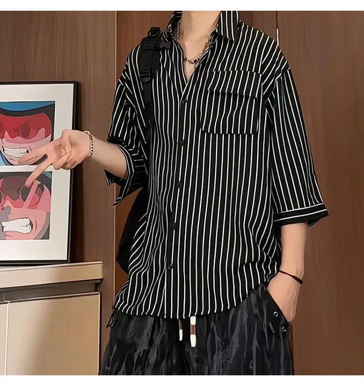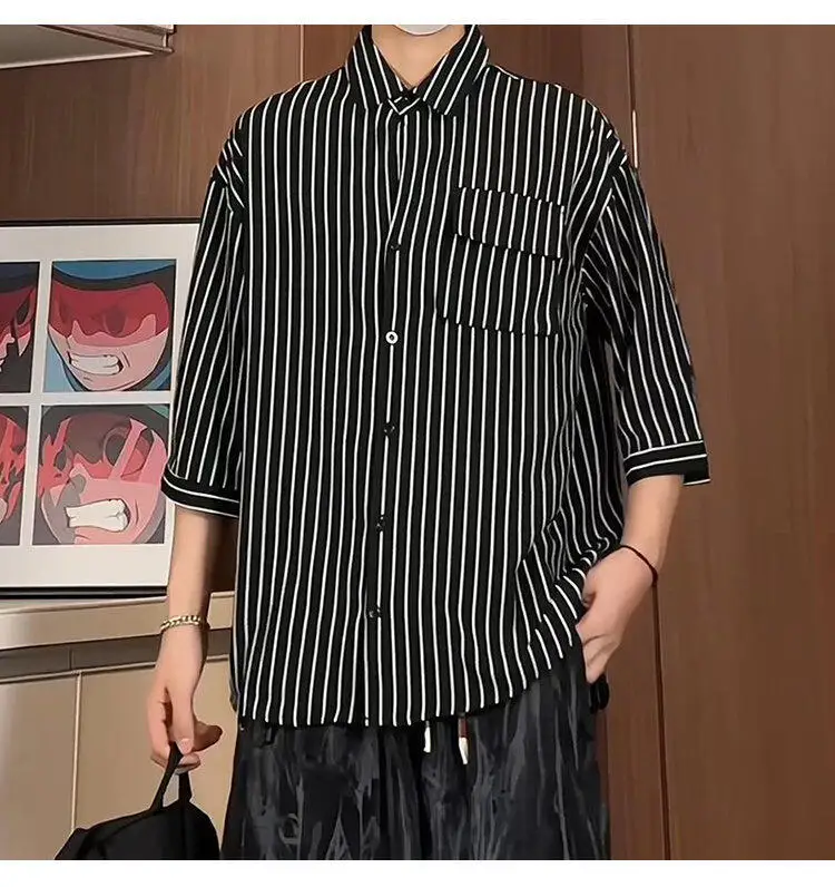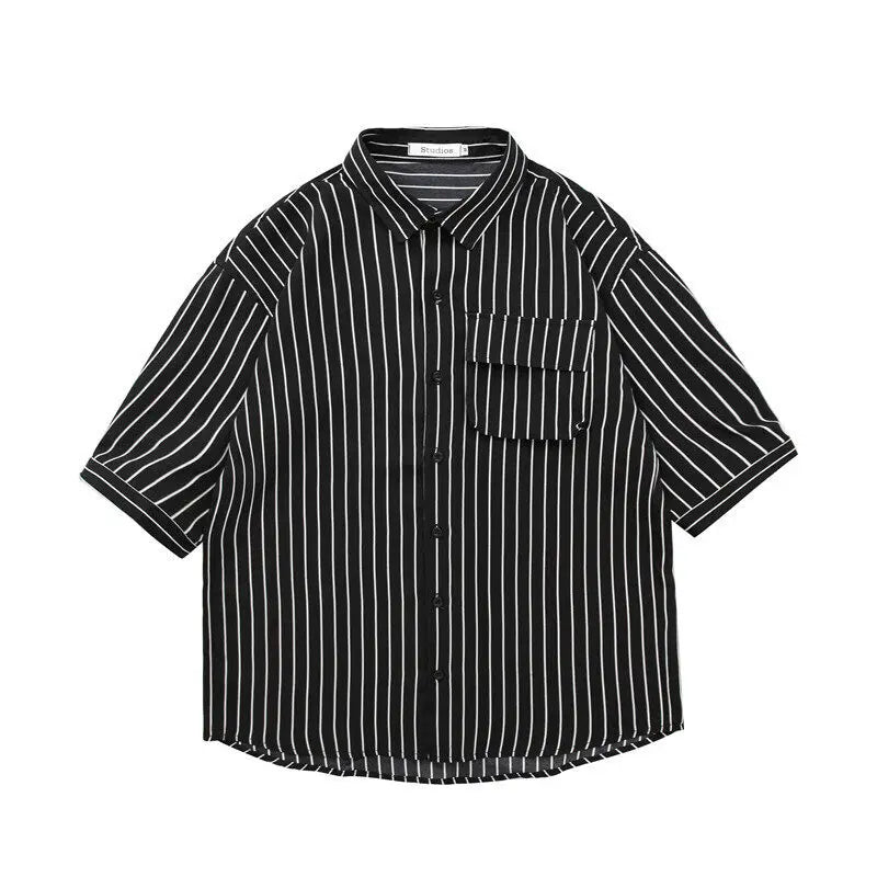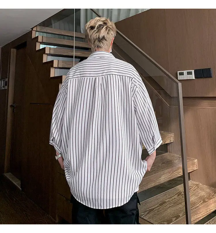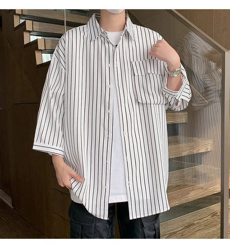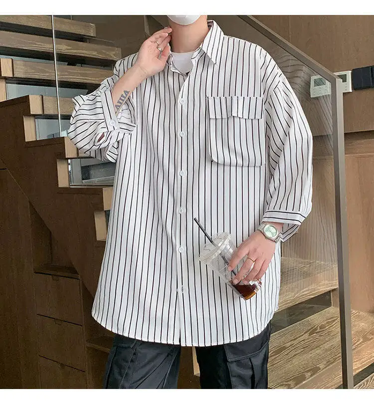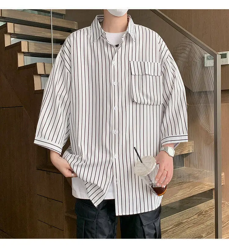 Summer Short Sleeved Shirt Men Pocket Casual White Shirt Men Koreanloose Striped Shirt Mens Office Formal Shirts Large Size 5XL