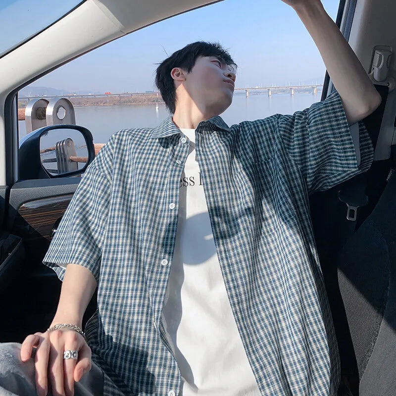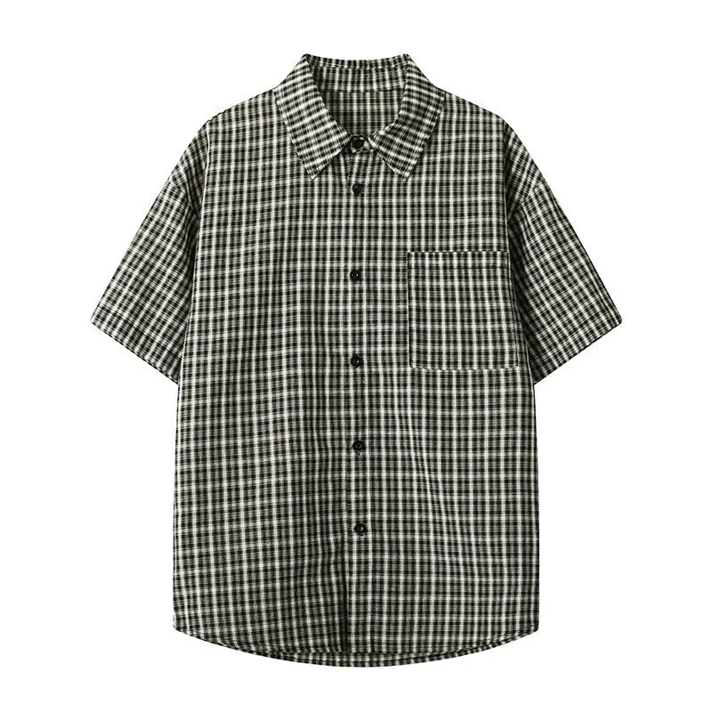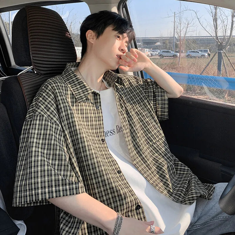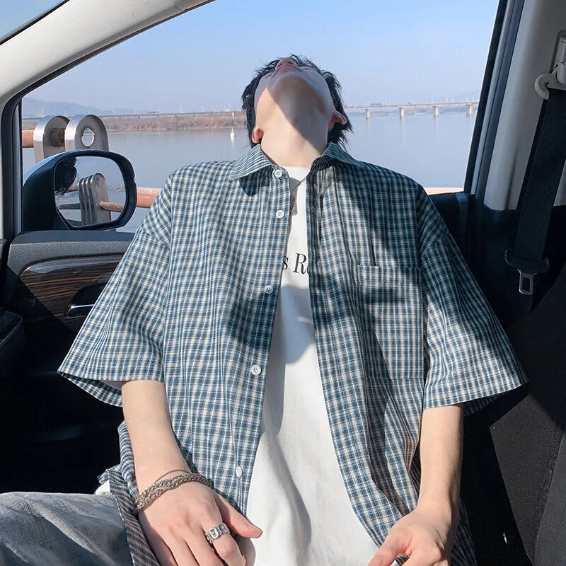Summer Short Sleeved Shirt Men Retro Plaid Shirt Mens Streetwear Korean Loose Casual Shirt Man Fashion Shirts Large Size 4XL