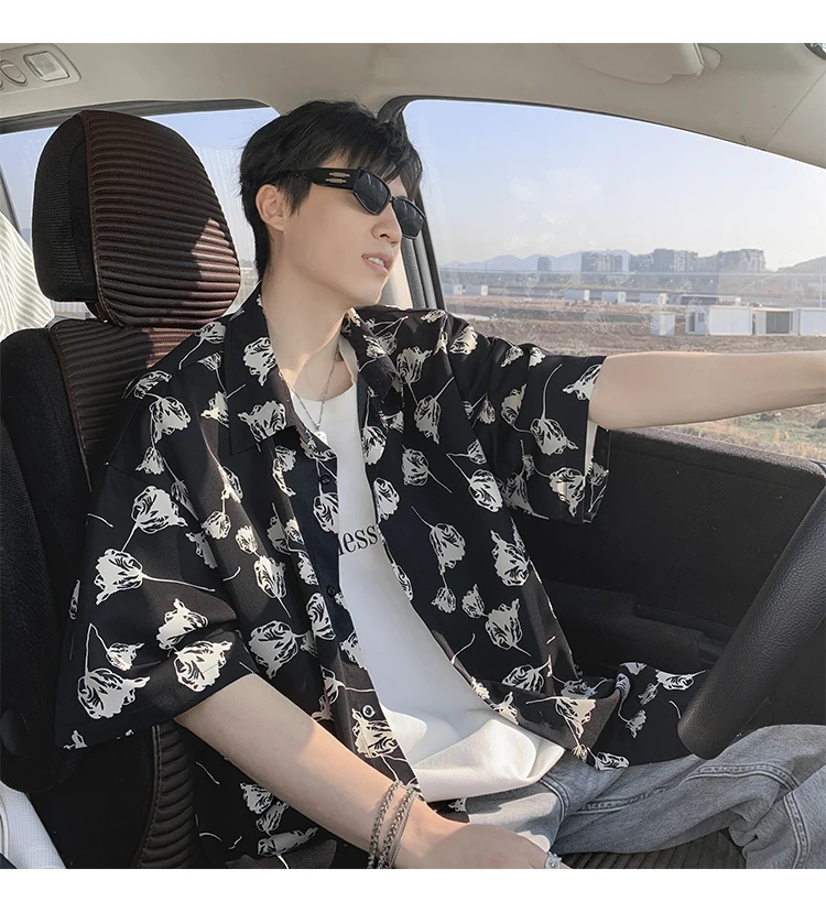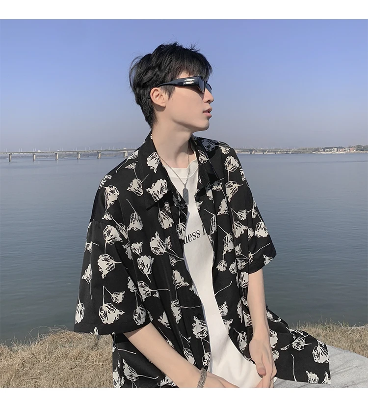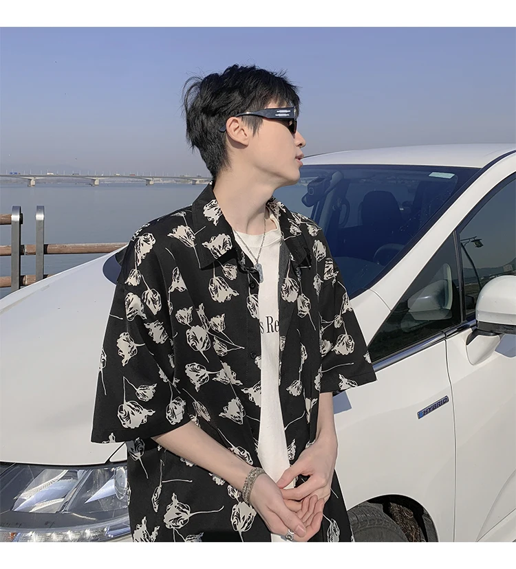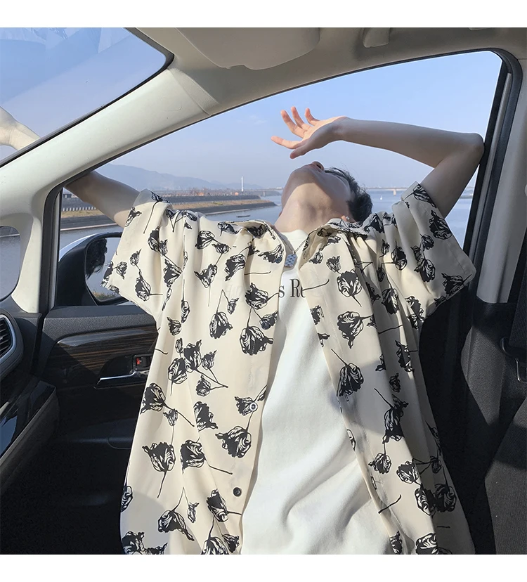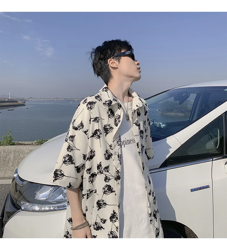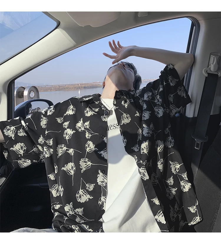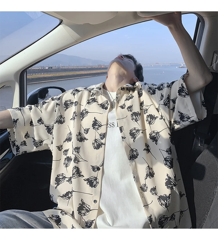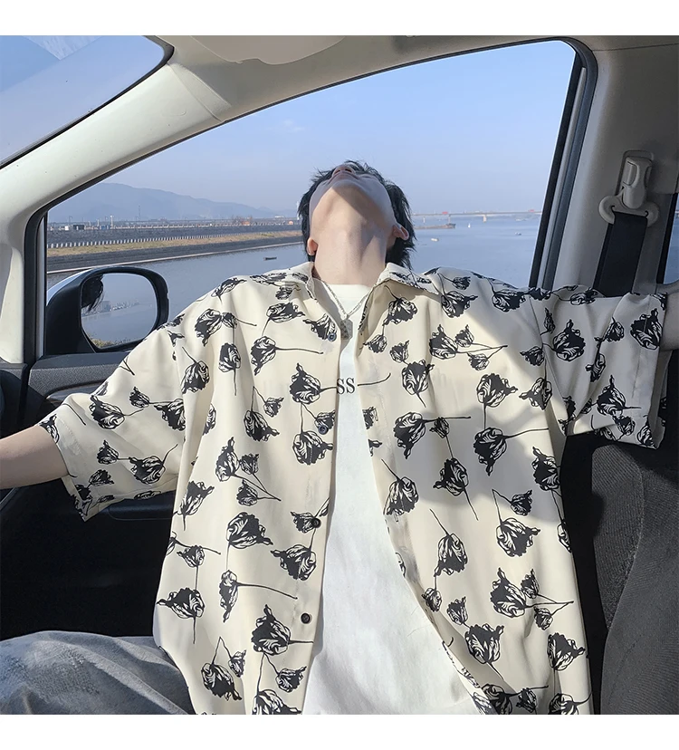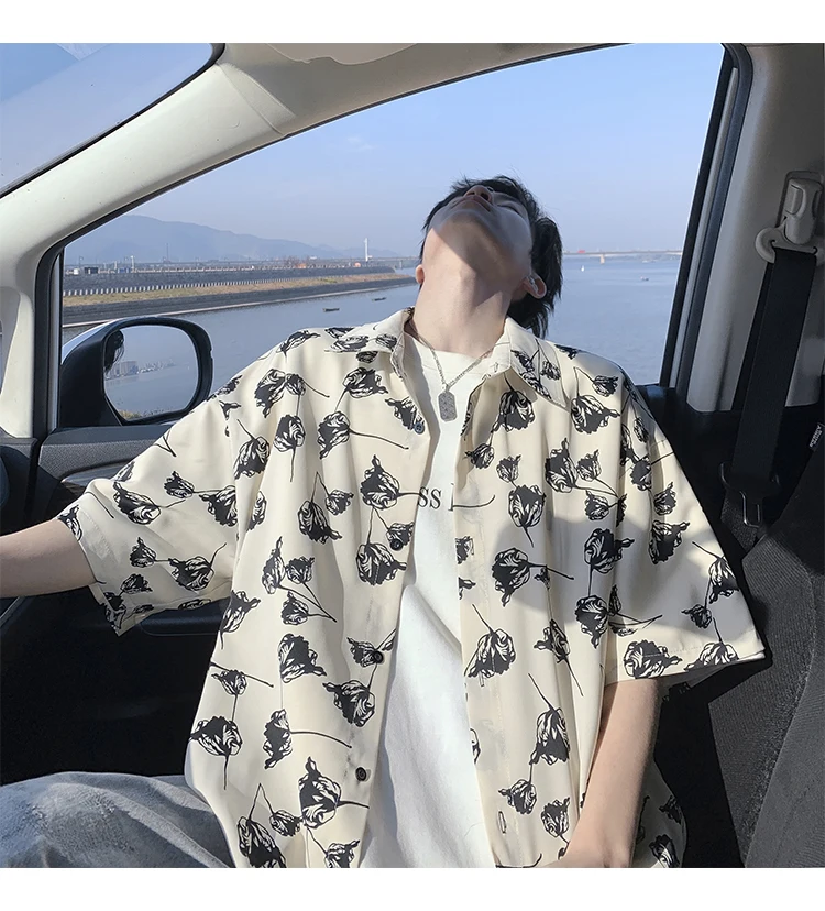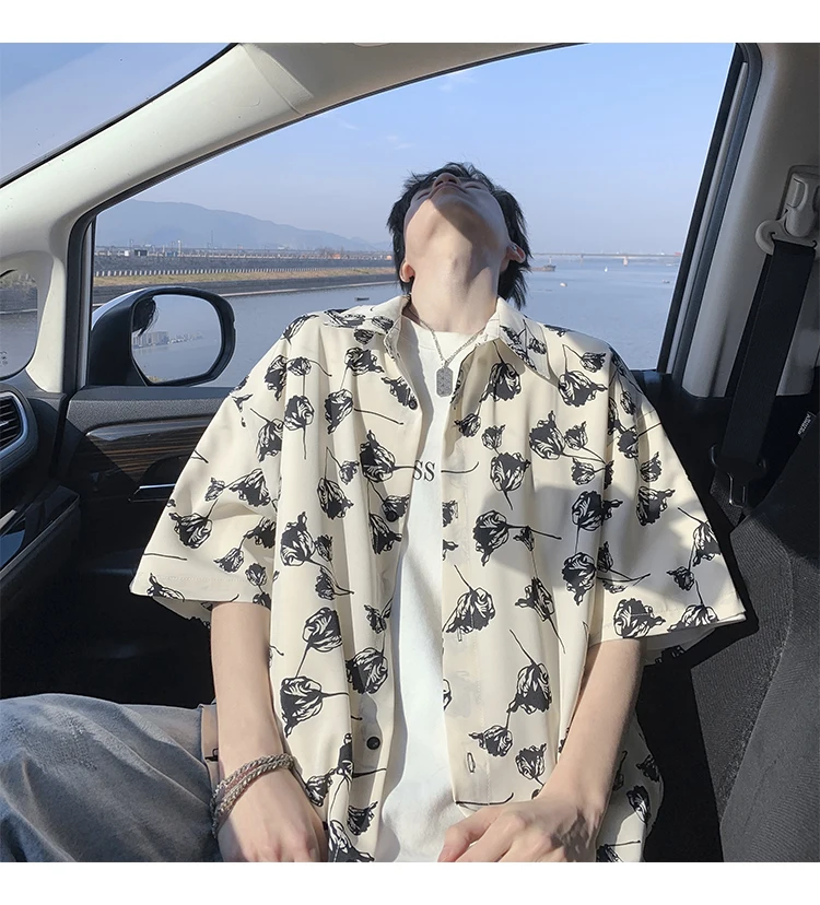 Summer Short Sleeved Shirt Men Retro Printed Shirt Men Streetwear Hip-hop Loose Flower Shirt Mens Hawaiian Shirts Plus Size 5XL