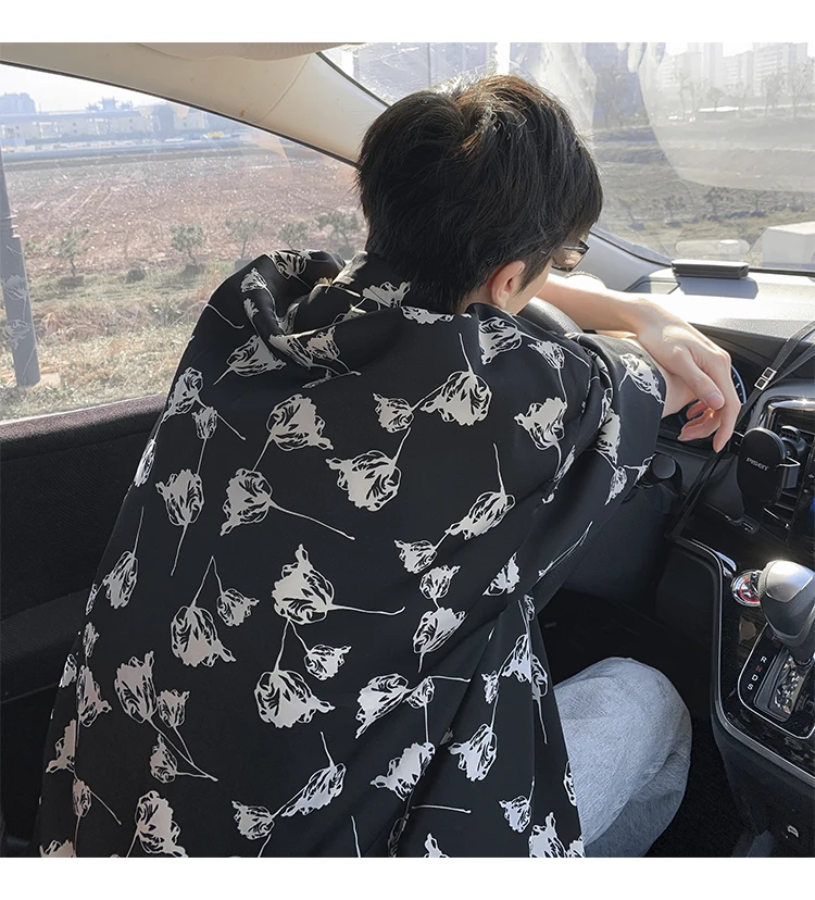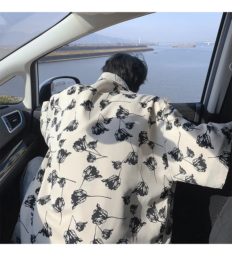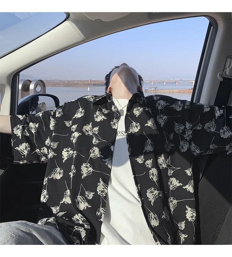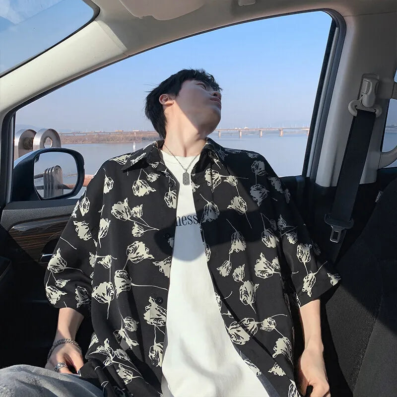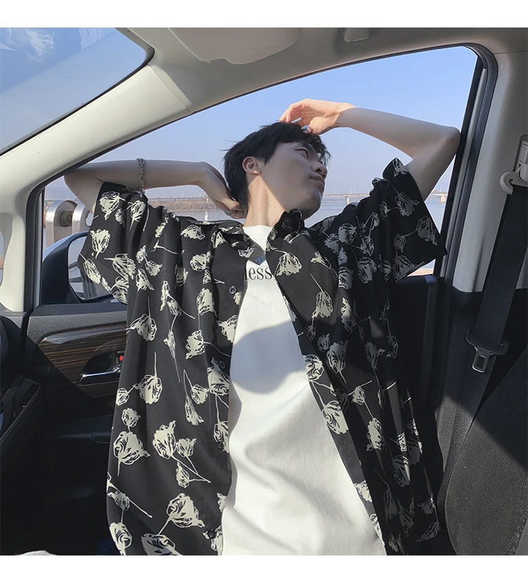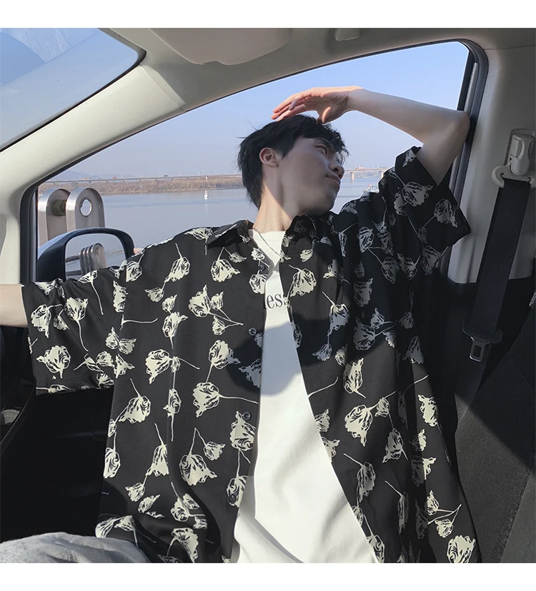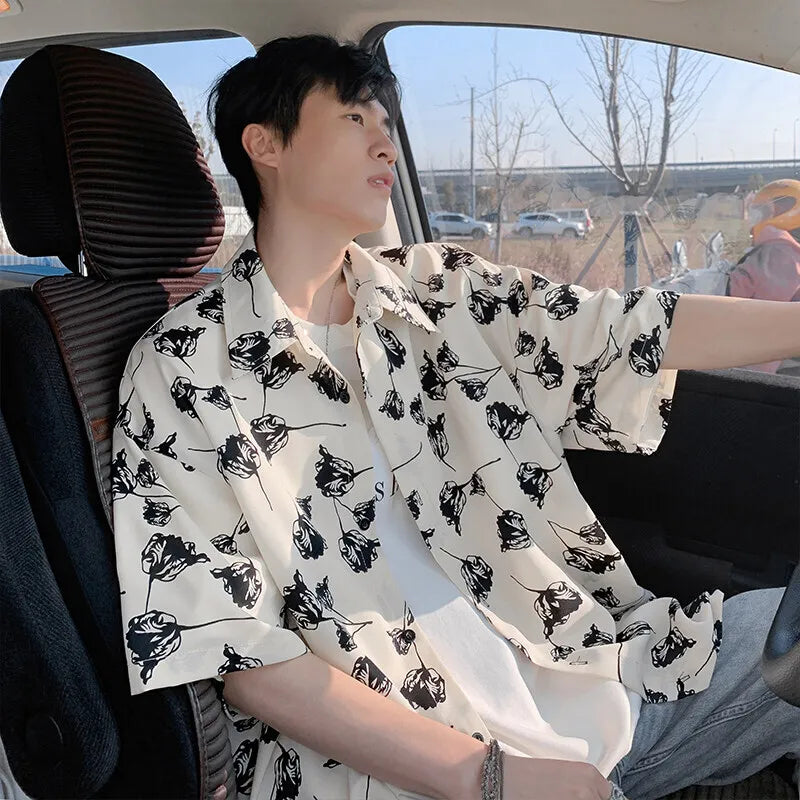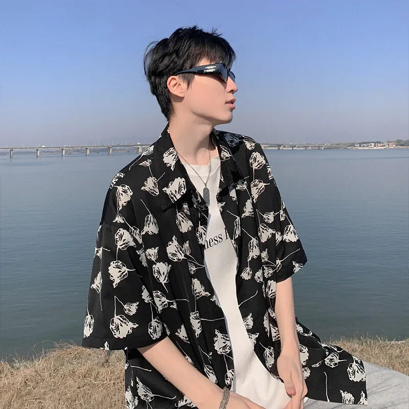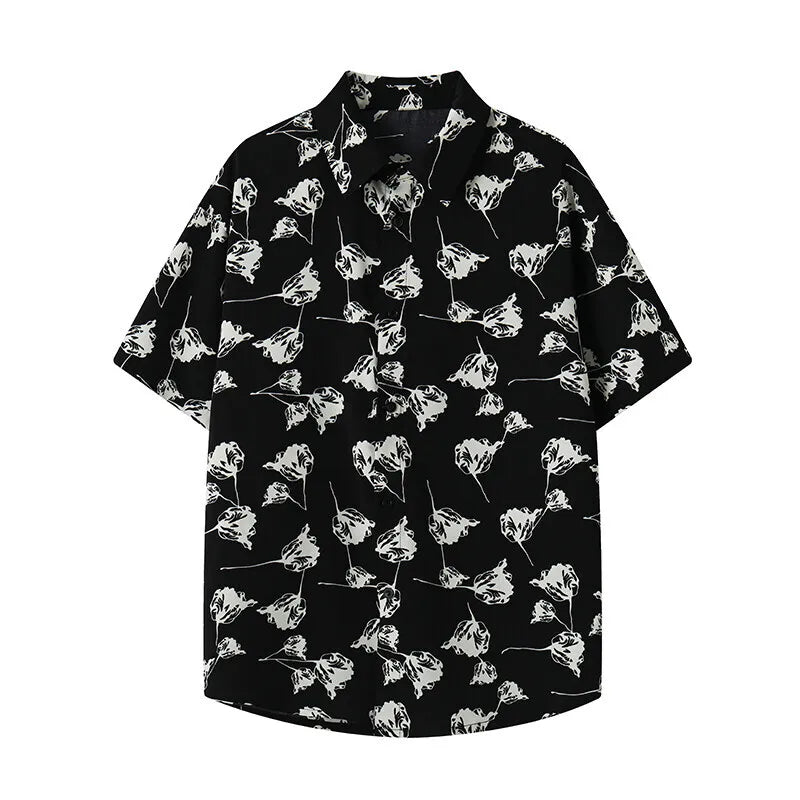 Summer Short Sleeved Shirt Men Retro Printed Shirt Men Streetwear Hip-hop Loose Flower Shirt Mens Hawaiian Shirts Plus Size 5XL