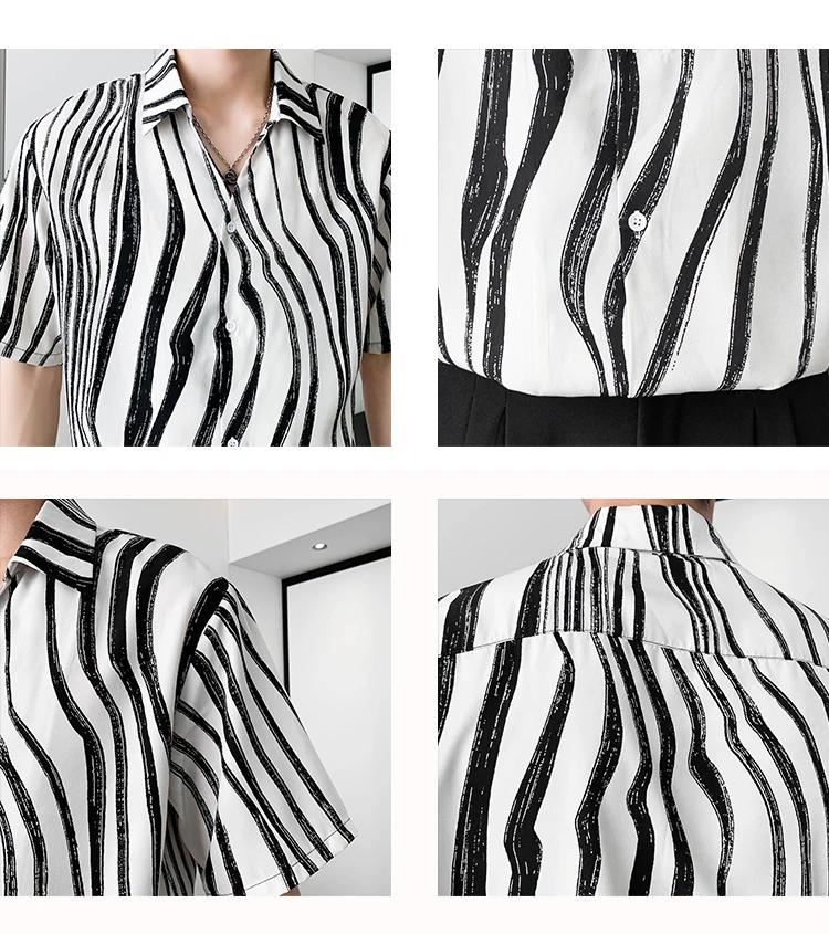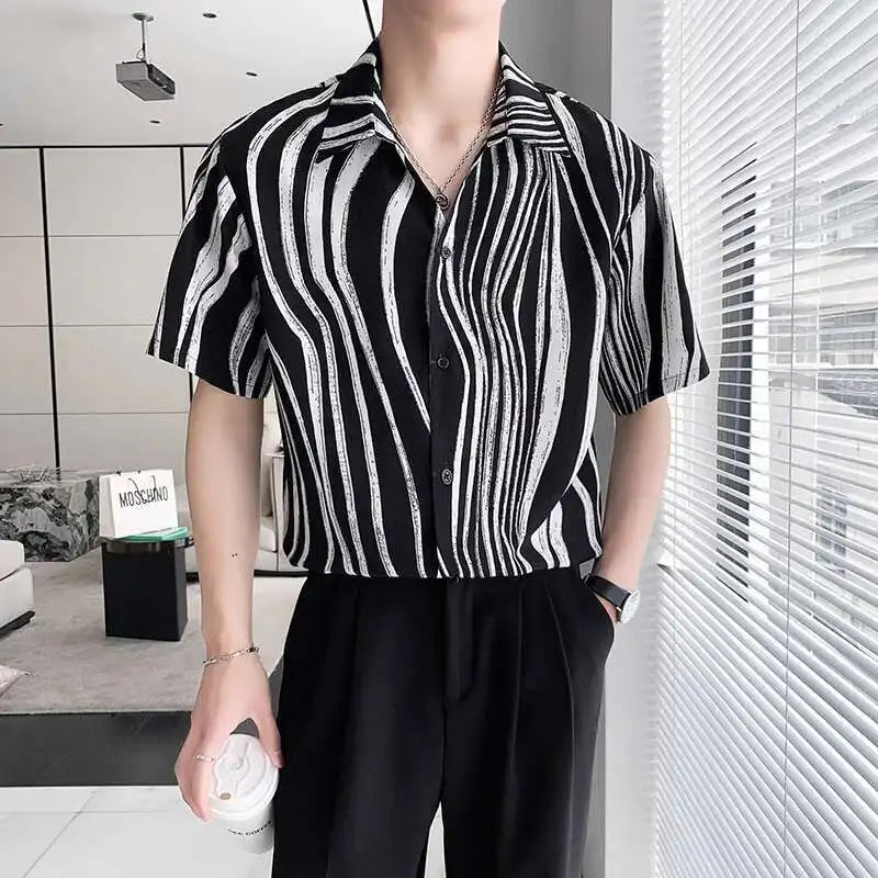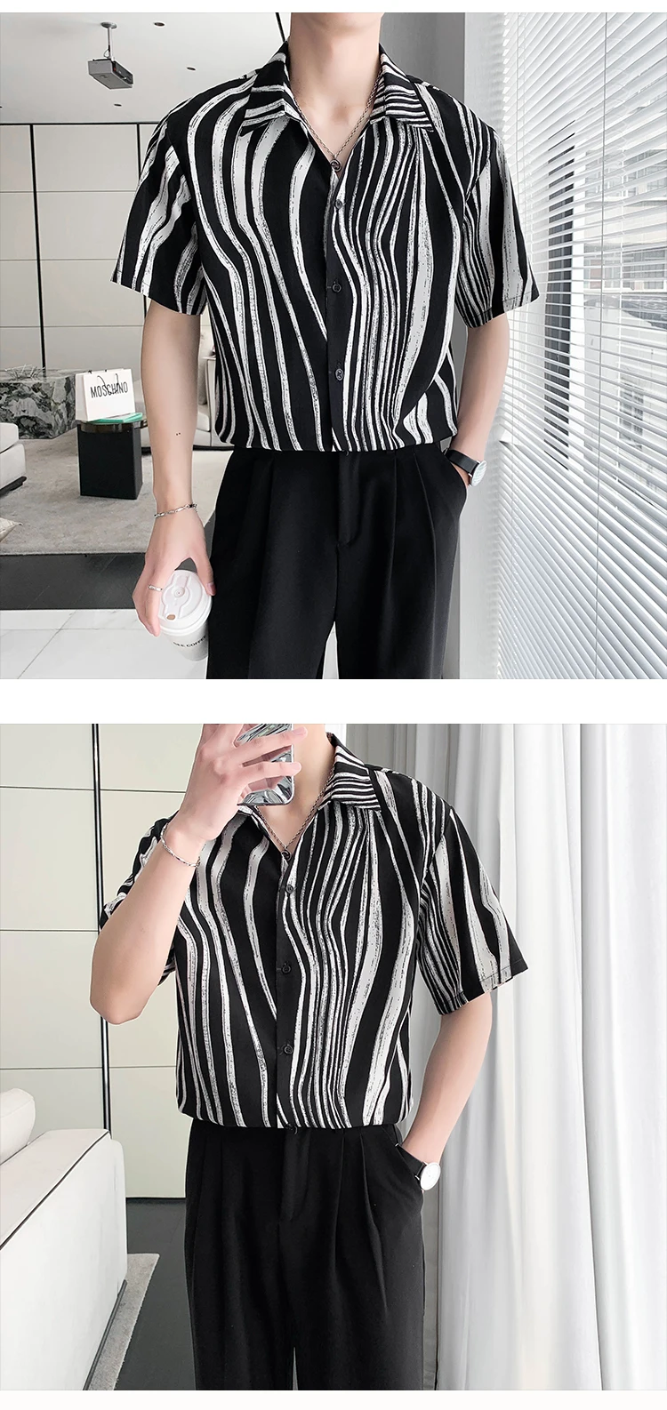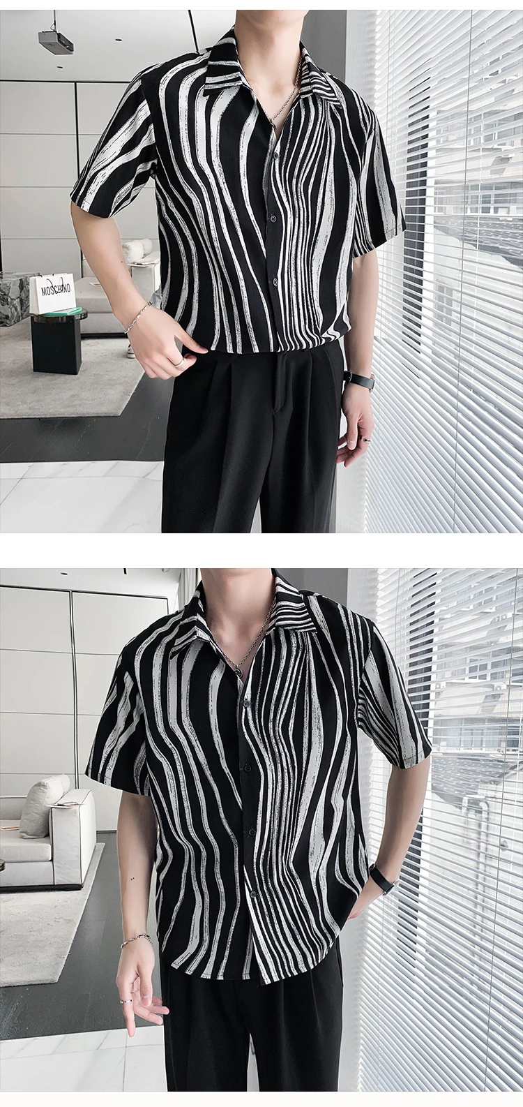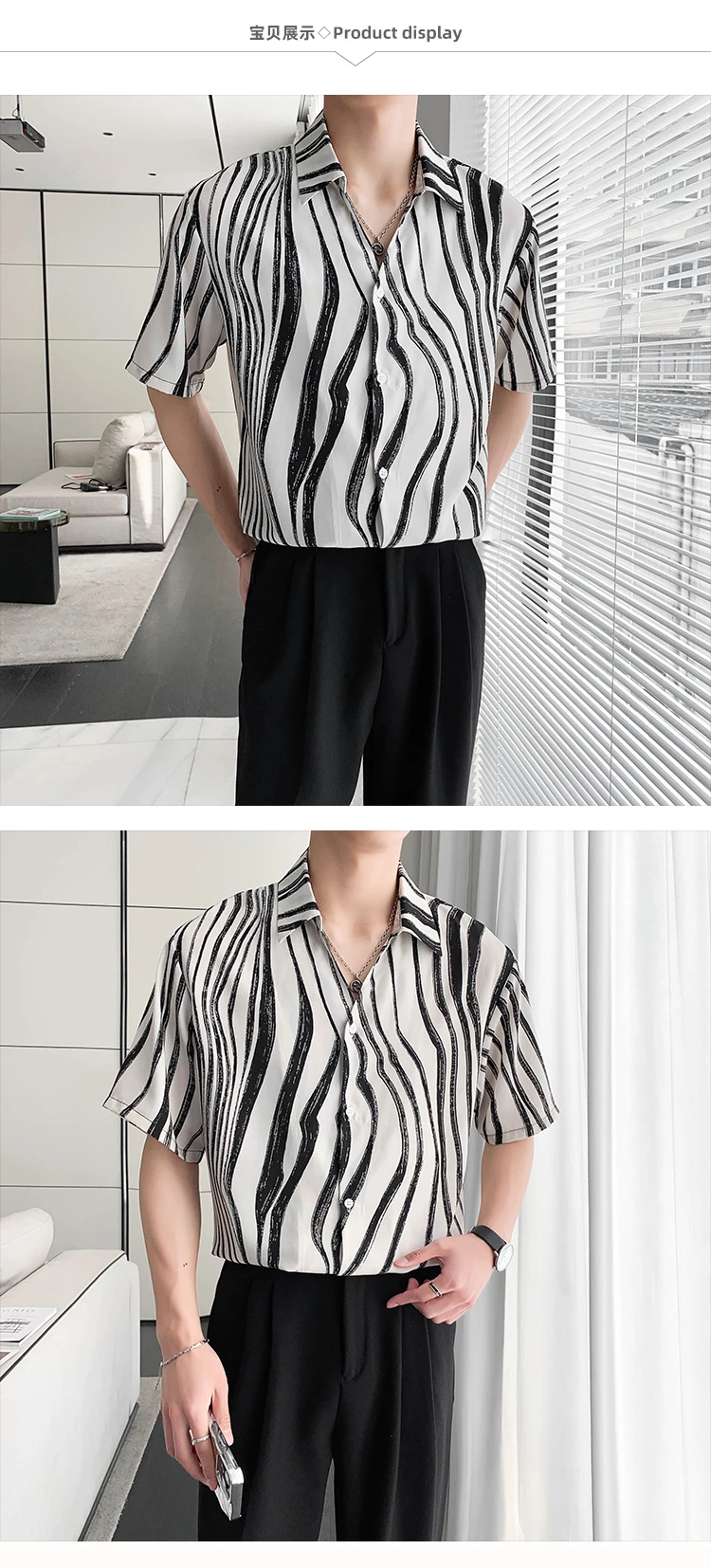 Summer Short Sleeved Shirt Men Slim Fit Fashion Social Mens Formal Dress Shirt Korean Casual Shirt Mens White Striped Shirts