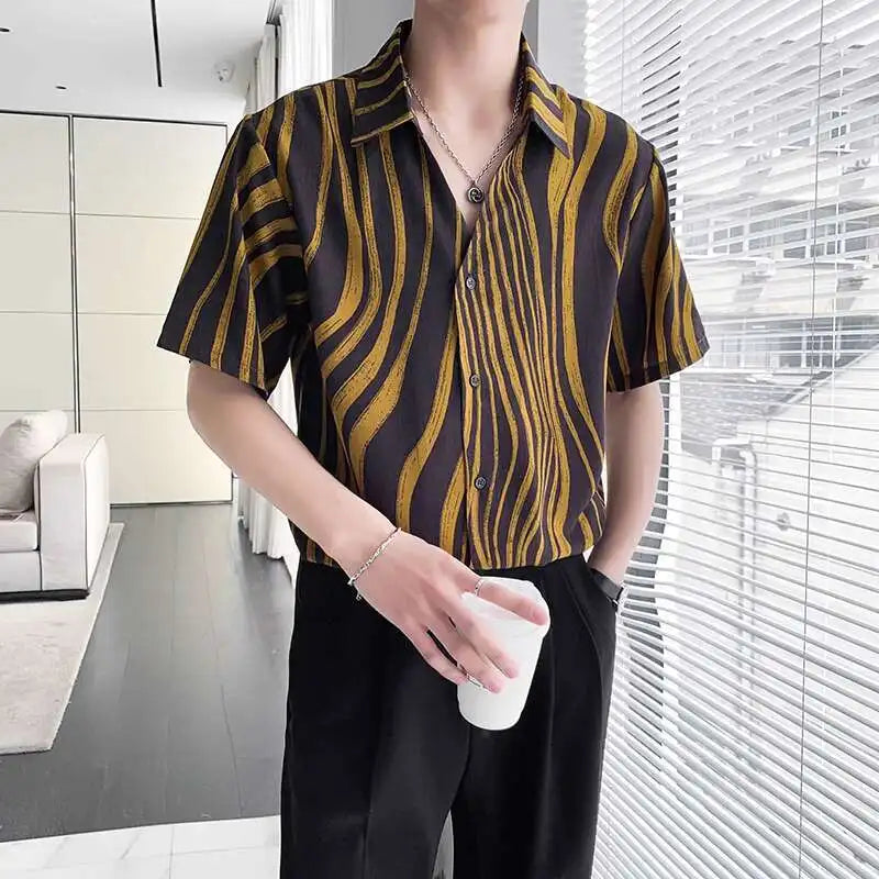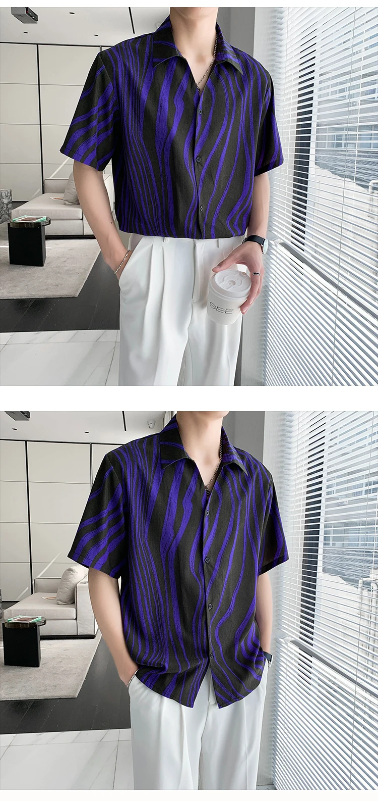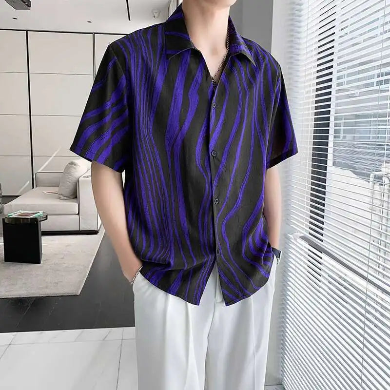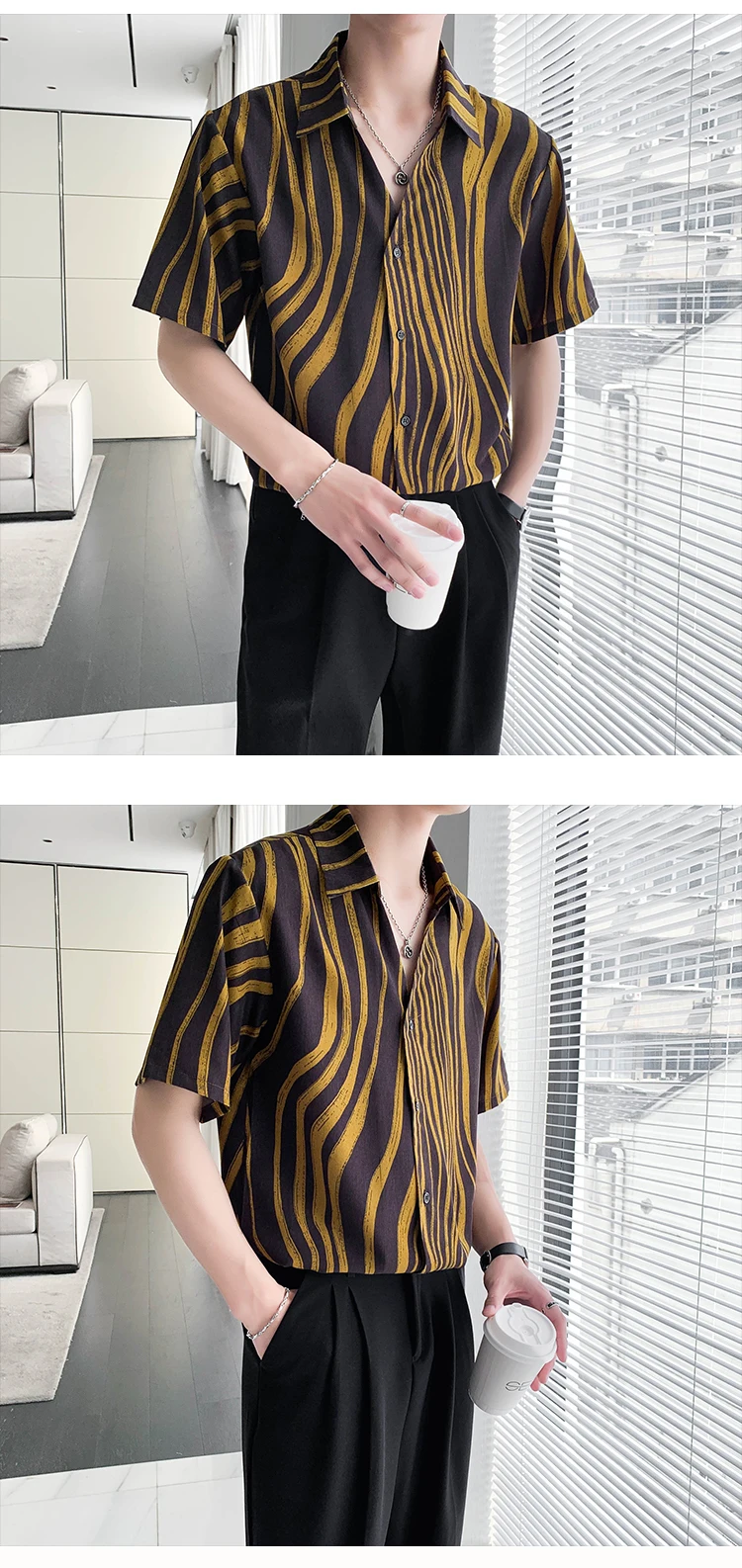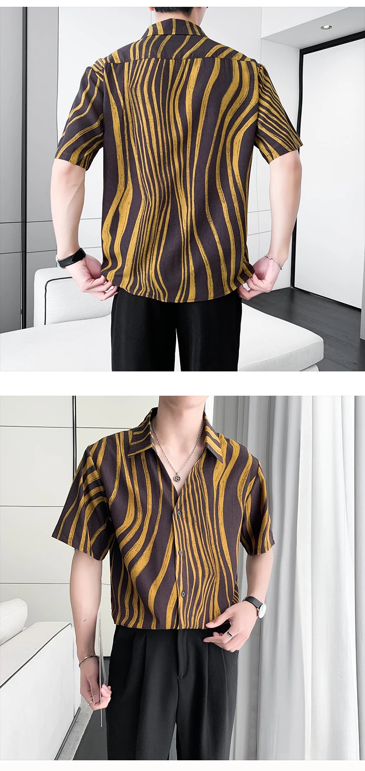 Summer Short Sleeved Shirt Men Slim Fit Fashion Social Mens Formal Dress Shirt Korean Casual Shirt Mens White Striped Shirts