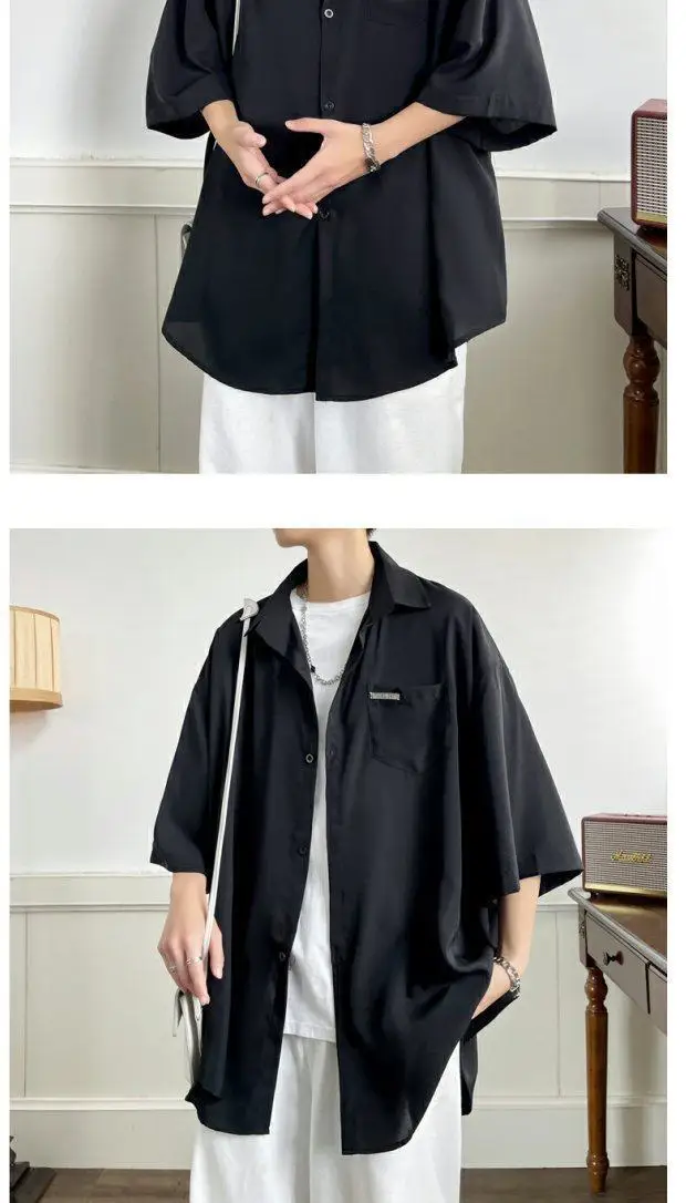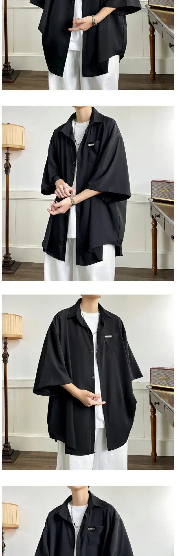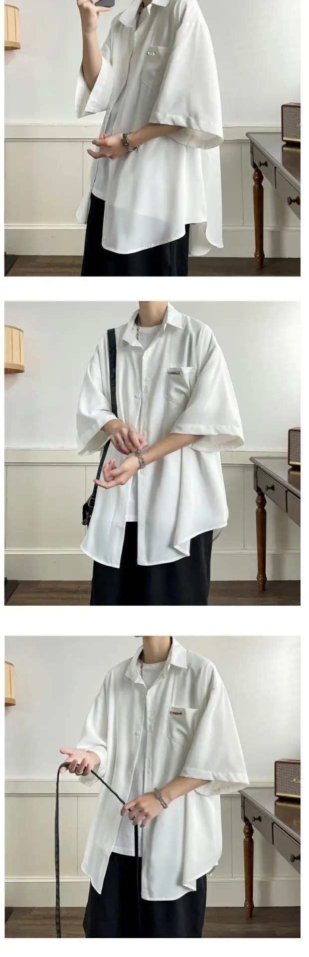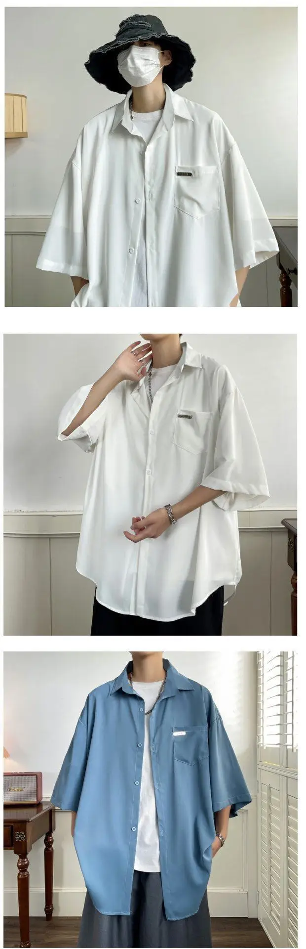 Summer Short Sleeved Shirt Men Society Mens Black Dress Shirt Korean Loose Ice Silk Shirt Mens White Casual Shirts Large Size