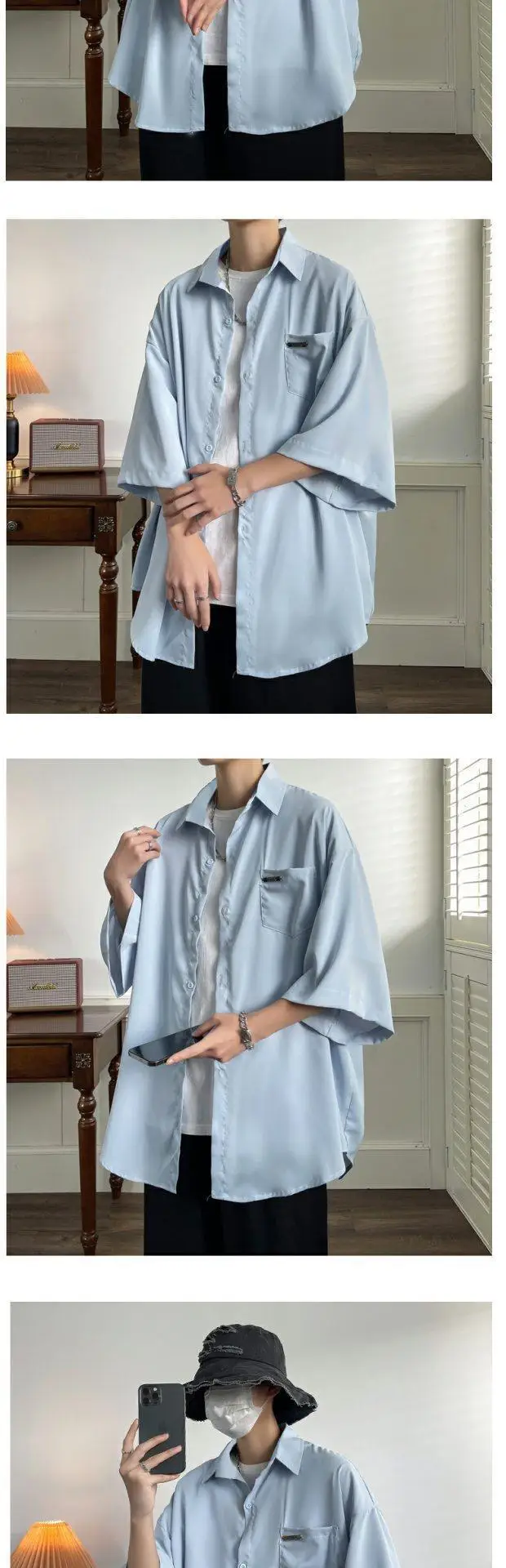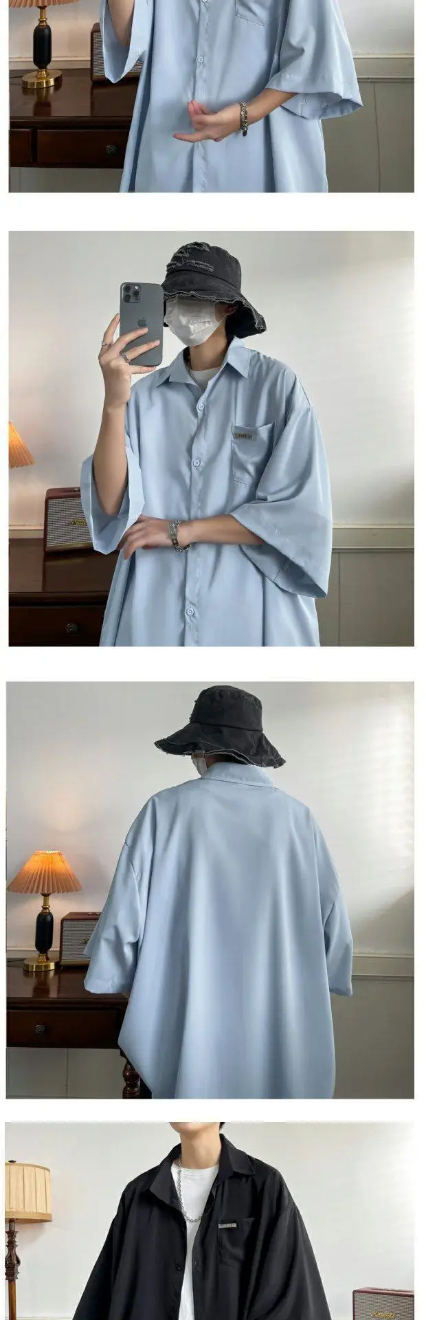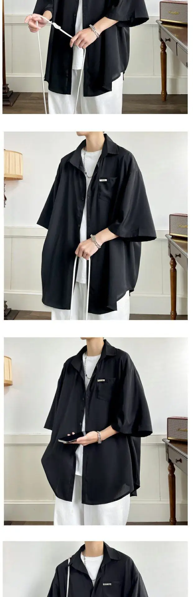 Summer Short Sleeved Shirt Men Society Mens Black Dress Shirt Korean Loose Ice Silk Shirt Mens White Casual Shirts Large Size