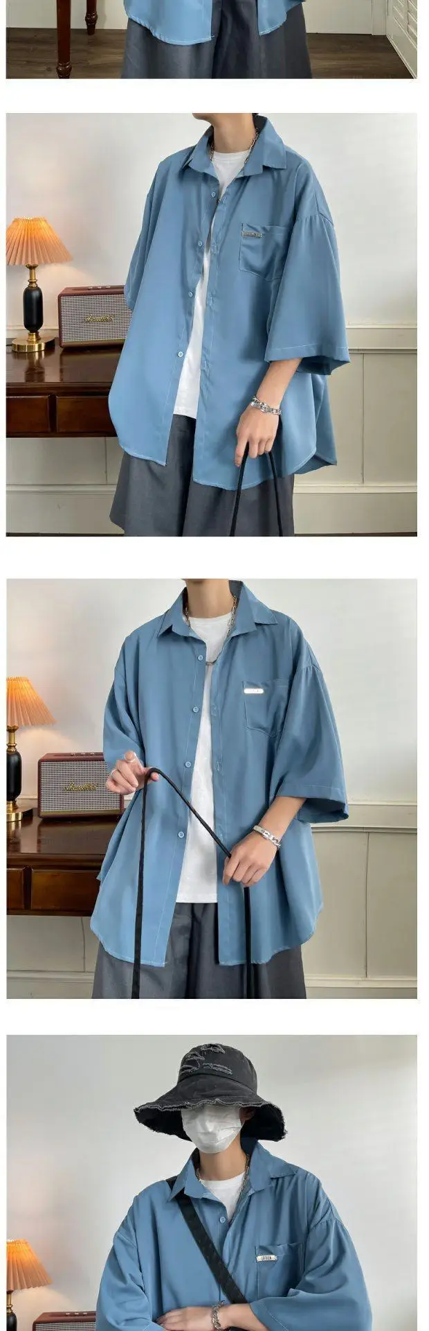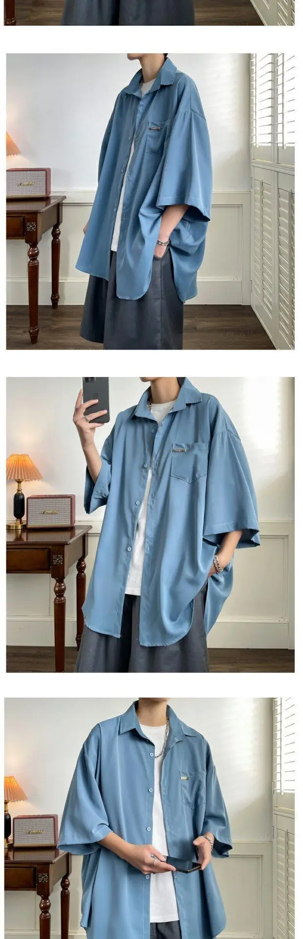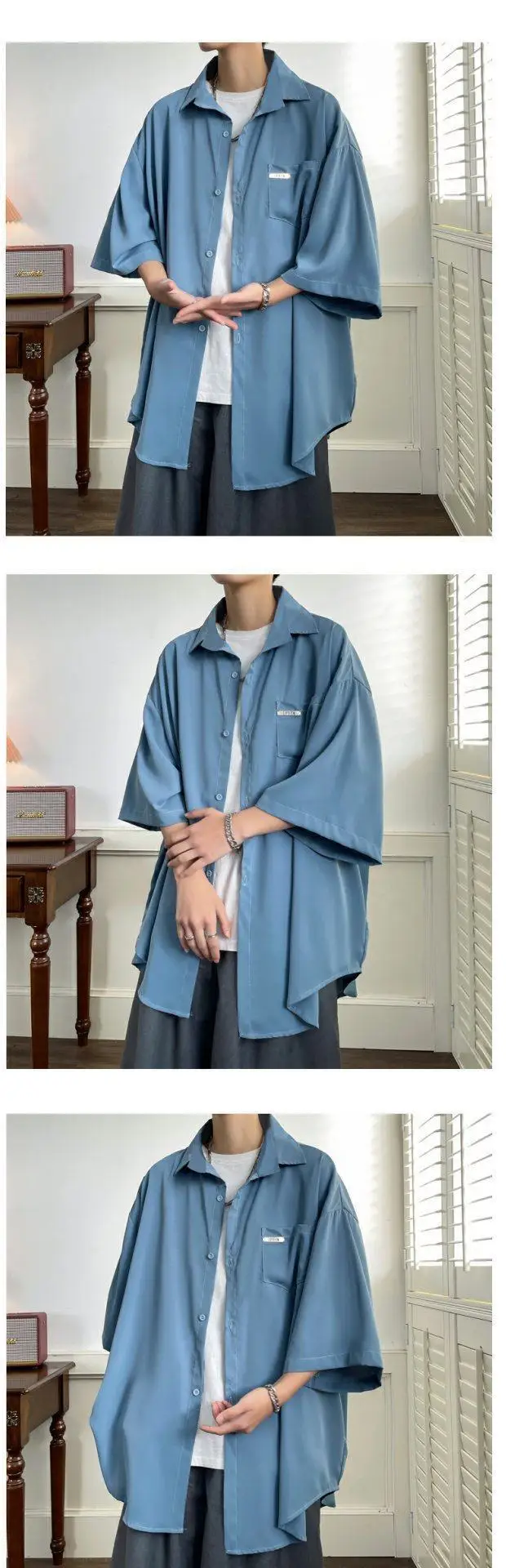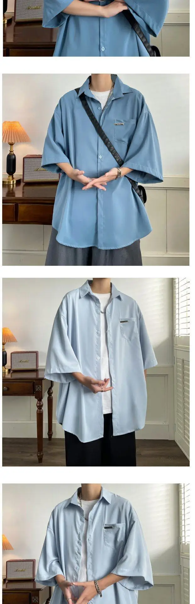Summer Short Sleeved Shirt Men Society Mens Black Dress Shirt Korean Loose Ice Silk Shirt Mens White Casual Shirts Large Size