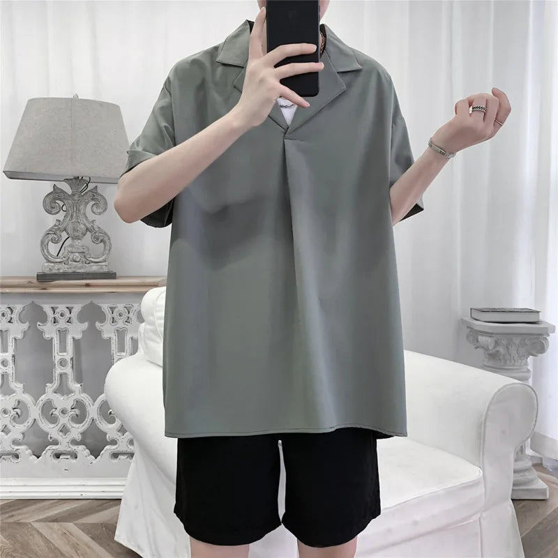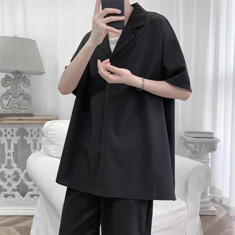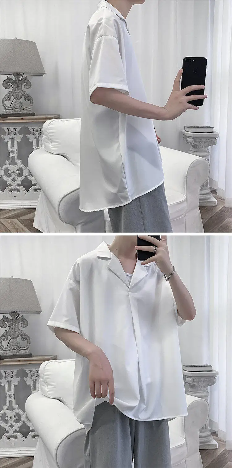 Summer Short Sleeved Shirt Men Society Mens Black Formal Dress Shirt Korean White Casual Shirt Mens Pullover Shirts Plus Size