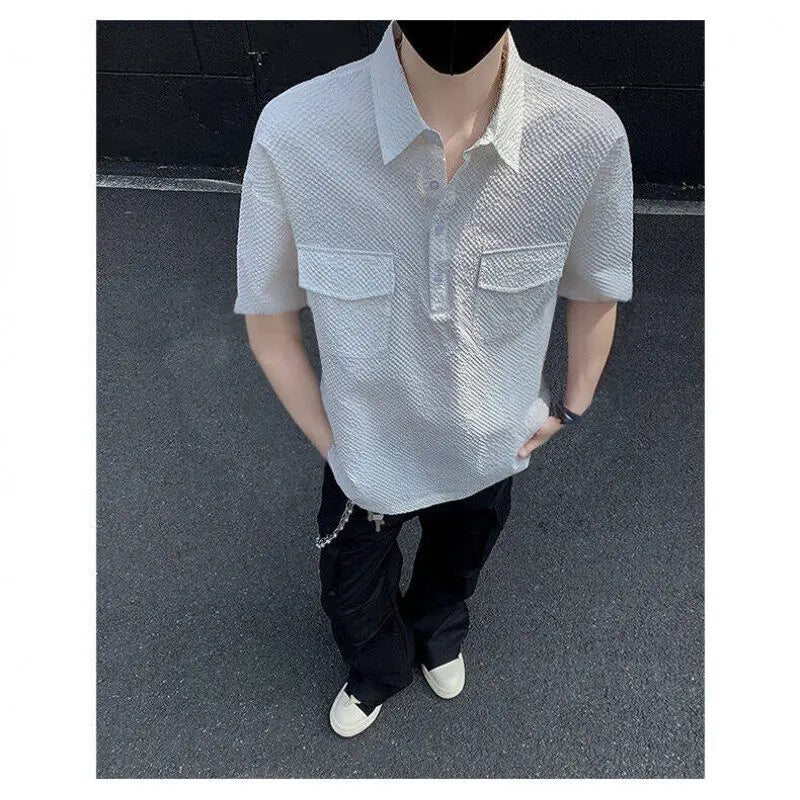 Summer Short Sleeved Shirt Men White Casual Shirt Man Streetwear Korean Loose Black Pullover Shirt Mens Fashion Shirts M-3XL