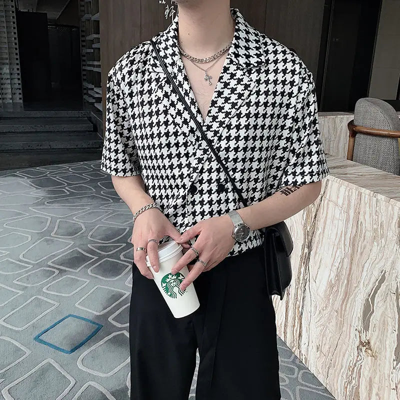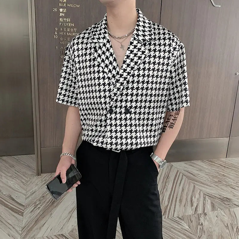 Summer Short-sleeved Shirts Men Fashion Retro Plaid Shirts Men Streetwear Korean Loose Casual Shirts Mens Dress Shirts M-2XL