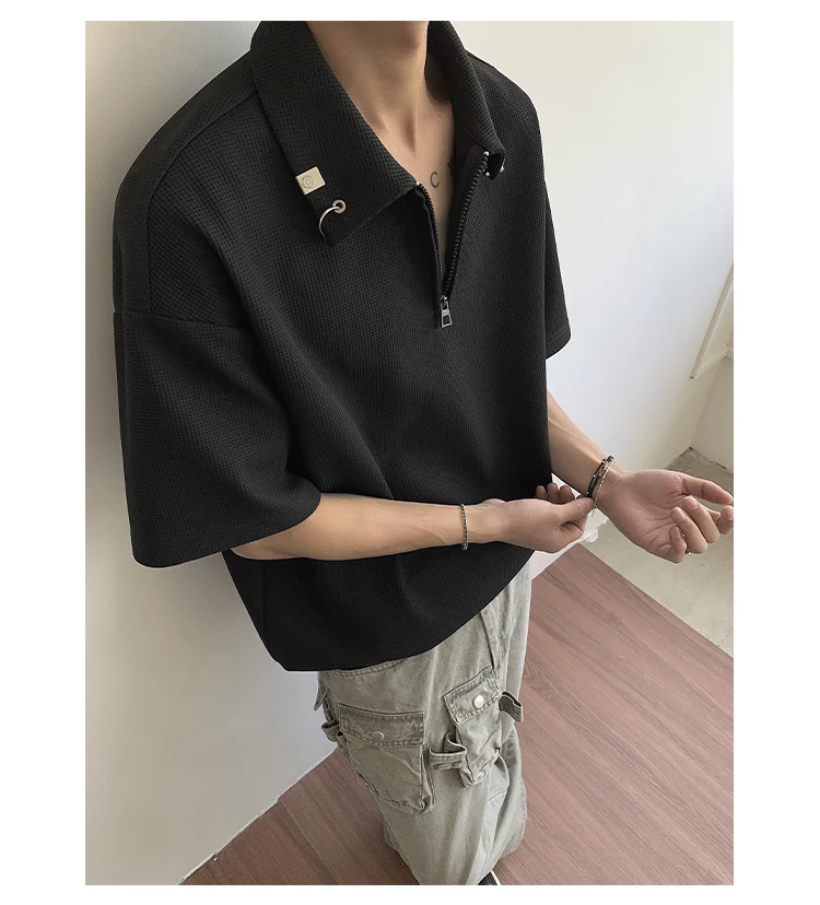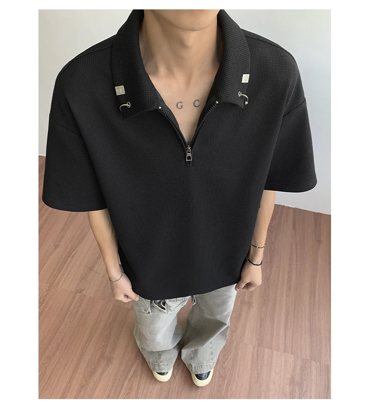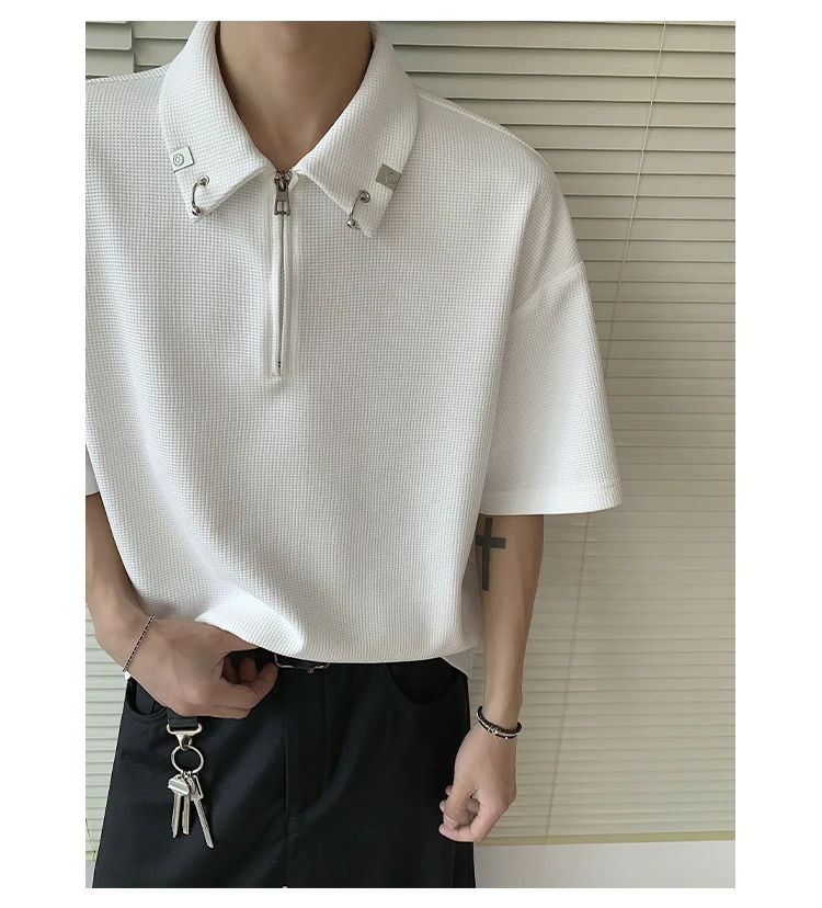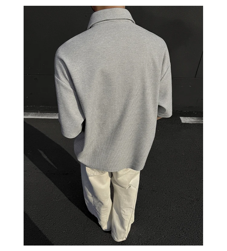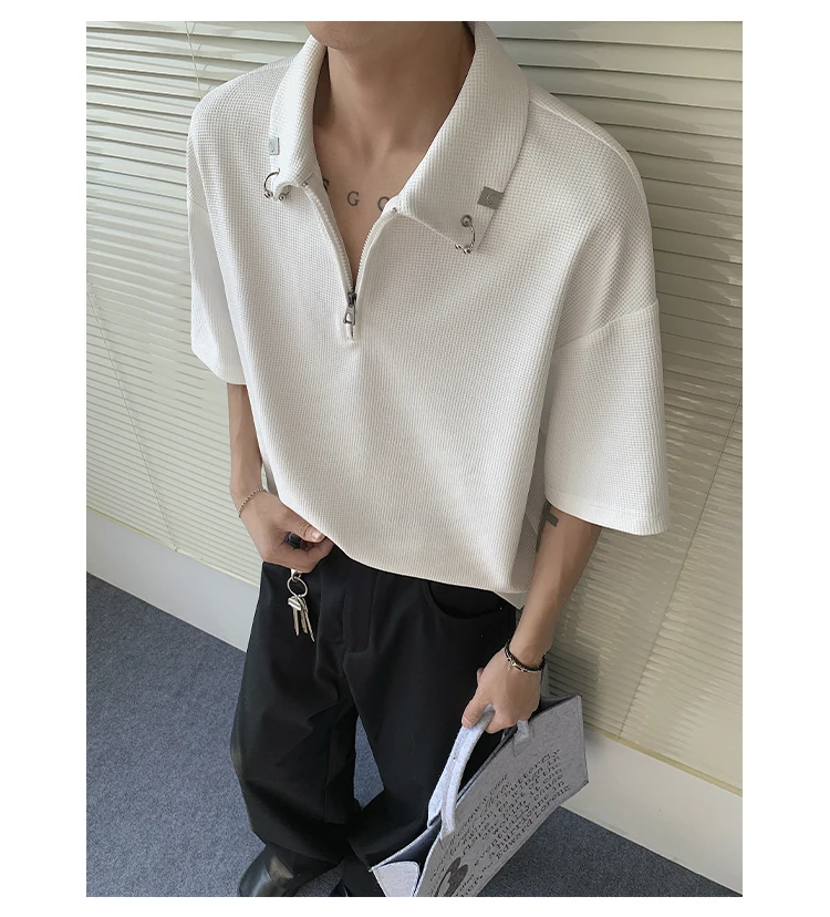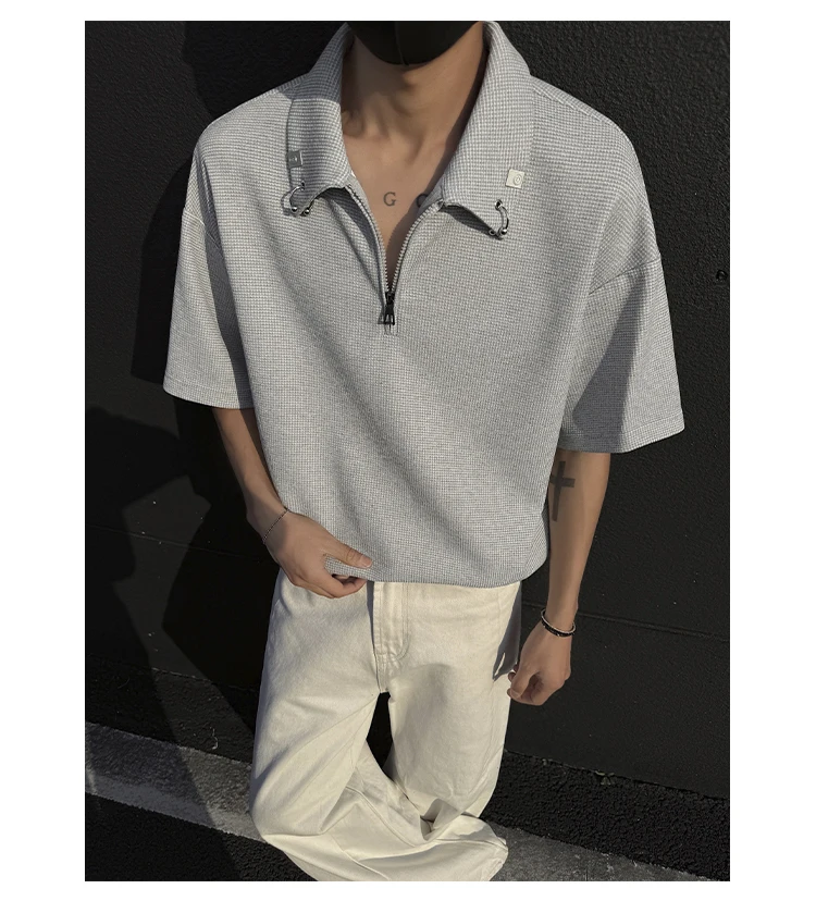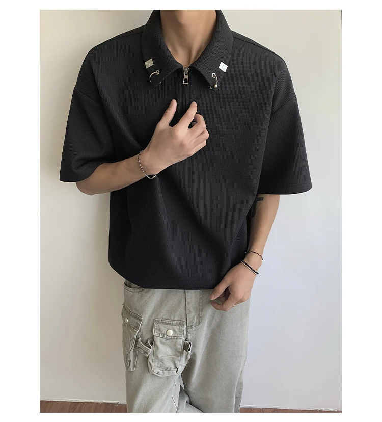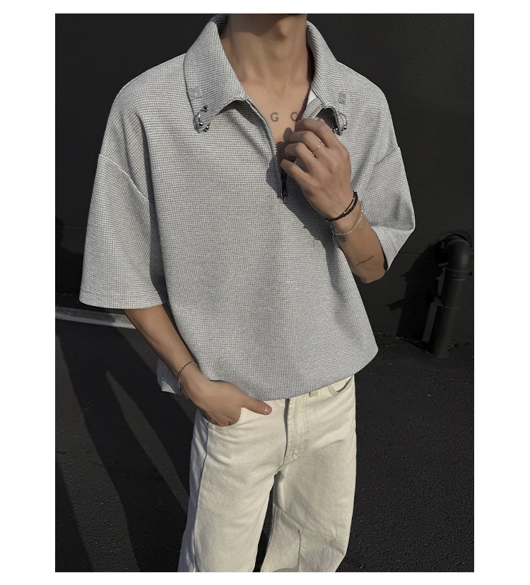 Summer Short Sleeved T-shirt Men Casual Lapel T Shirt Men Streetwear Korean Loose Checkered Tshirt Mens Polo Shirt Plus Size