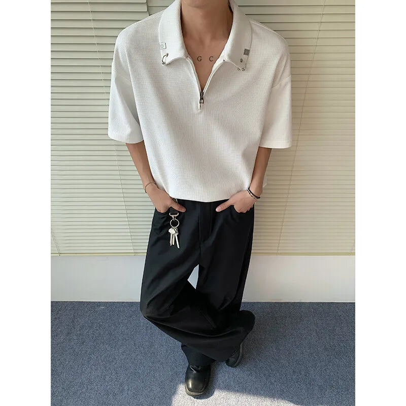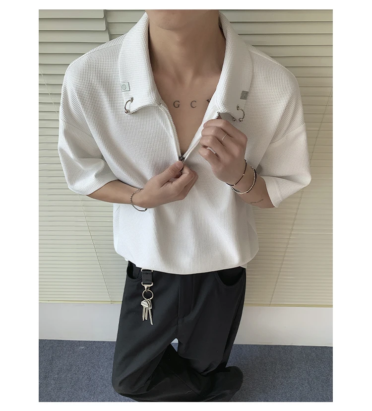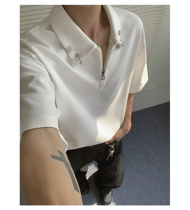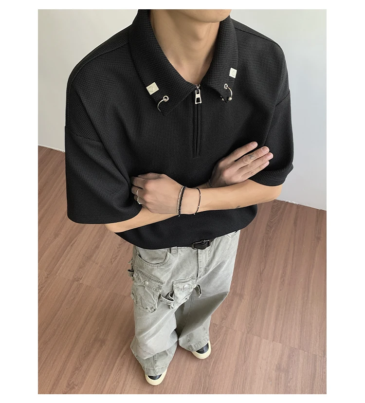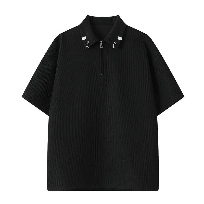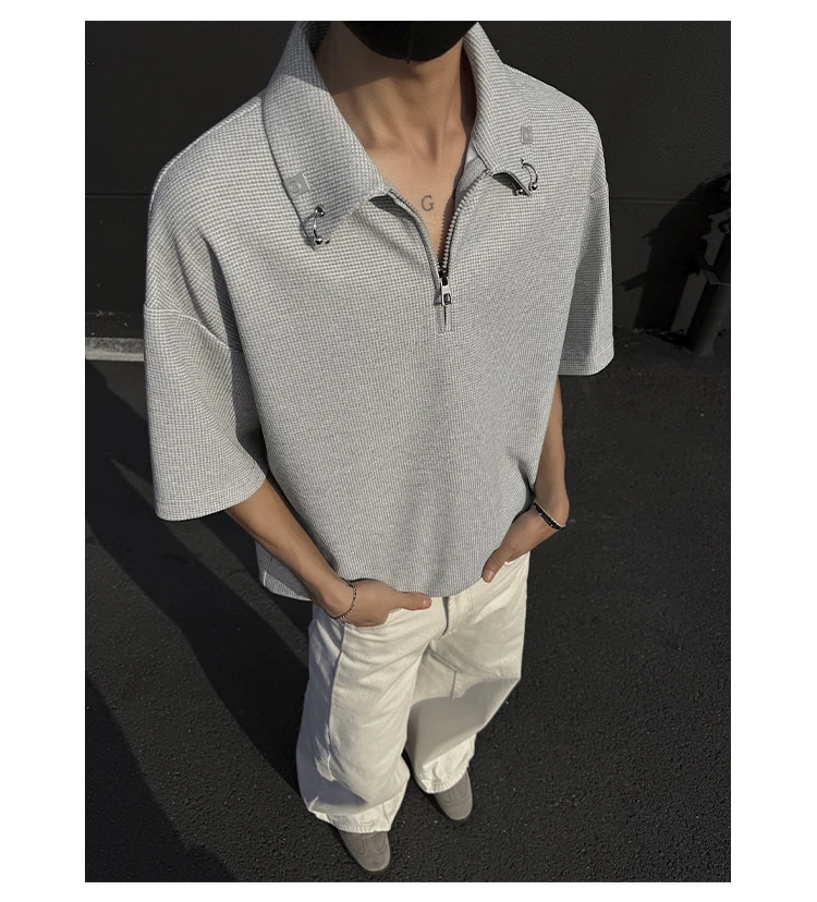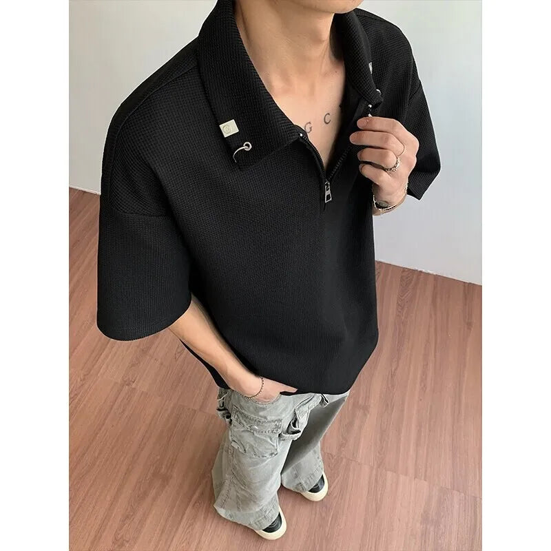 Summer Short Sleeved T-shirt Men Casual Lapel T Shirt Men Streetwear Korean Loose Checkered Tshirt Mens Polo Shirt Plus Size