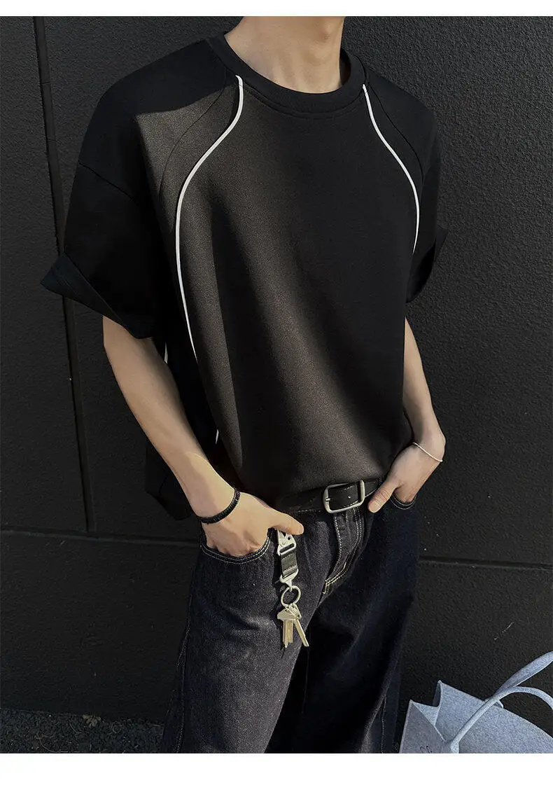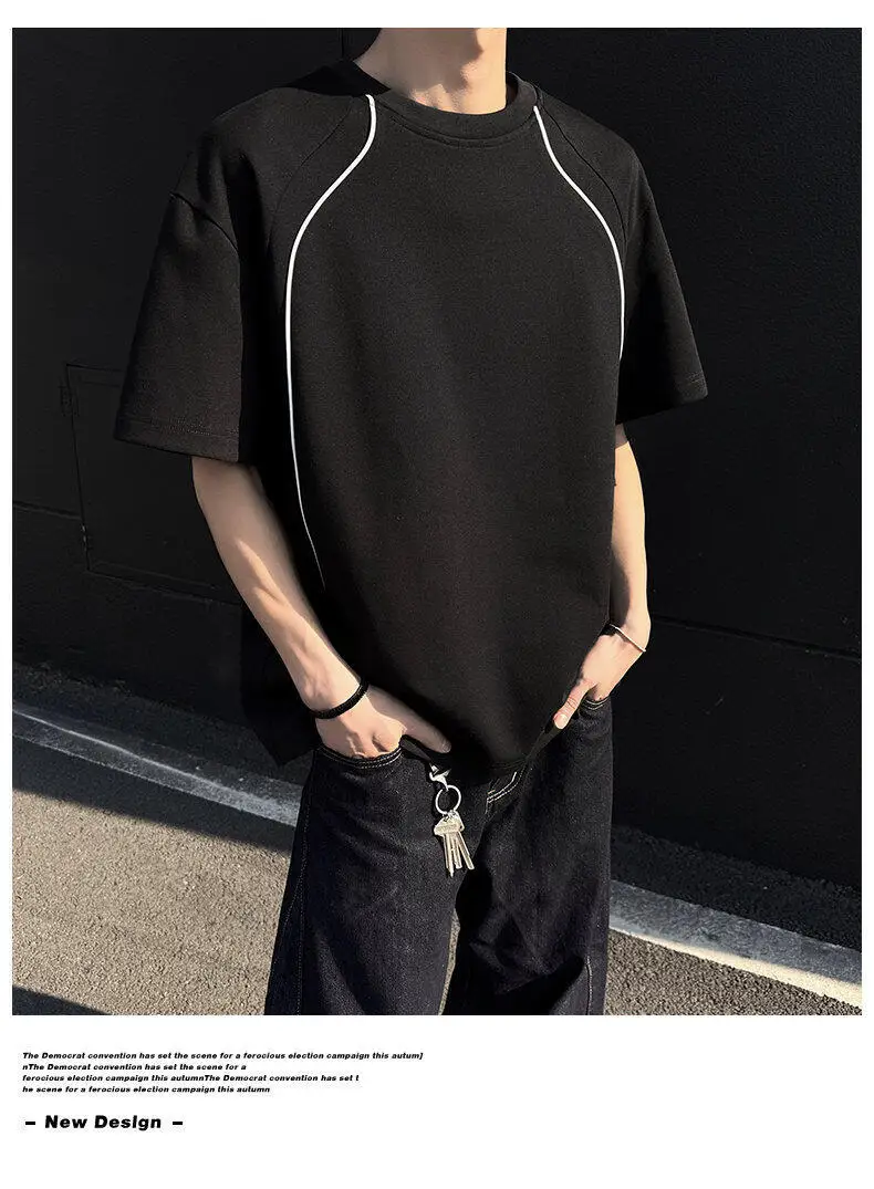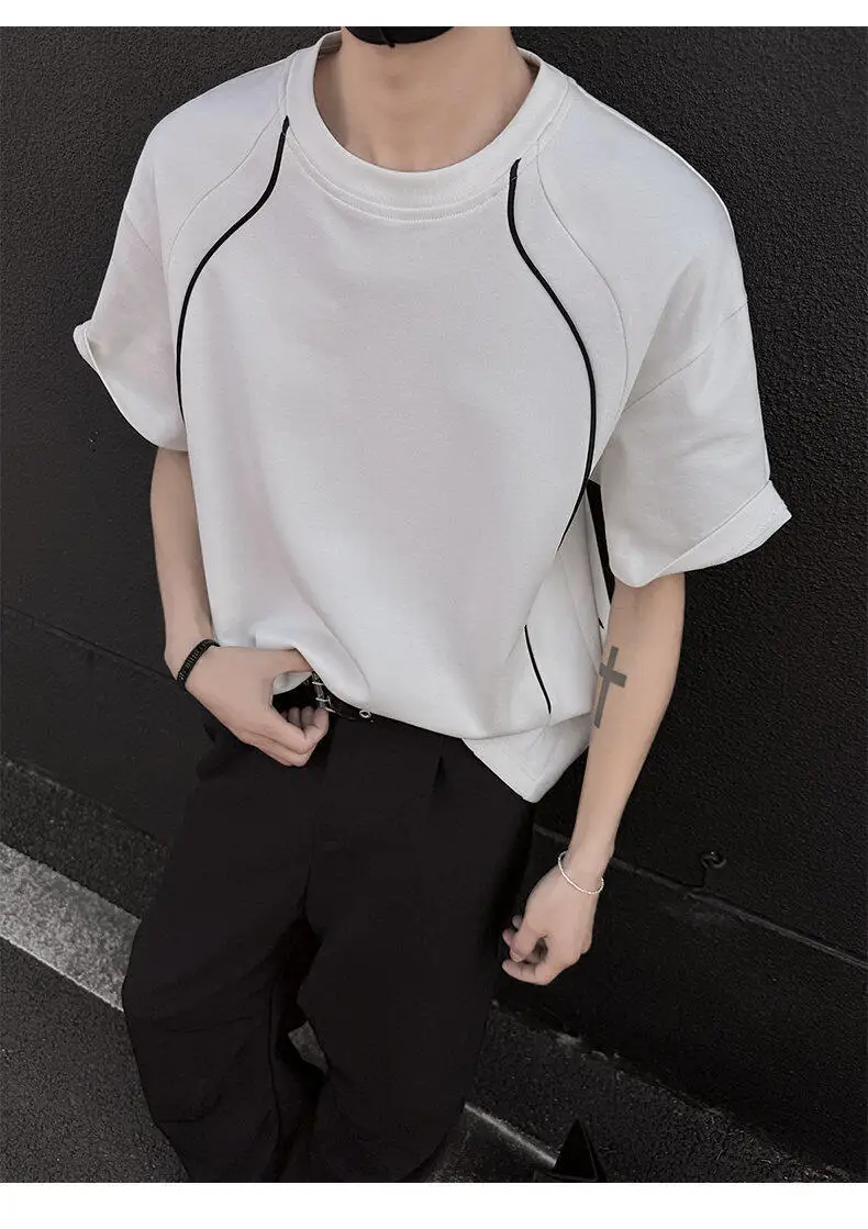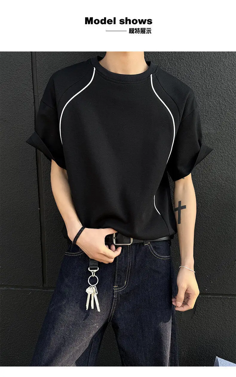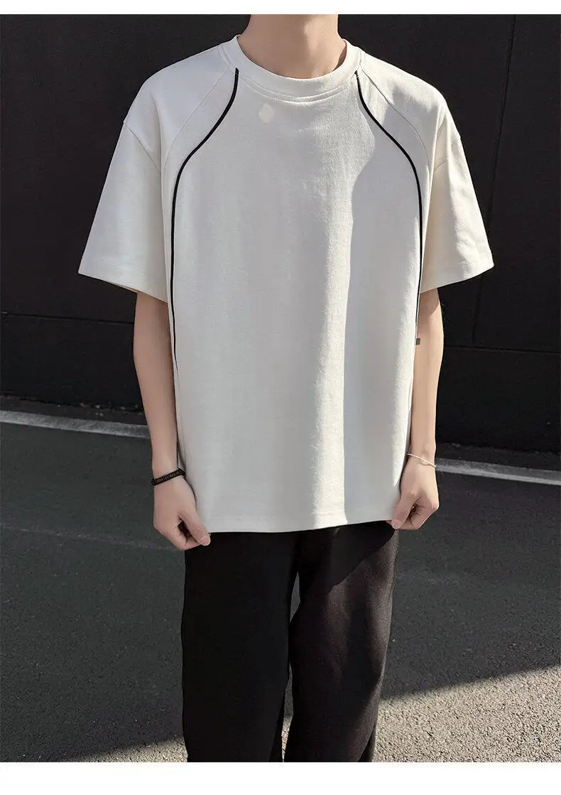 Summer Short Sleeved T-shirt Men Fashion Beige Casual T Shirt Men Streetwear Korean Loose Round Neck Black T Shirt Mens Top