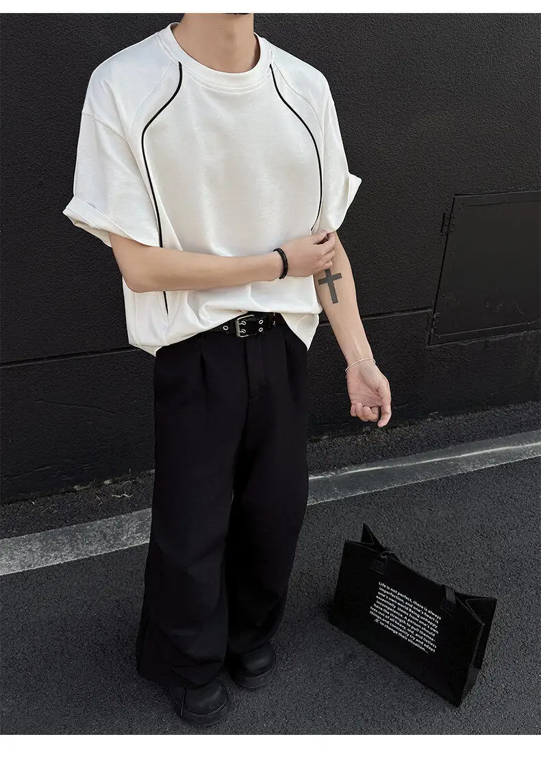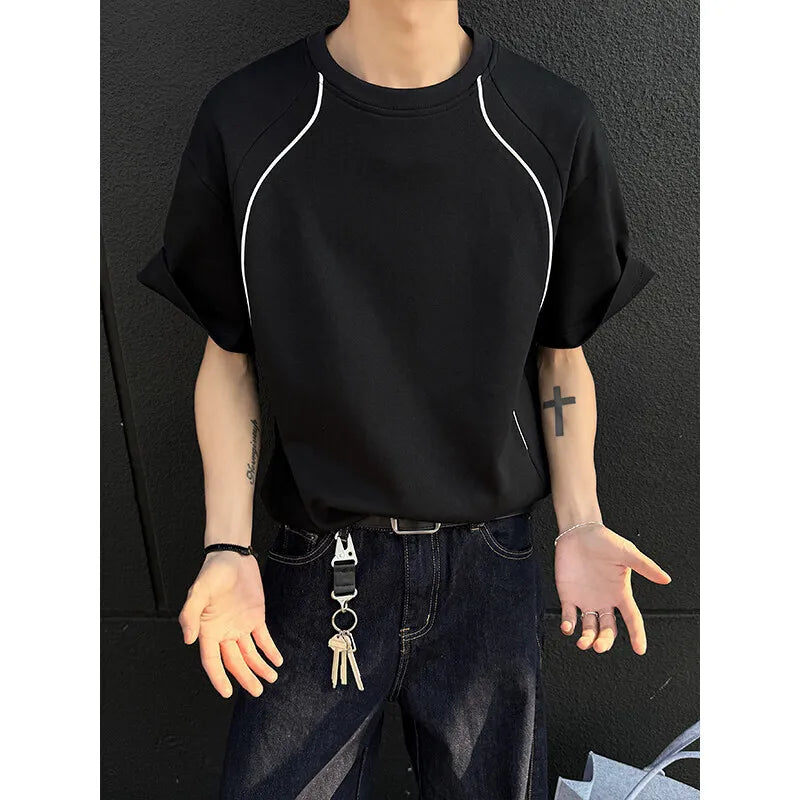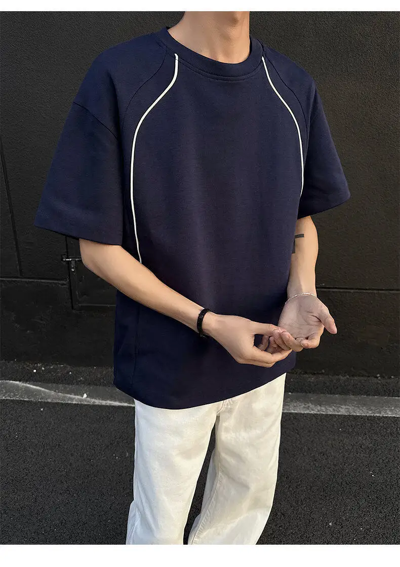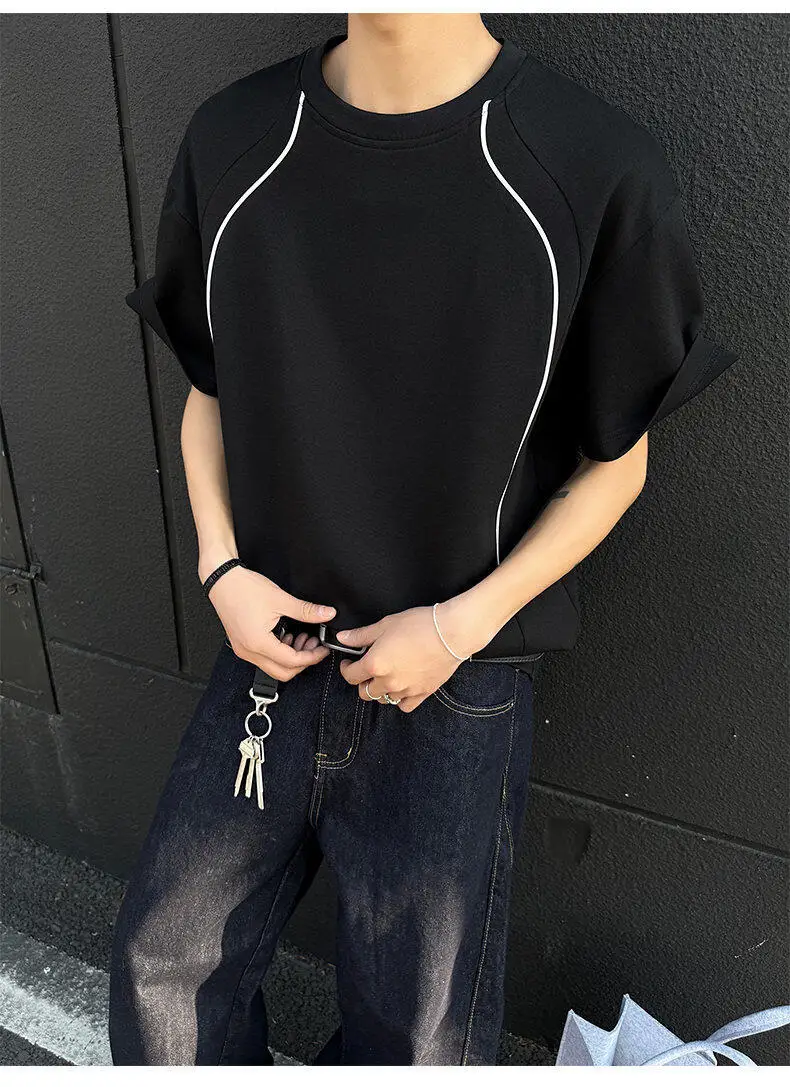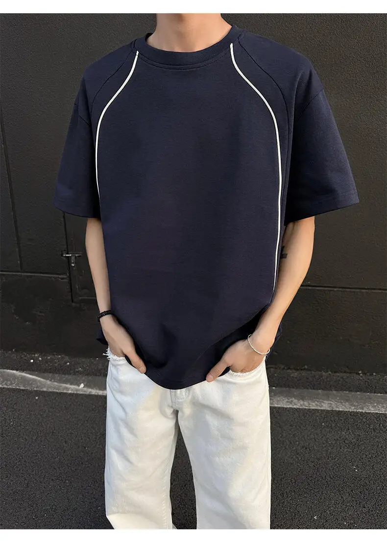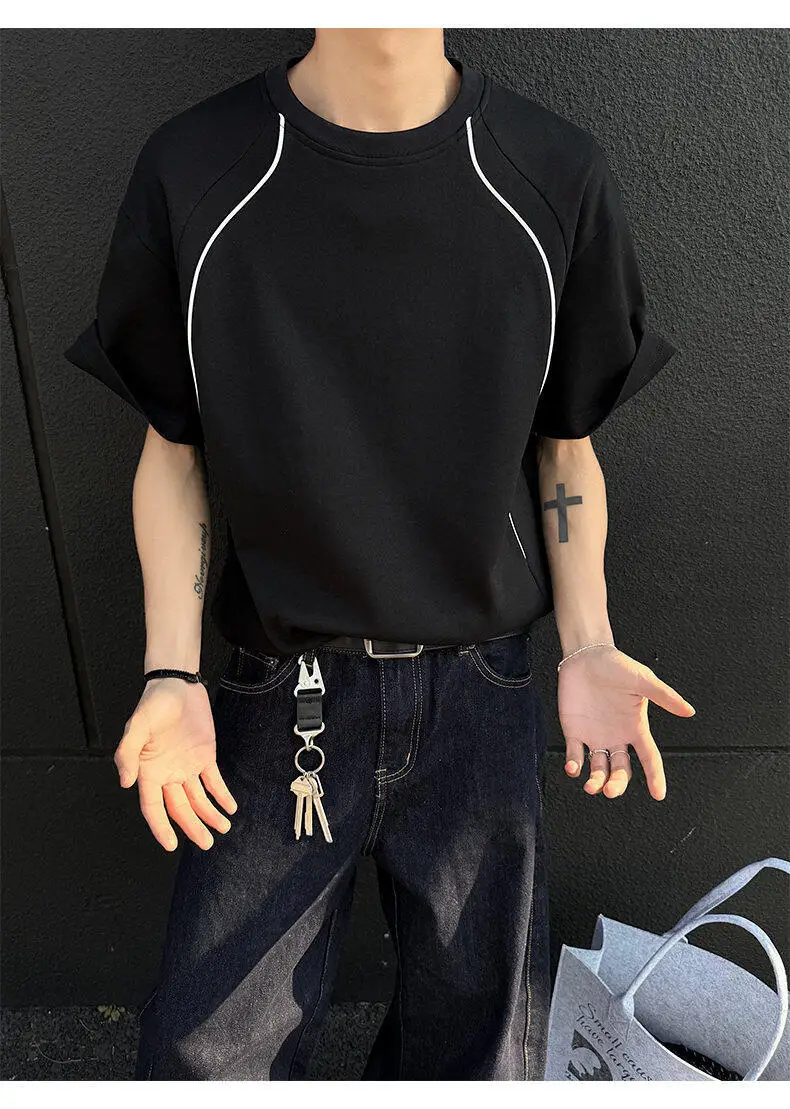 Summer Short Sleeved T-shirt Men Fashion Beige Casual T Shirt Men Streetwear Korean Loose Round Neck Black T Shirt Mens Top
