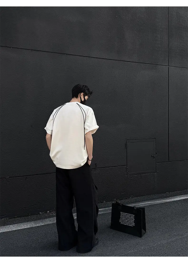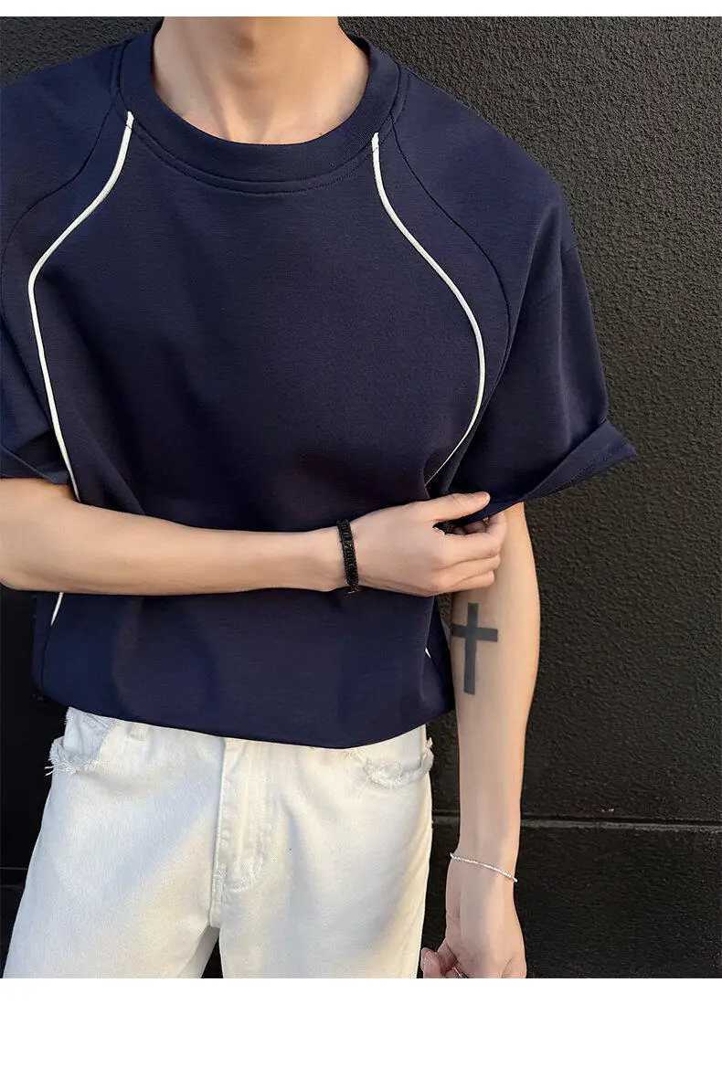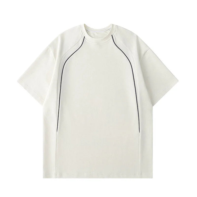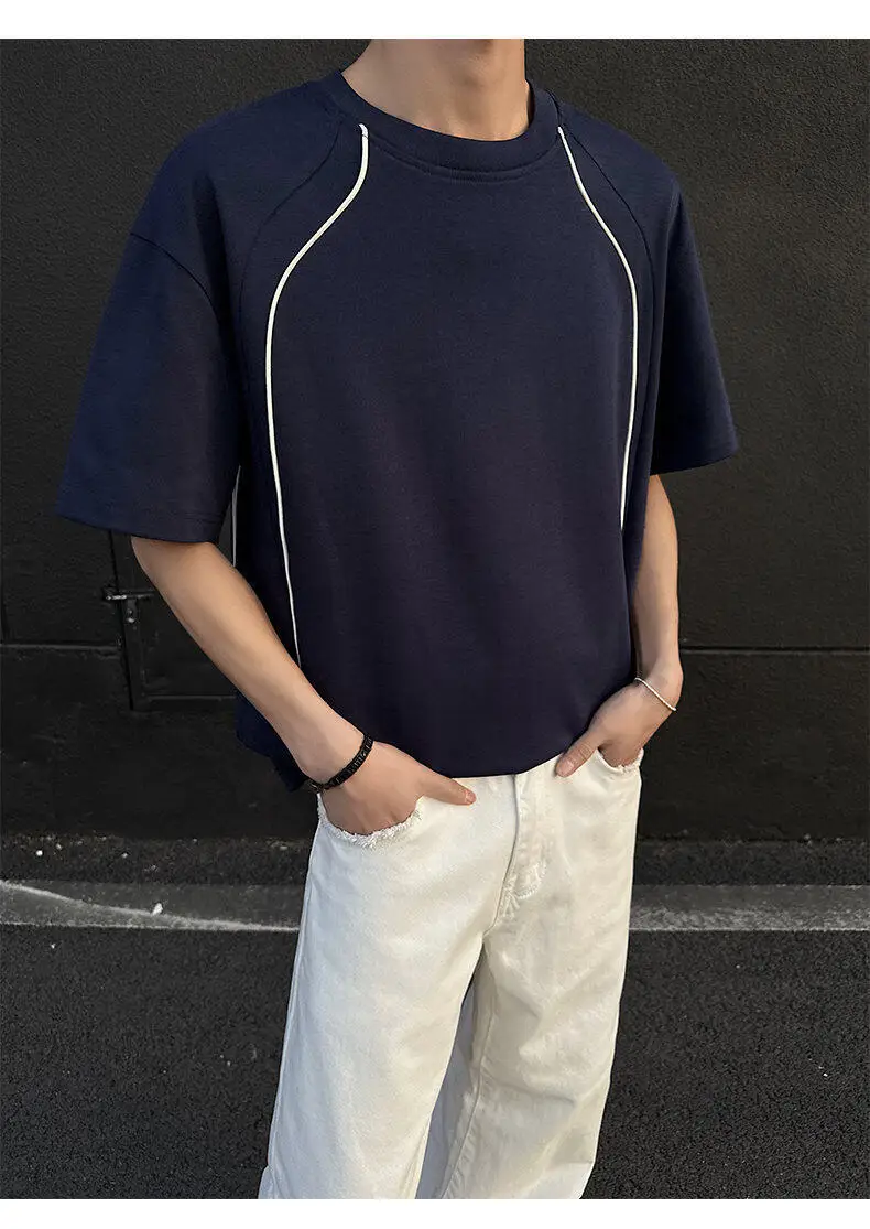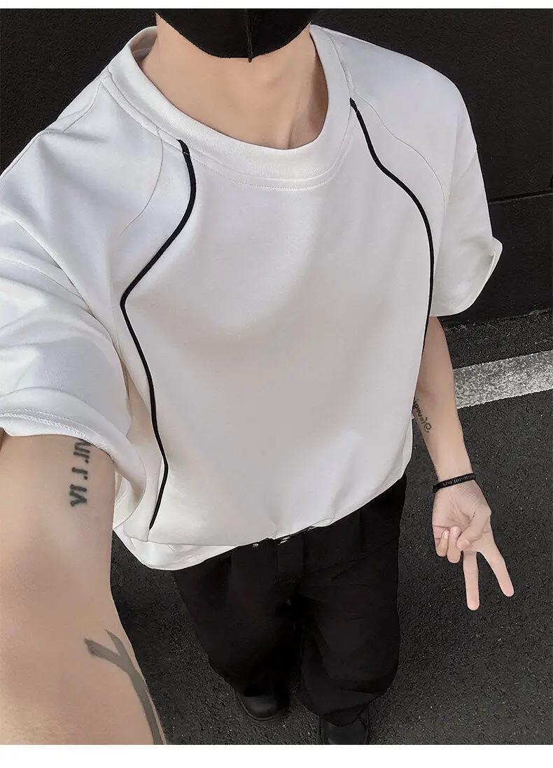 Summer Short Sleeved T-shirt Men Fashion Beige Casual T Shirt Men Streetwear Korean Loose Round Neck Black T Shirt Mens Top