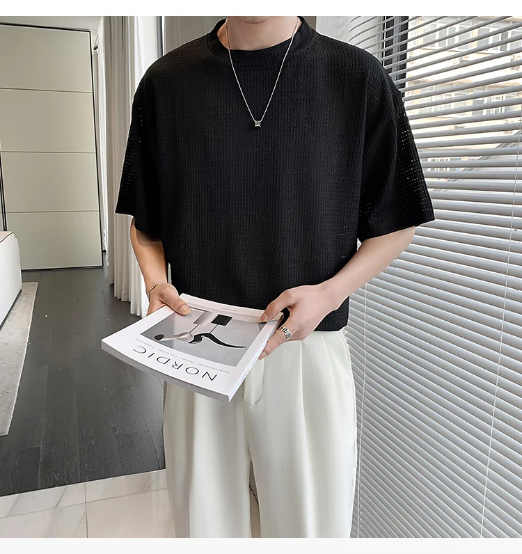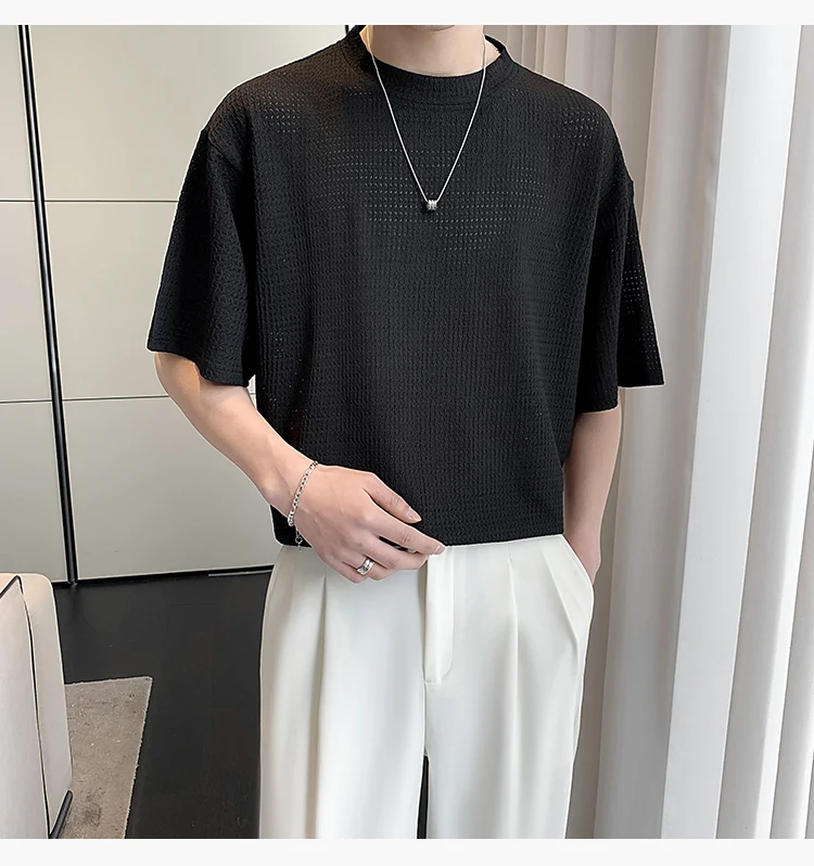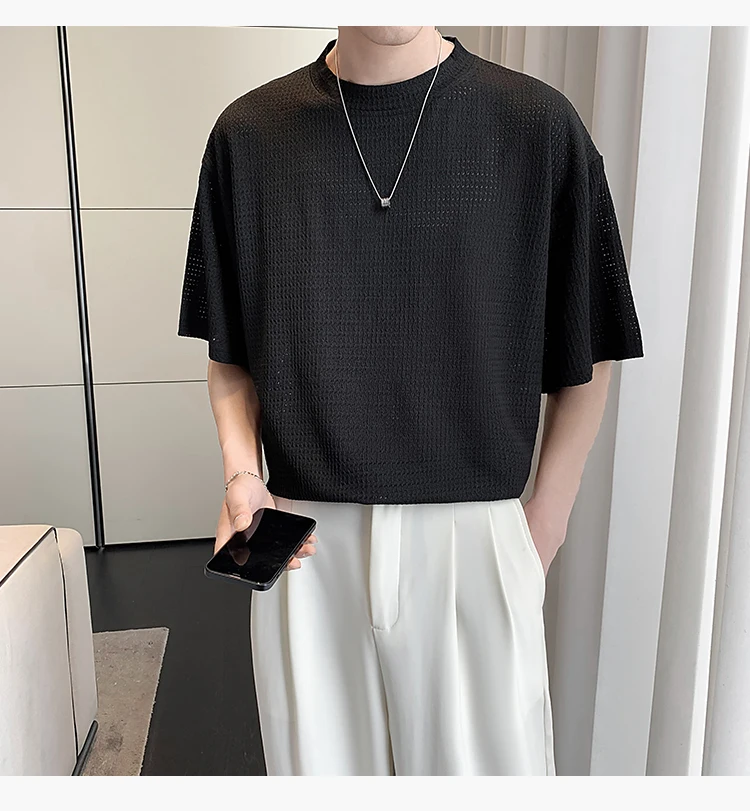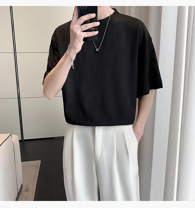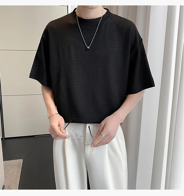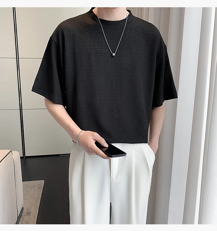 Summer Short Sleeved T-shirt Men Fashion Black White Casual T Shirt Men Streetwear Korean Hollowed Out T Shirt Mens Top