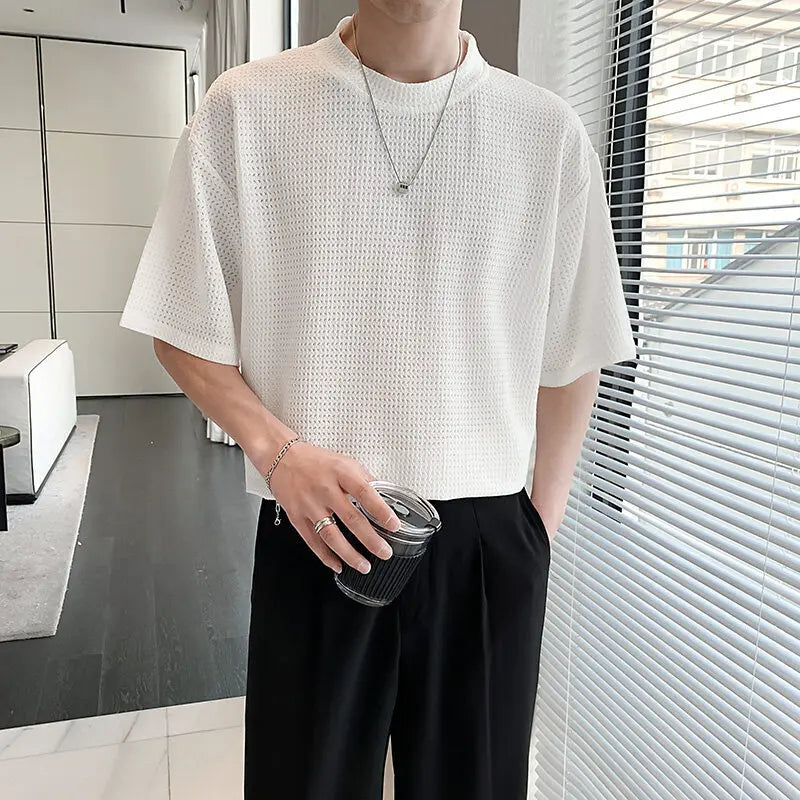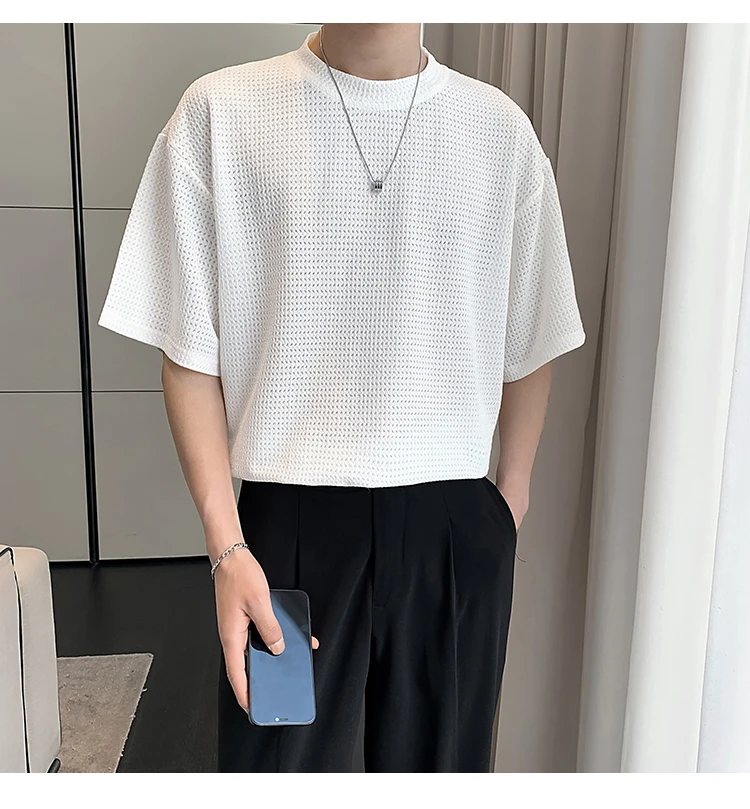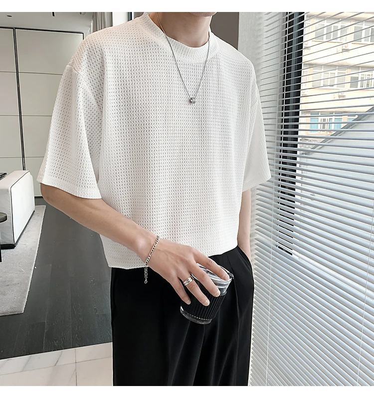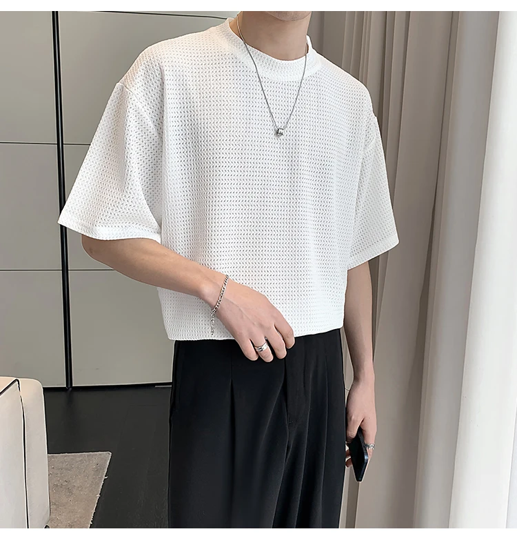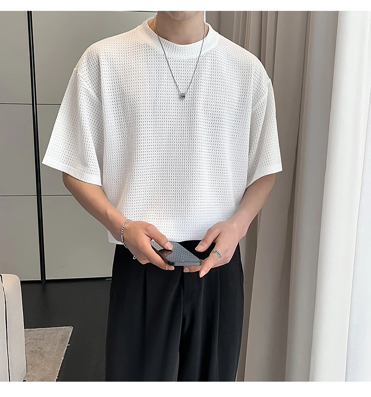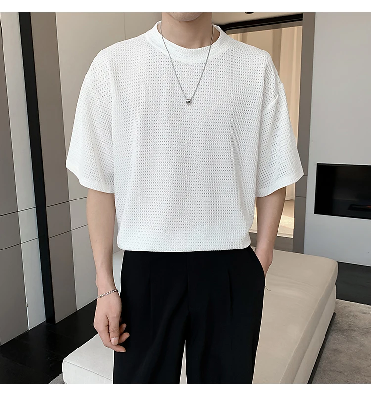 Summer Short Sleeved T-shirt Men Fashion Black White Casual T Shirt Men Streetwear Korean Hollowed Out T Shirt Mens Top