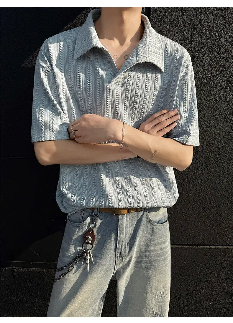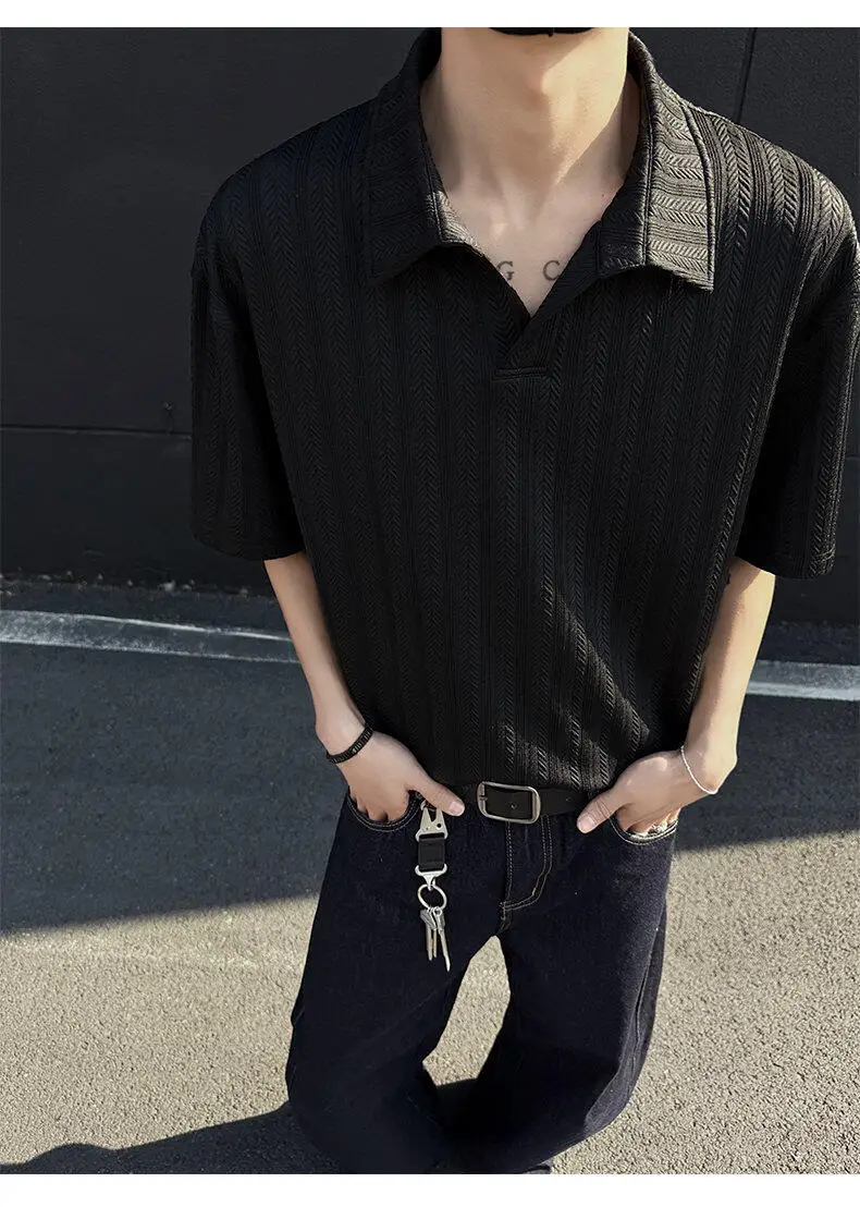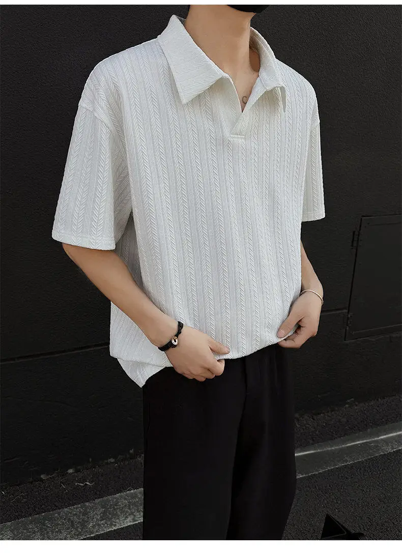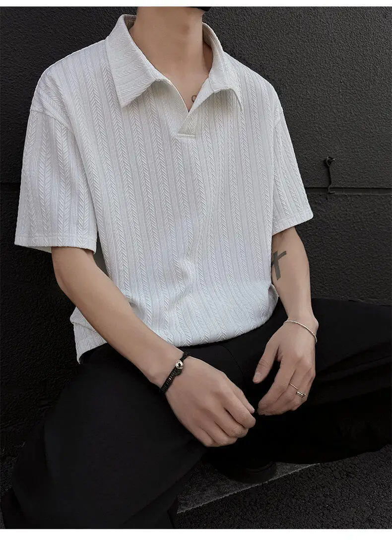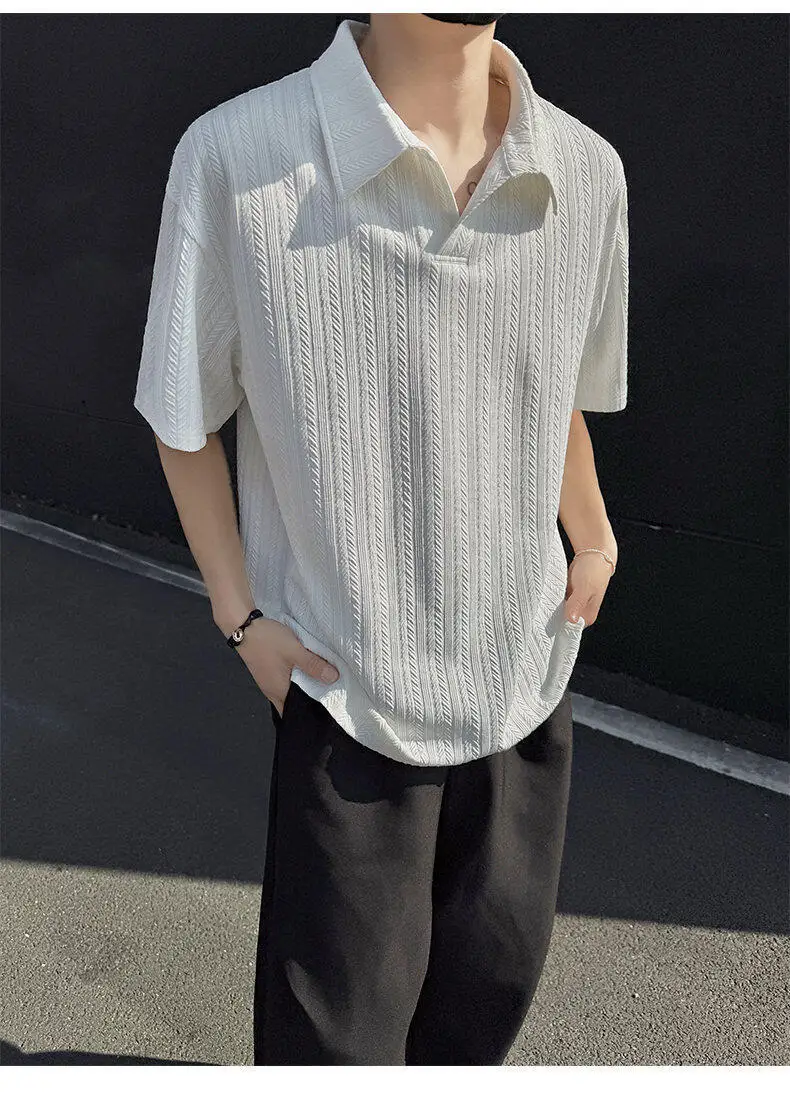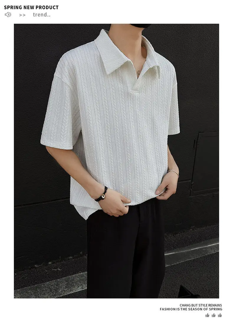 Summer Short Sleeved T-shirt Men Fashion White Casual T Shirt Men Streetwear Korean Loose Lapel T Shirt Mens Polo Shirt