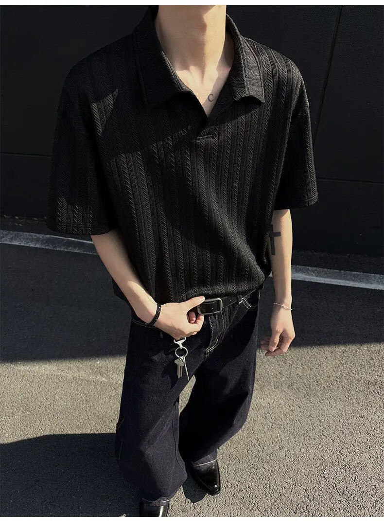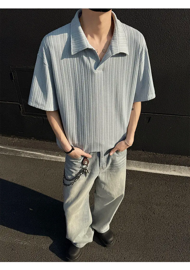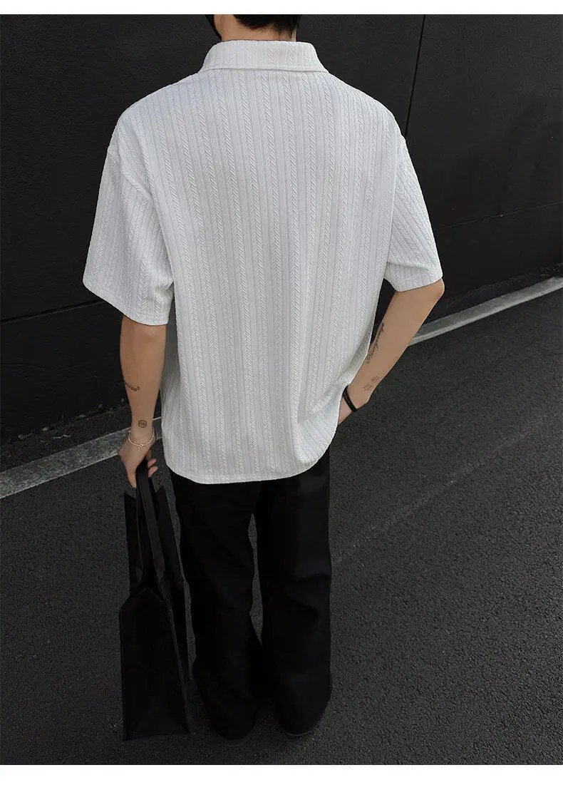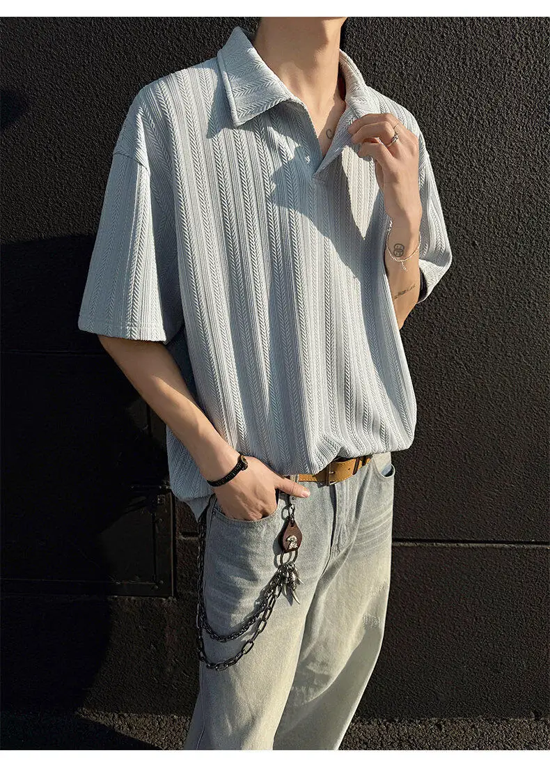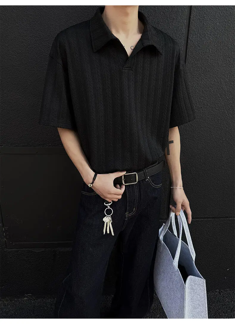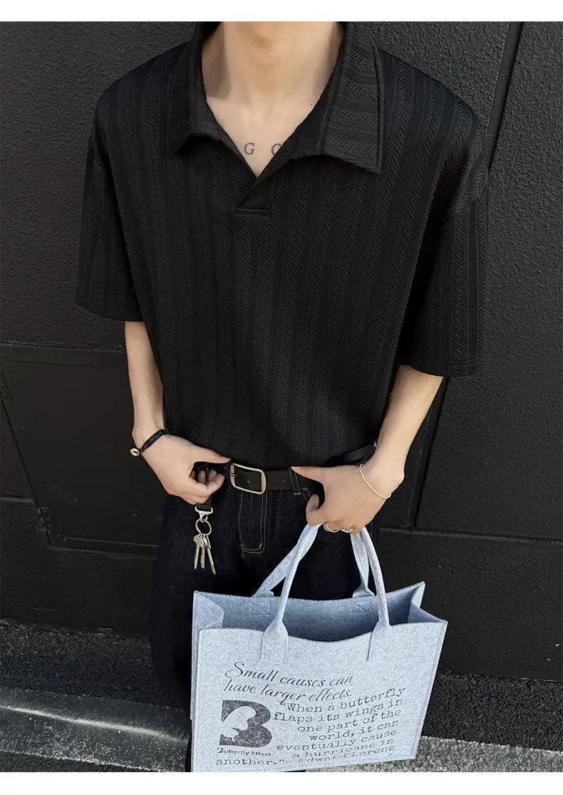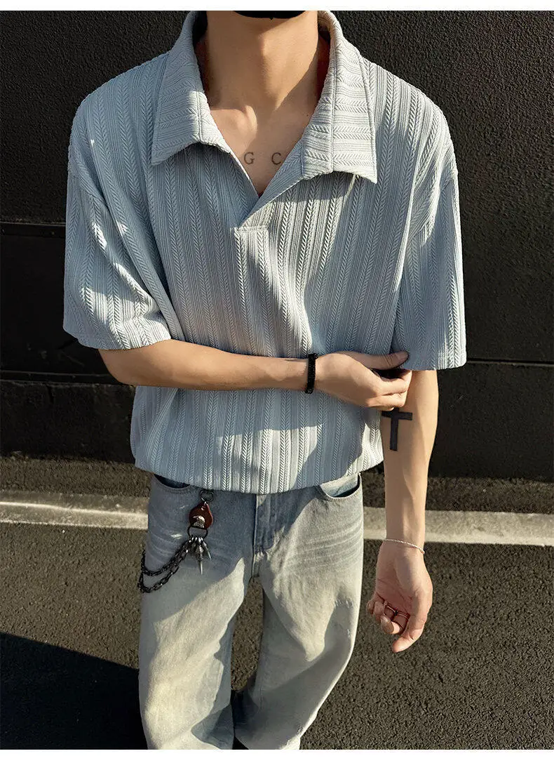 Summer Short Sleeved T-shirt Men Fashion White Casual T Shirt Men Streetwear Korean Loose Lapel T Shirt Mens Polo Shirt