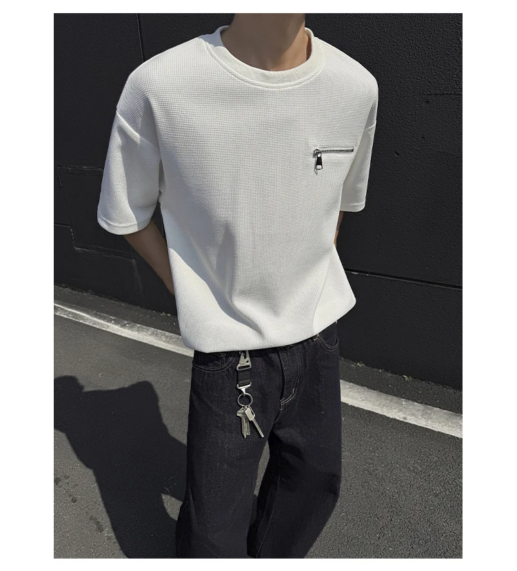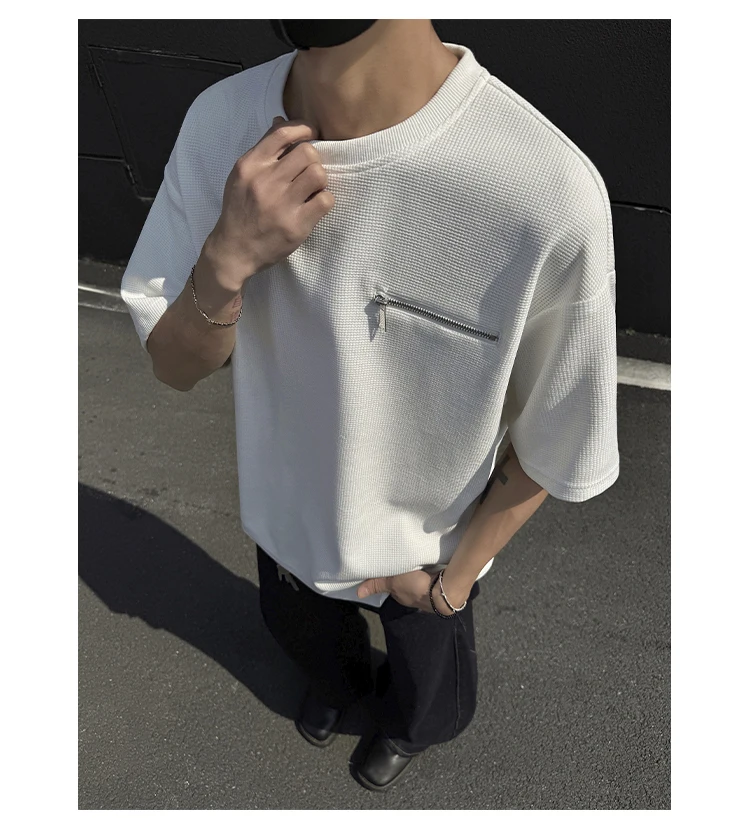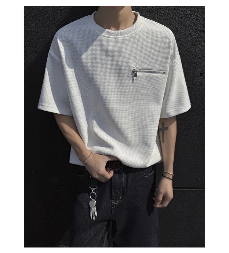 Summer Short Sleeved T-shirt Men White Casual T Shirt Men Streetwear Korean Loose Checkered Tshirt Mens Top Large Size 5XL