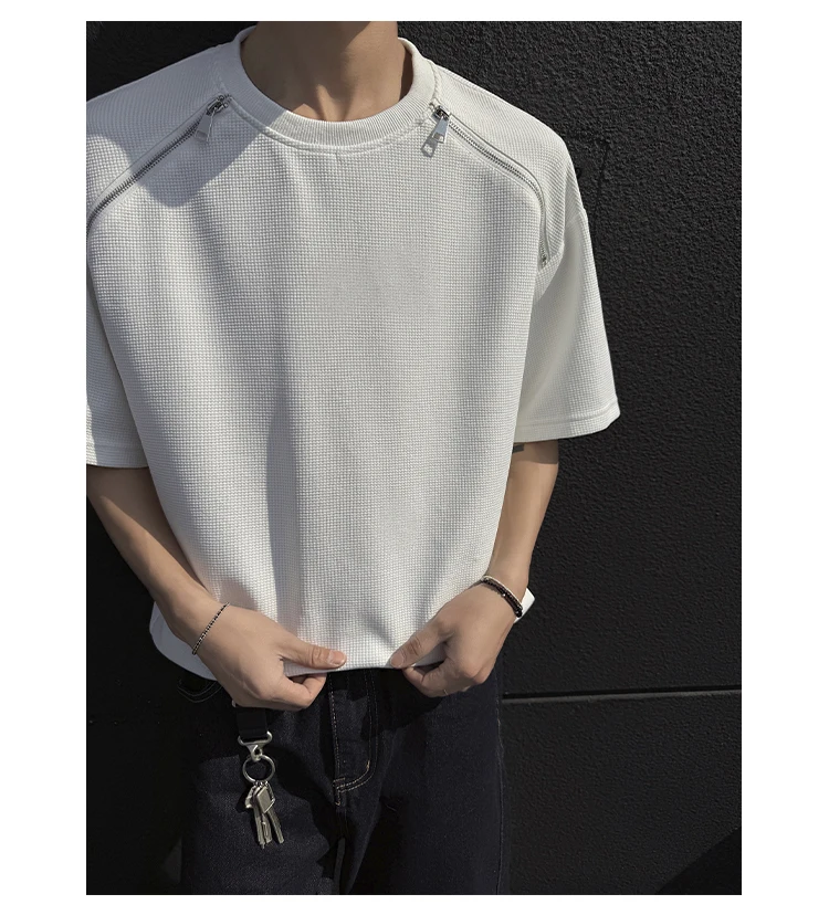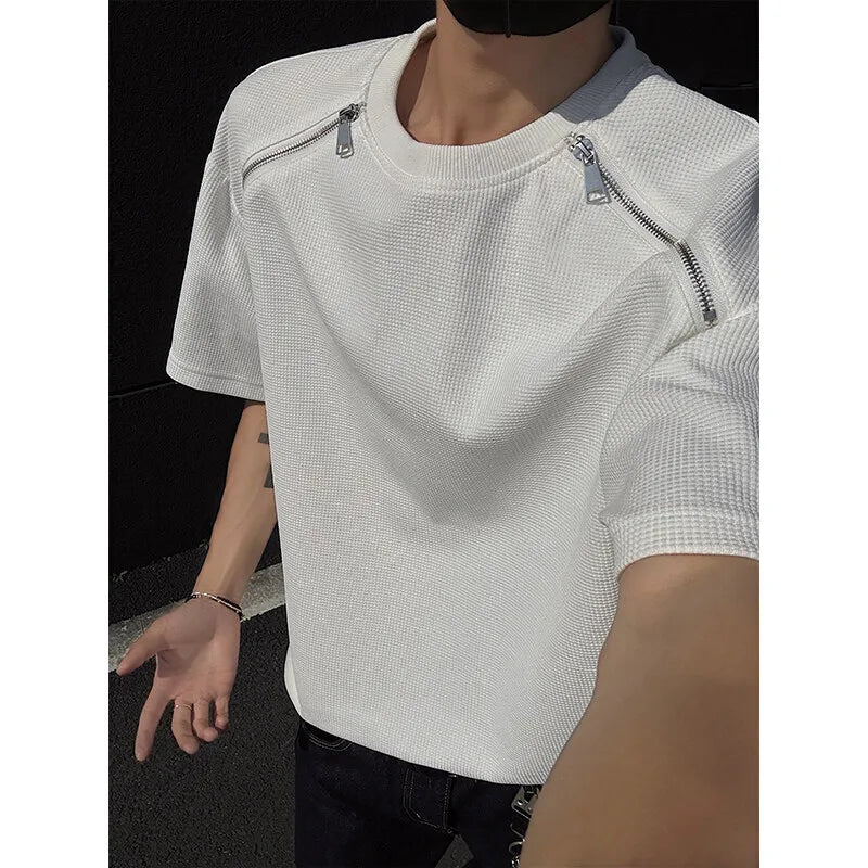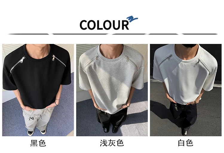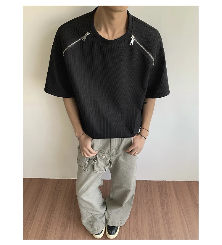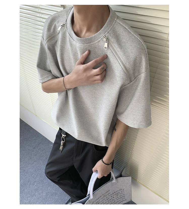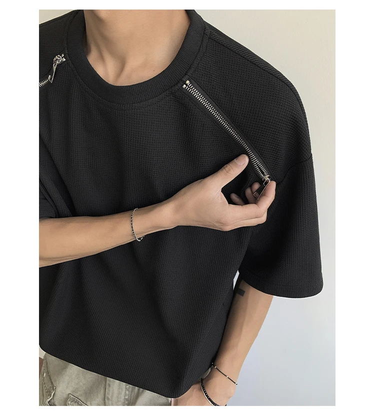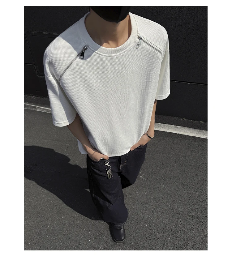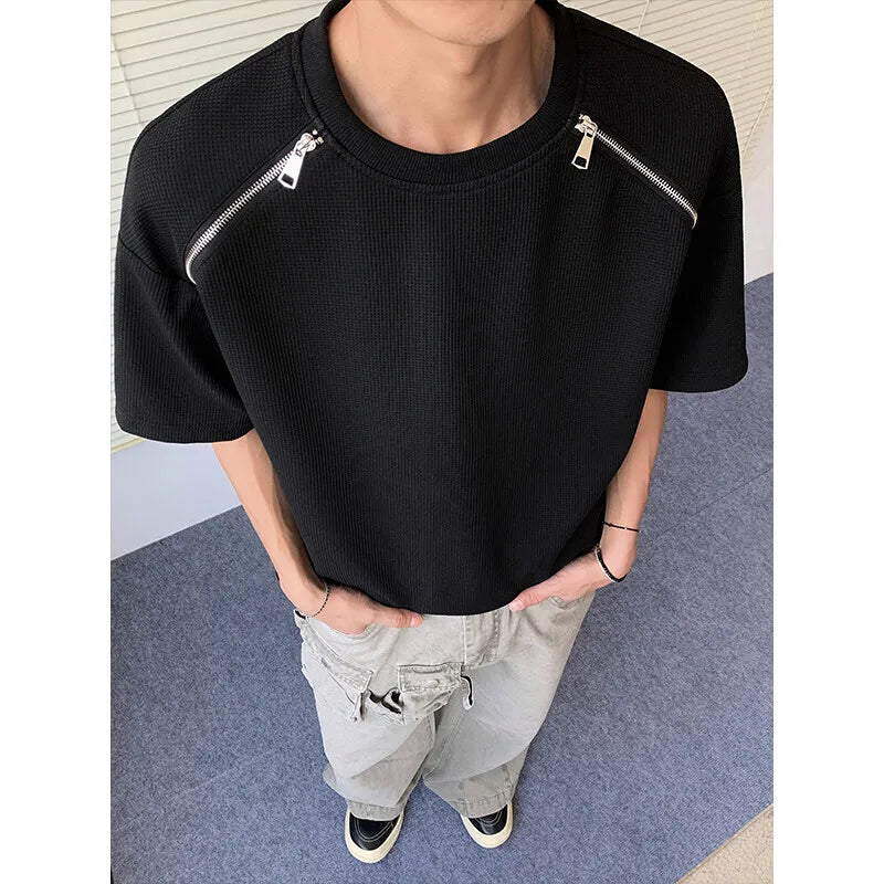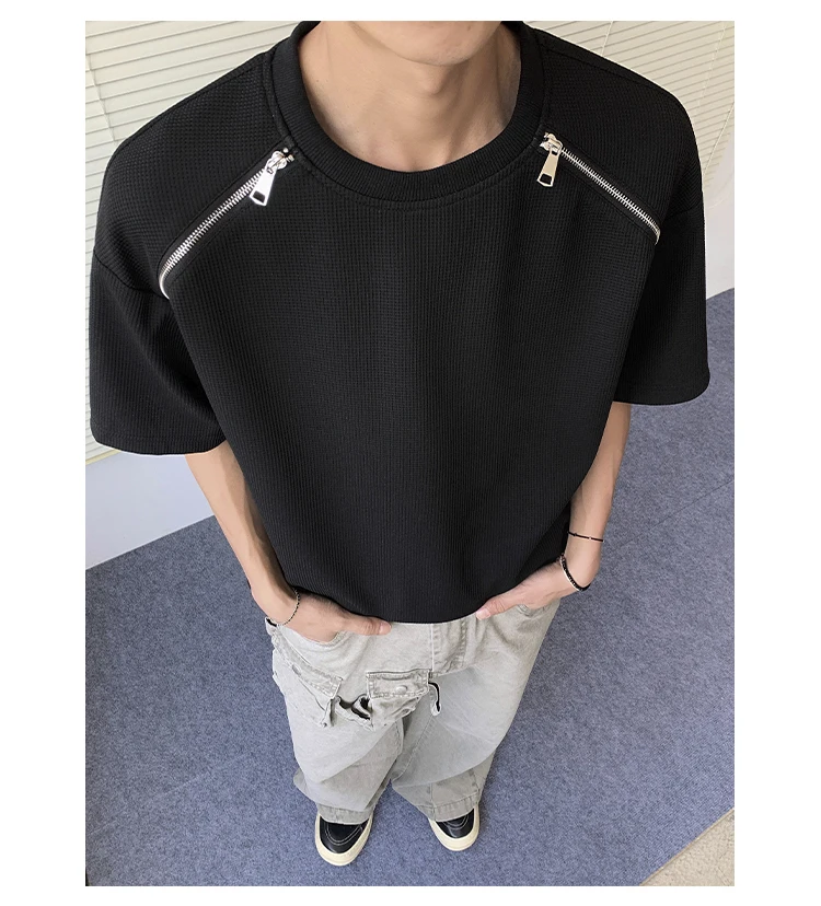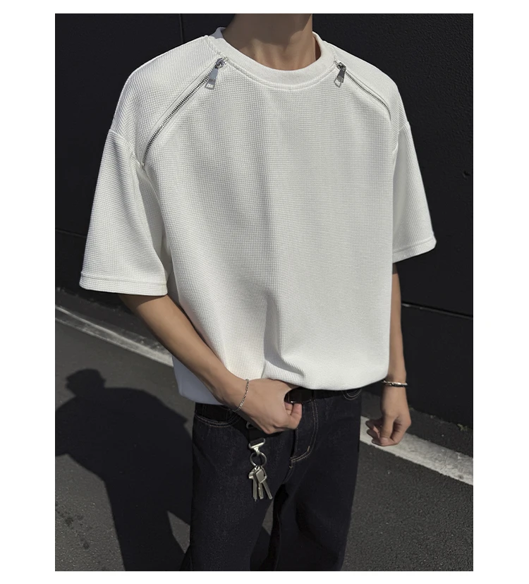 Summer Short Sleeved T-shirt Men Zipper Casual T Shirt Men Streetwear Korean Loose Checkered Tshirt Mens Top Plus Size 4XL