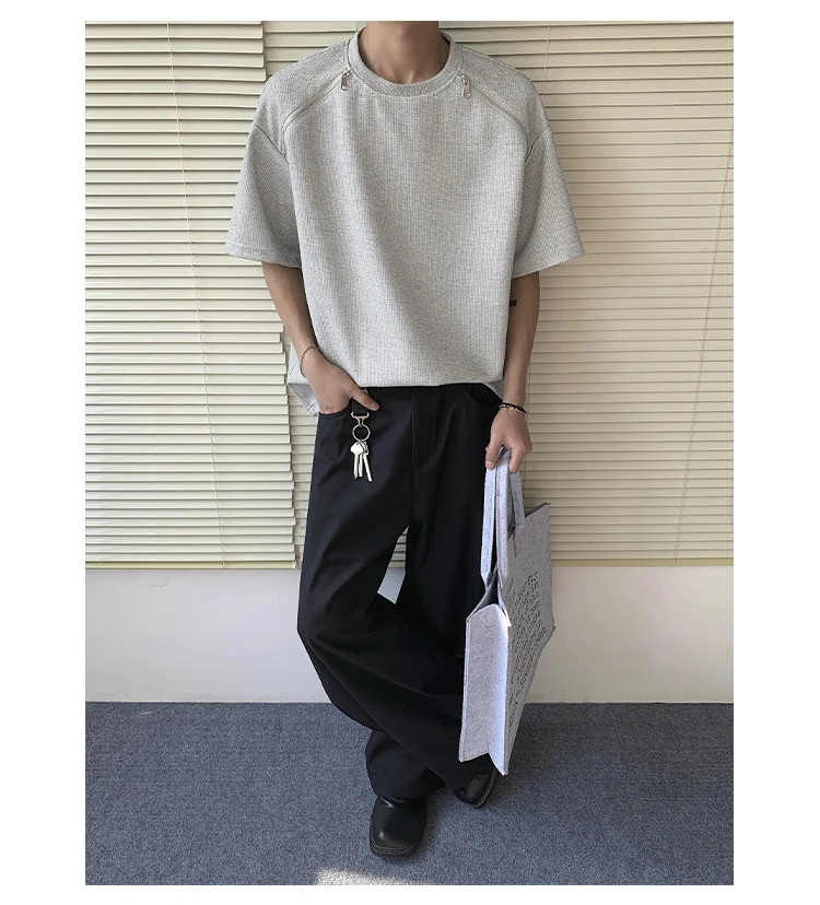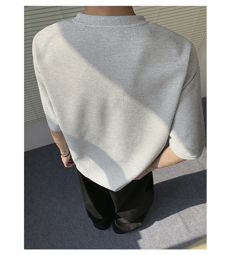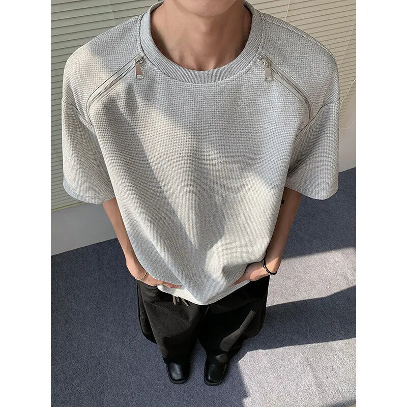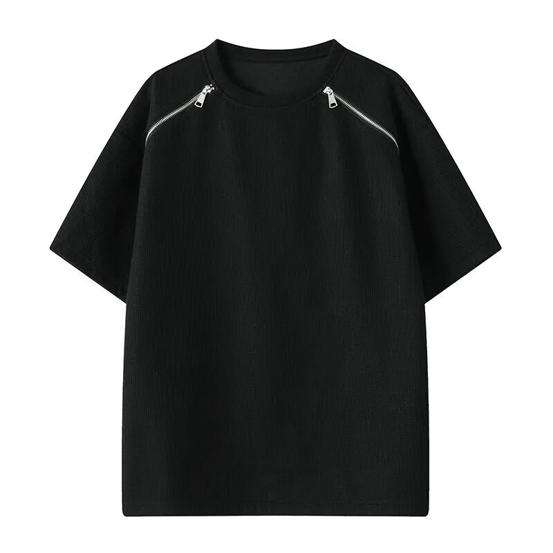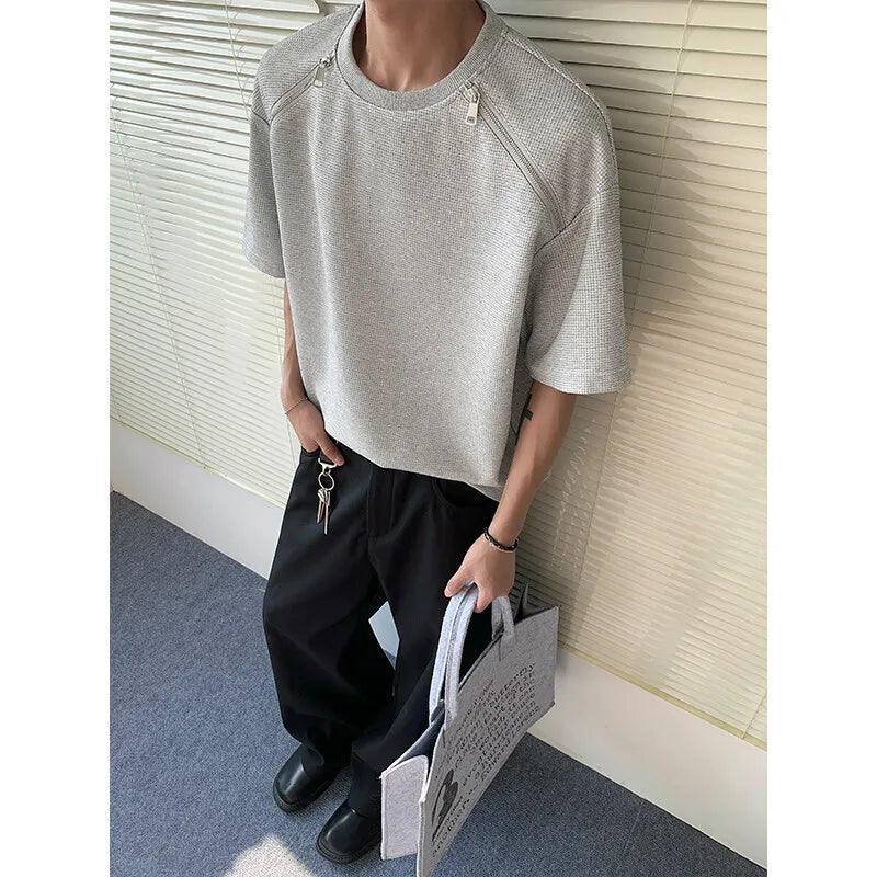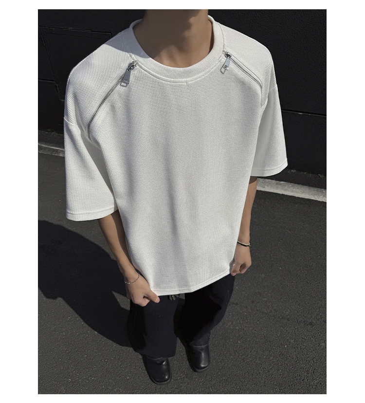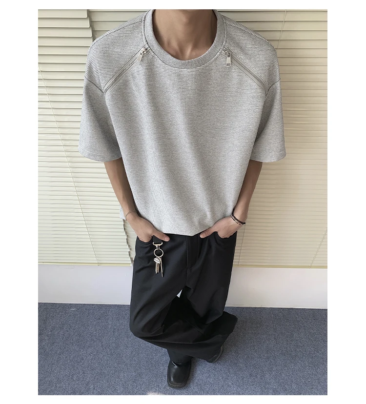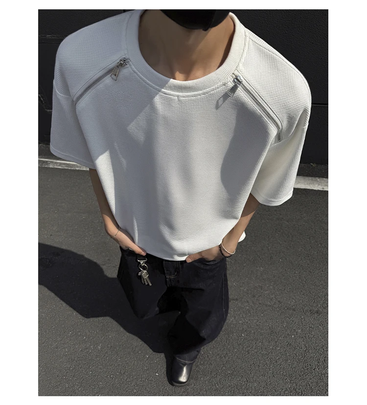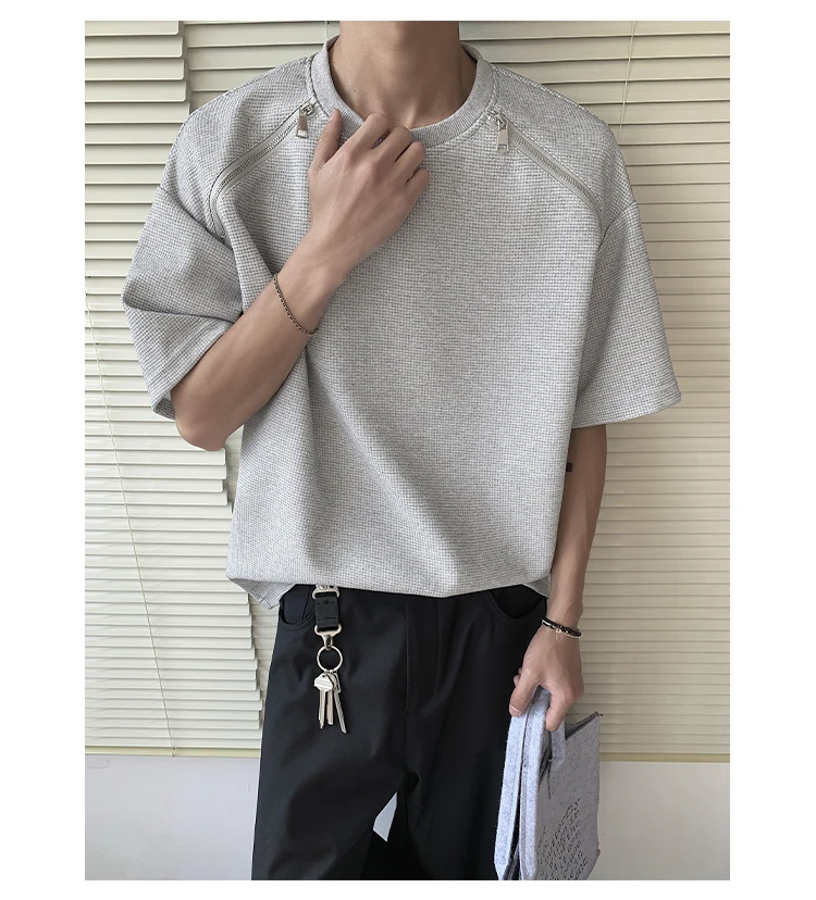Summer Short Sleeved T-shirt Men Zipper Casual T Shirt Men Streetwear Korean Loose Checkered Tshirt Mens Top Plus Size 4XL