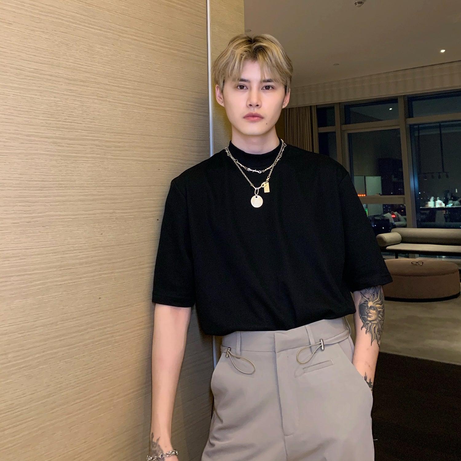 Men's High-End Mesh Ice Silk Short-Sleeved T-Shirt Shirt Short-Sleeved