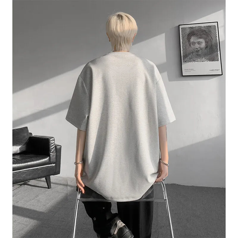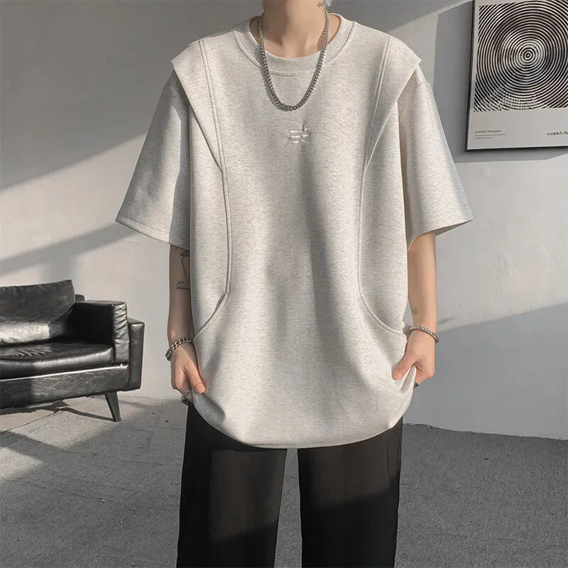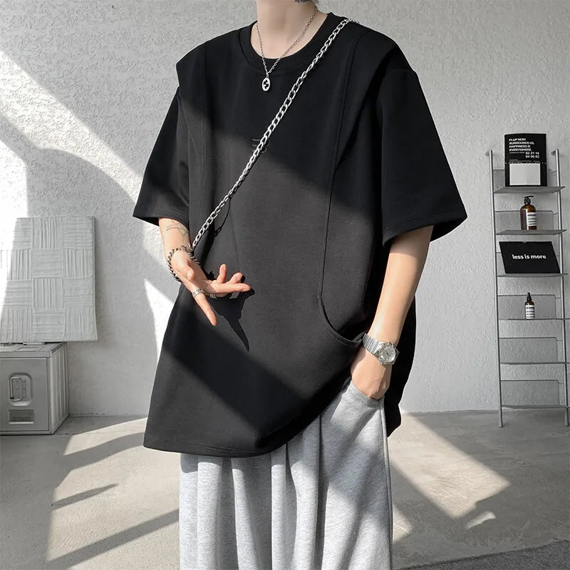 t shirt Men Loose Fit Crew Neck T-Shirt Solid Streetwear Urban Casual Patchwork Design Trendy Hip Hop Tee man Fashion